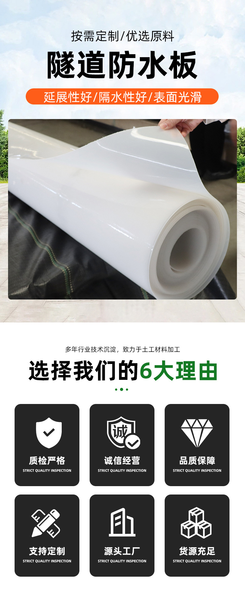 eva隧道防水板HDPE防渗工程用涵洞地铁高速公路吊带复合防水板