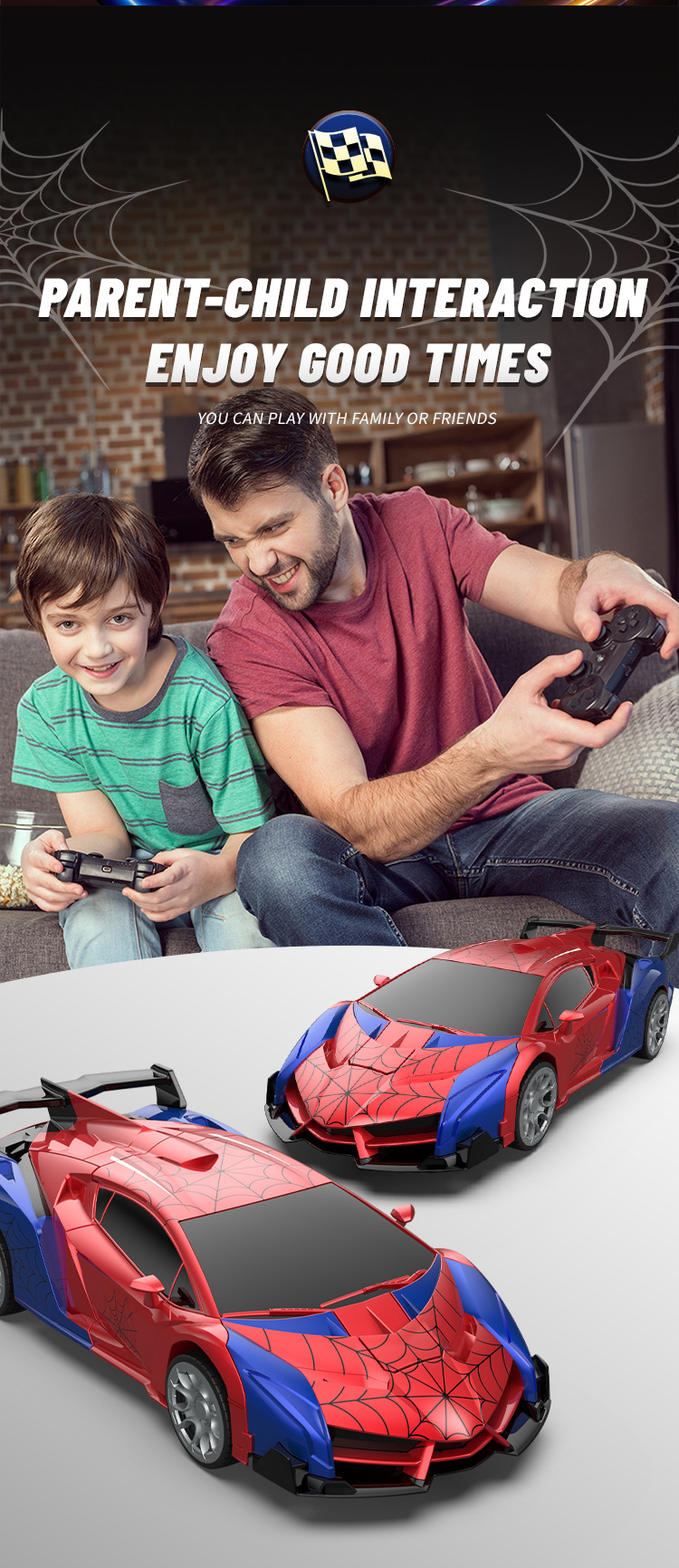 六一新品儿童亚马逊爆款跨境2.4G遥控汽车蜘蛛变形车玩具充电动赛