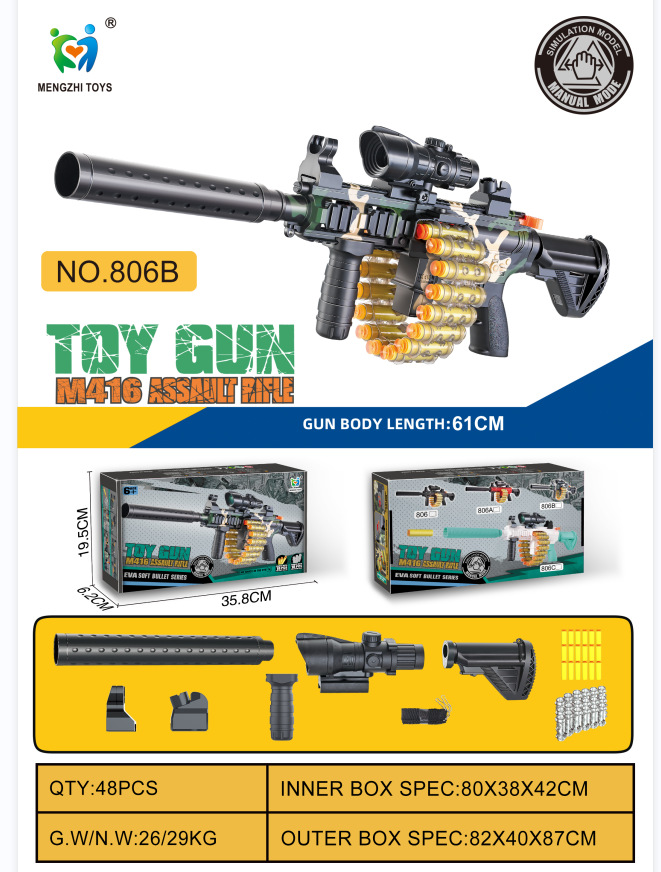 儿童玩具软弹枪M416软弹枪AK47抛壳98K射击培训机构跨境大礼品盒