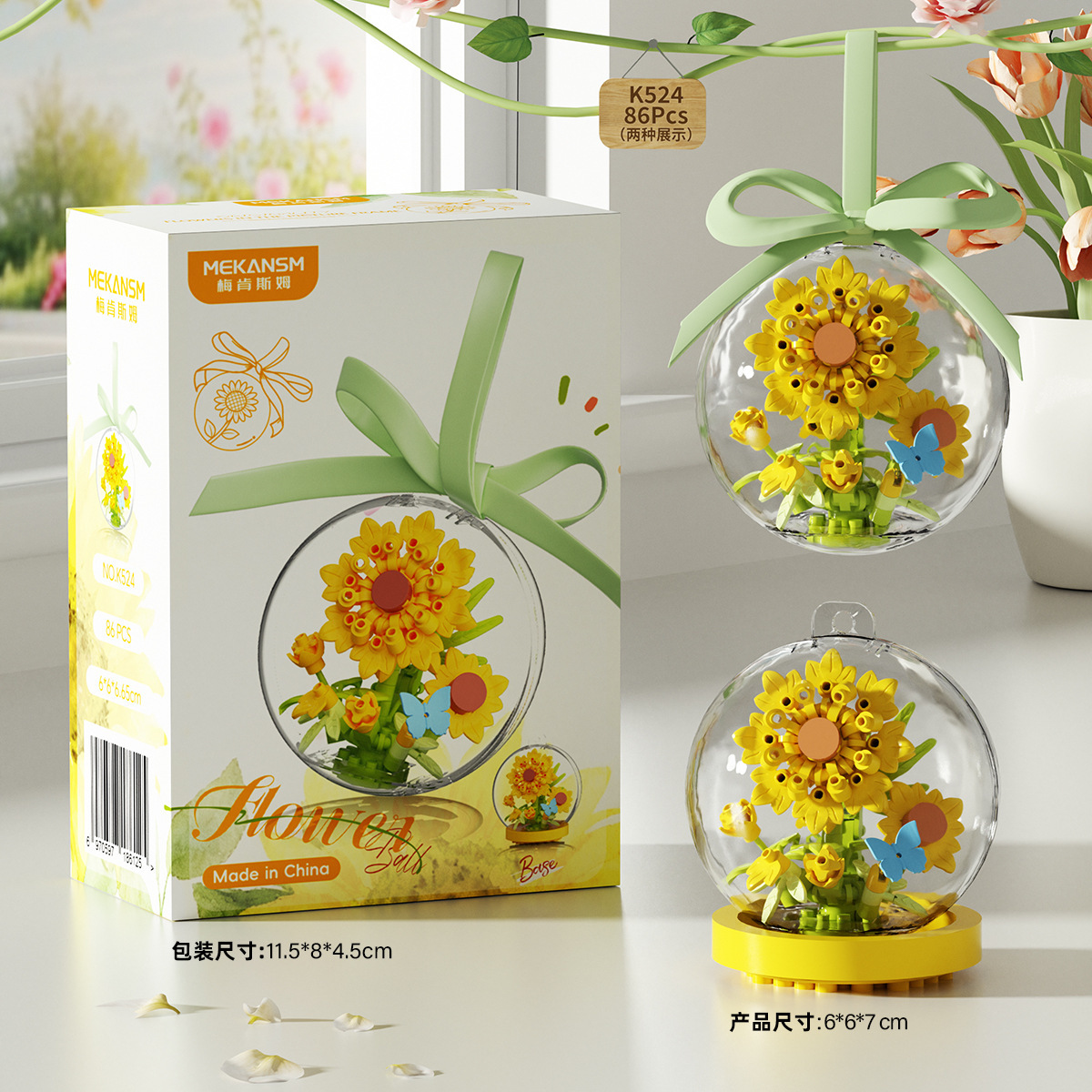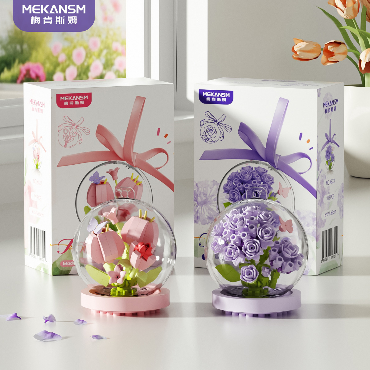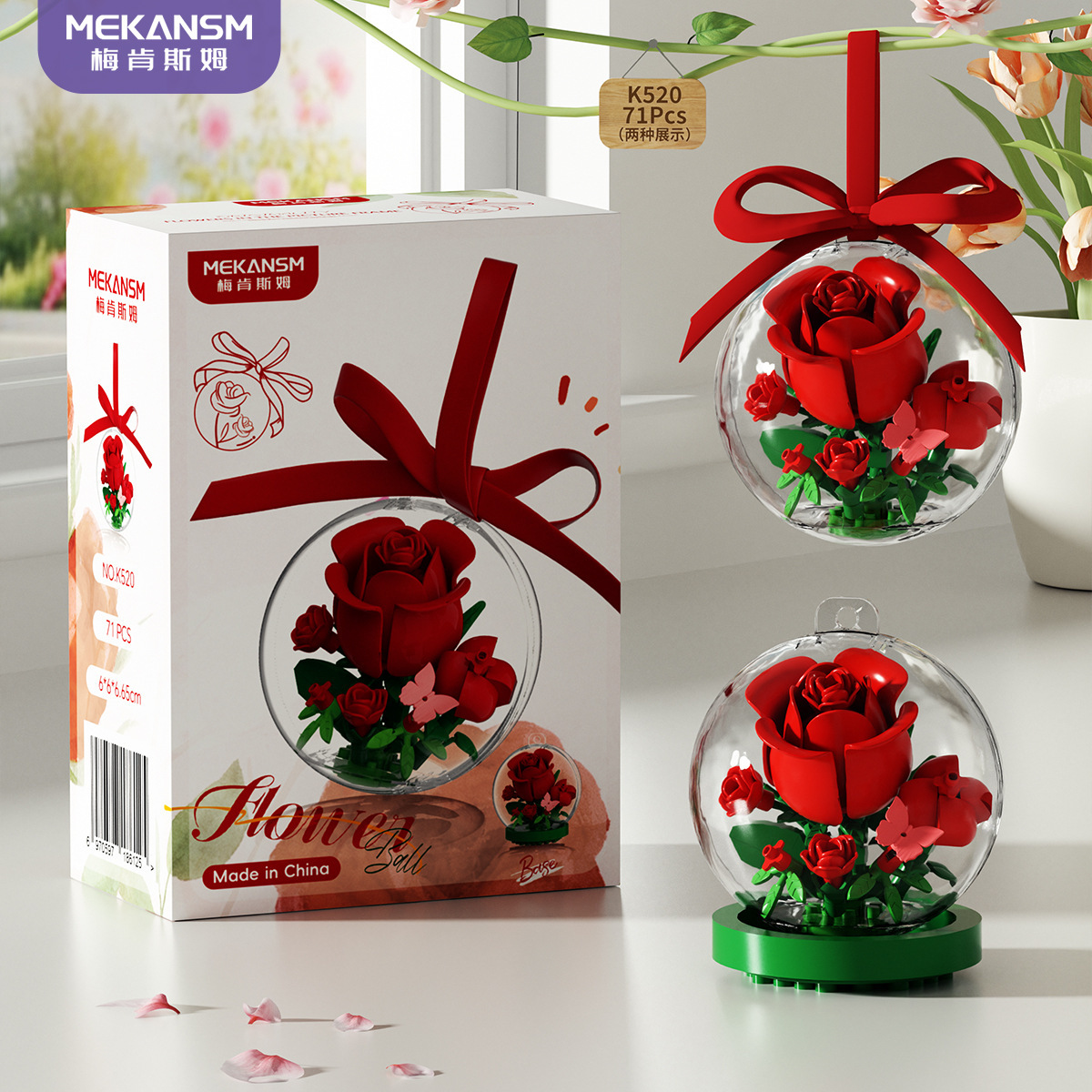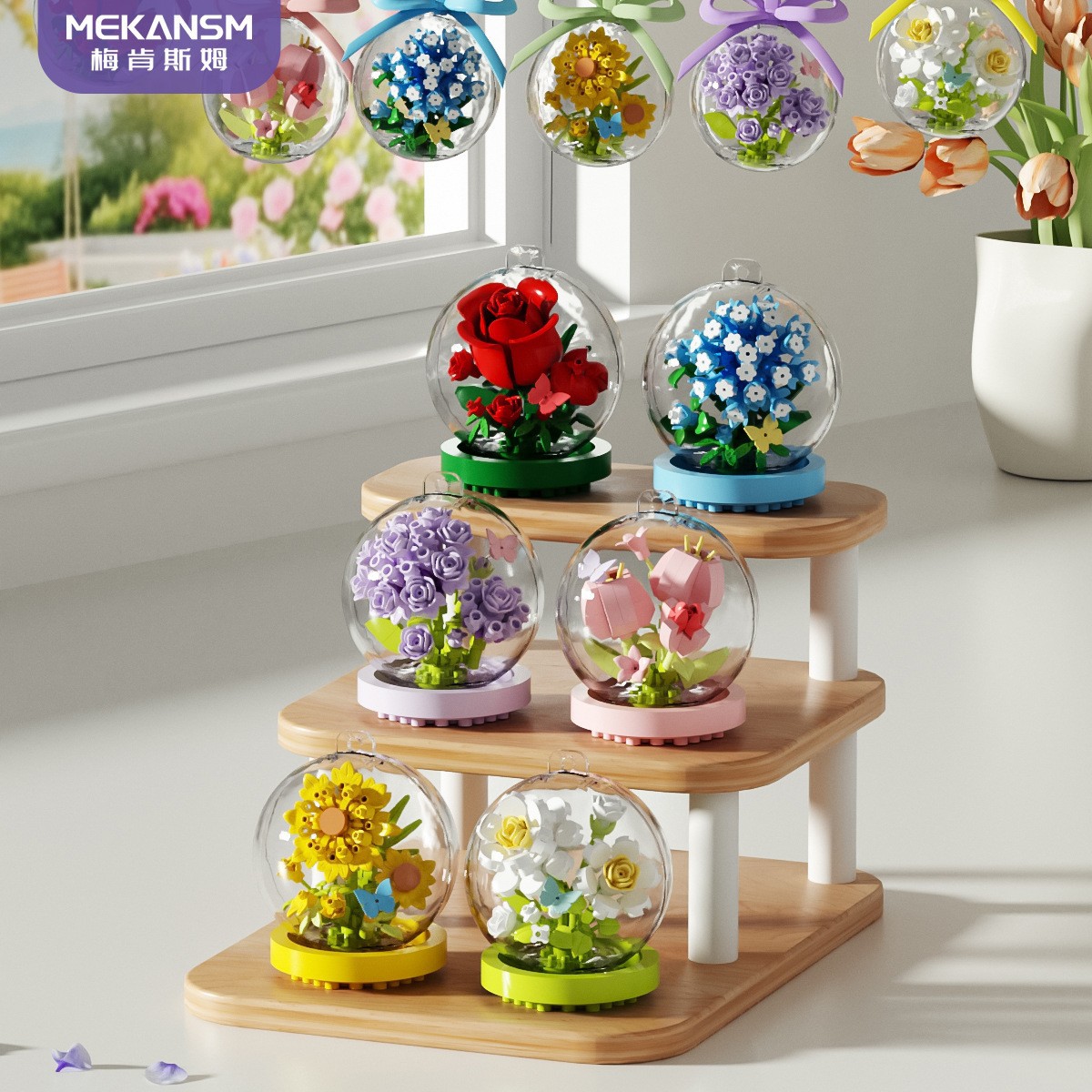 兼容乐高玫瑰水晶球积木花卉植物摆件儿童益智玩具女孩生日礼物