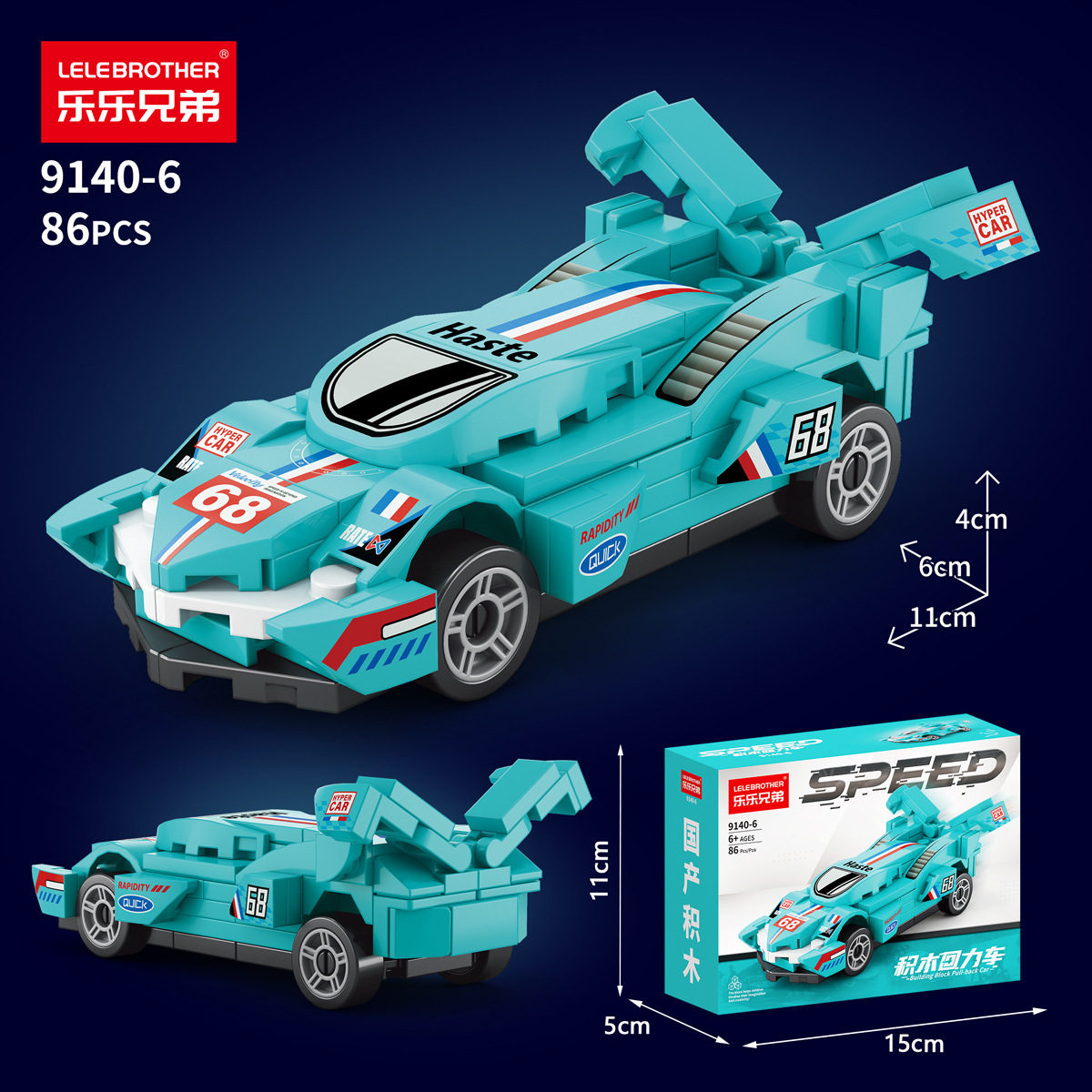 兼容乐高四格回力车赛车跑车模型益智男孩子拼装积木玩具礼物跨境
