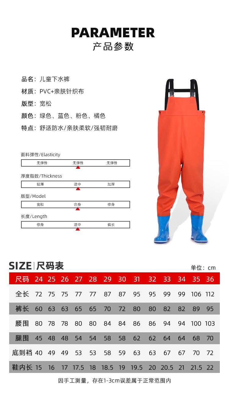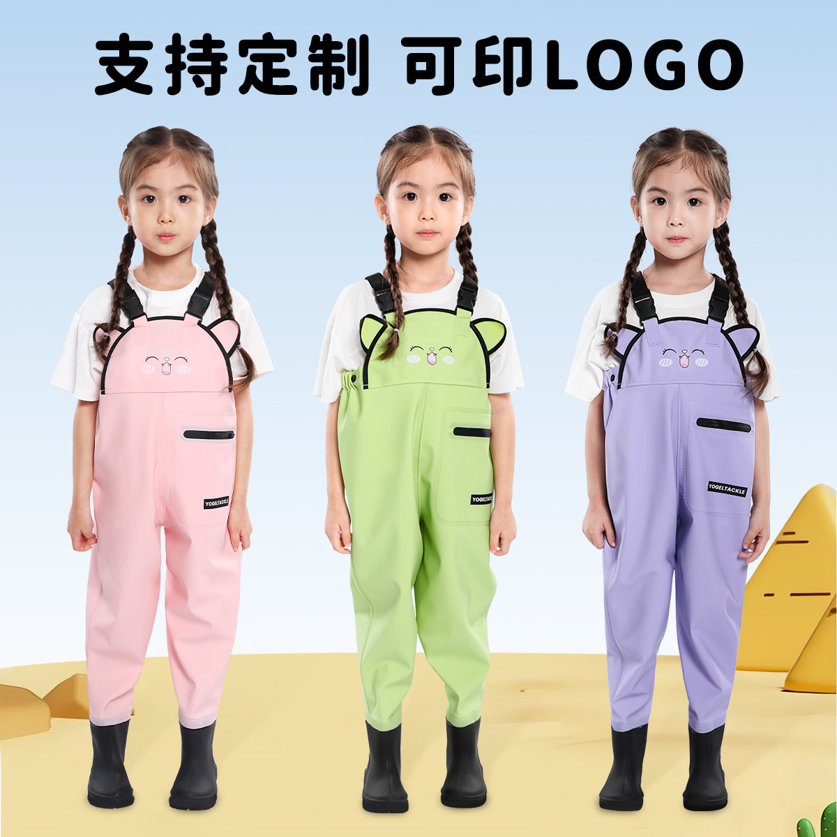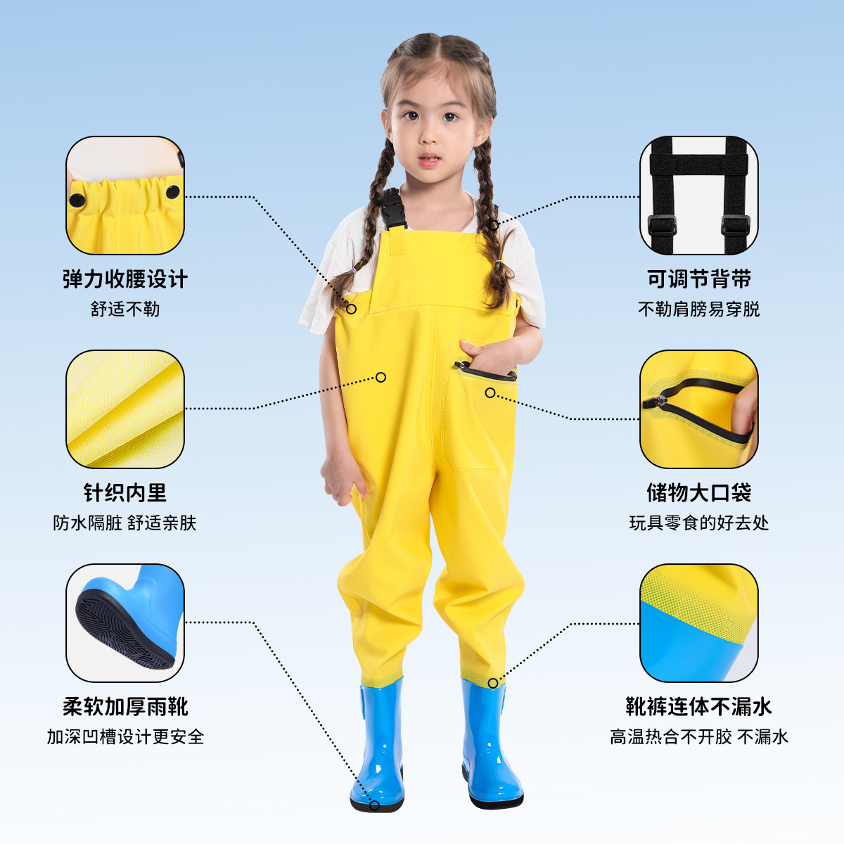 儿童下水裤 pvc皮衩连体全身水裤捕鱼衣赶海防水衣小孩玩水涉水服