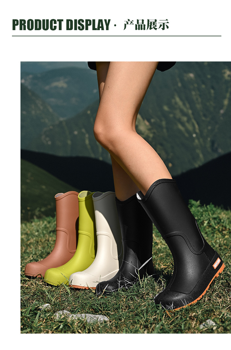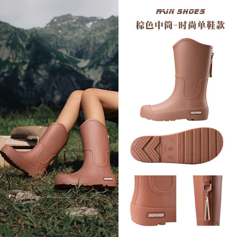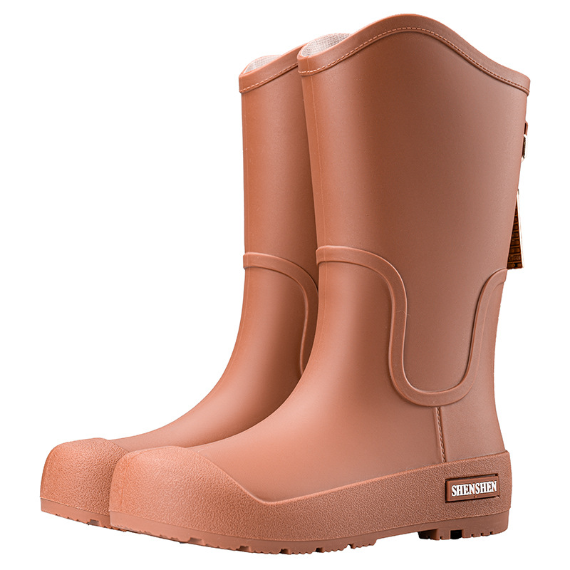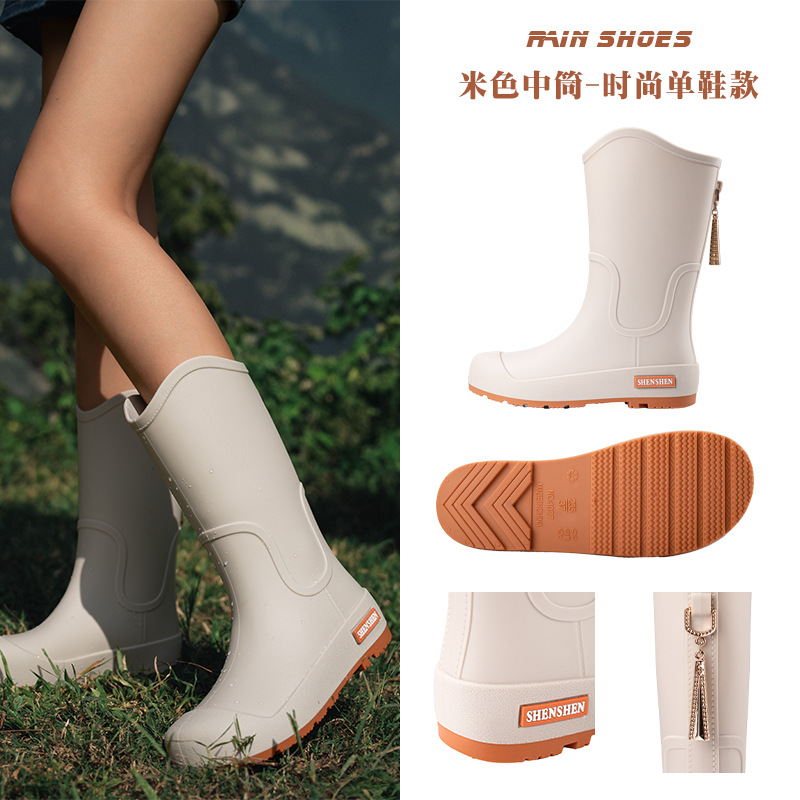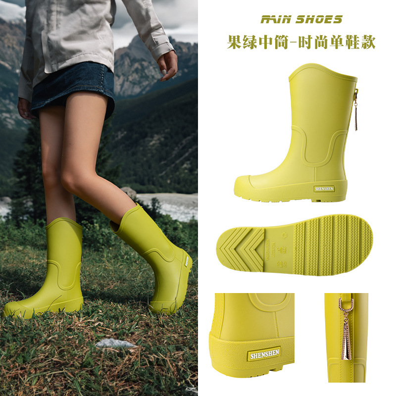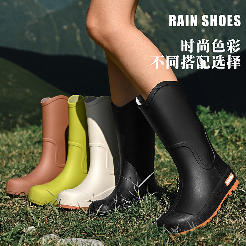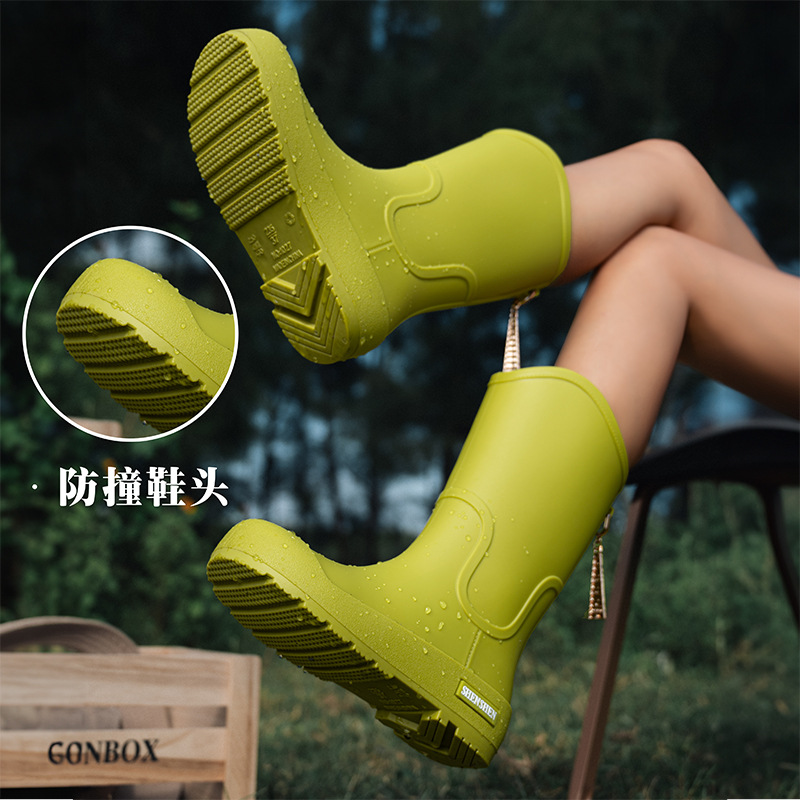 日系中筒雨鞋女款时尚外穿雨靴防滑防水耐磨一体胶鞋厨房软底水鞋