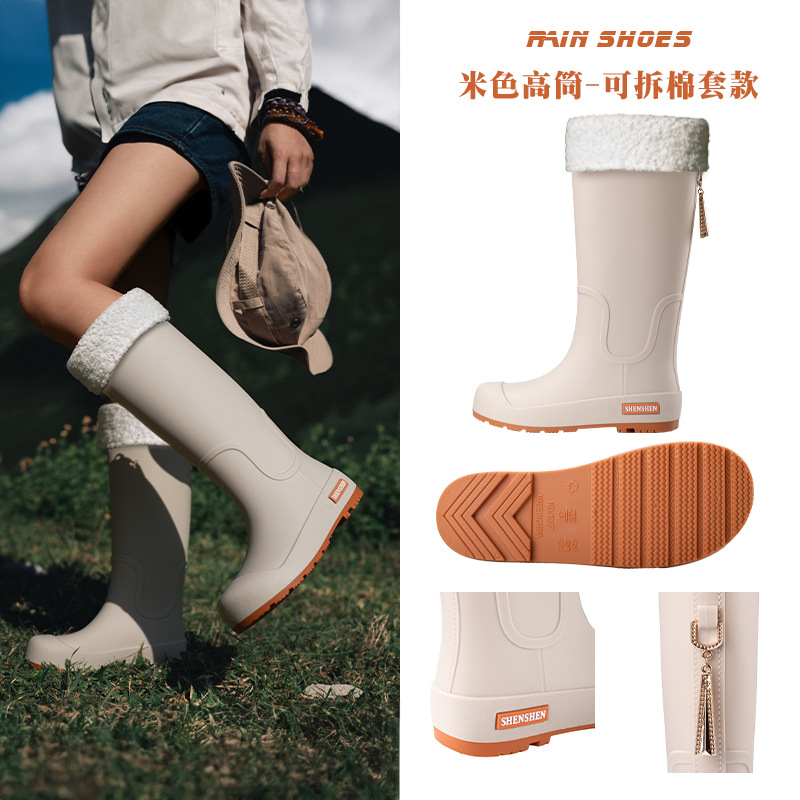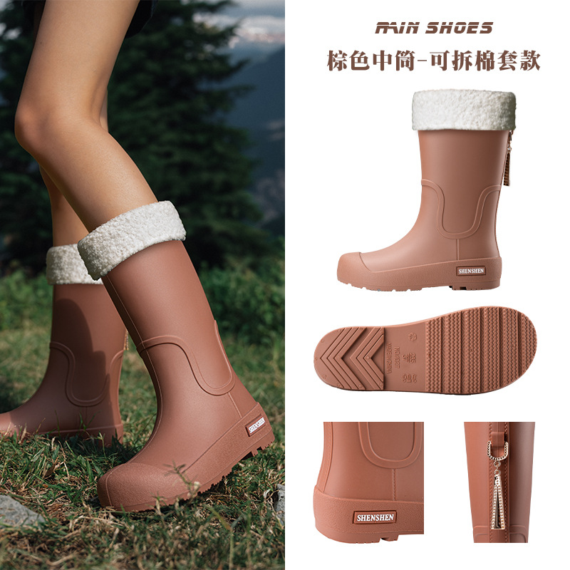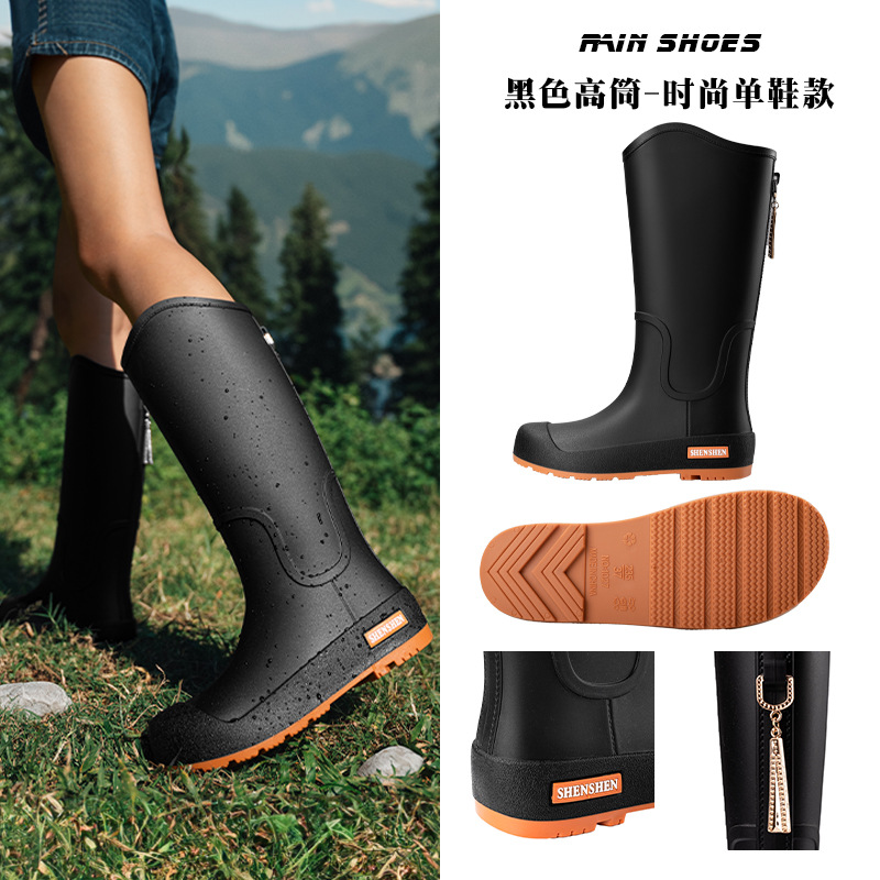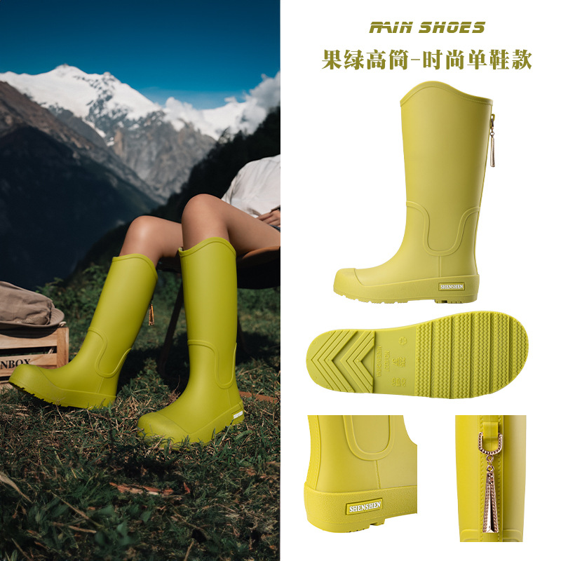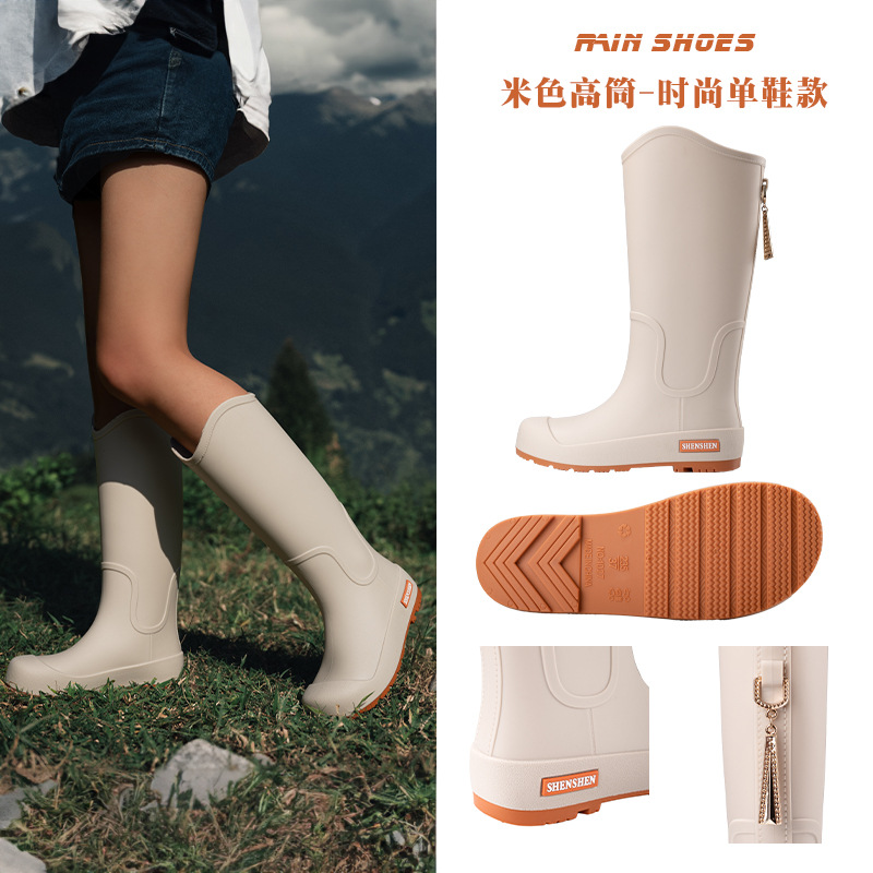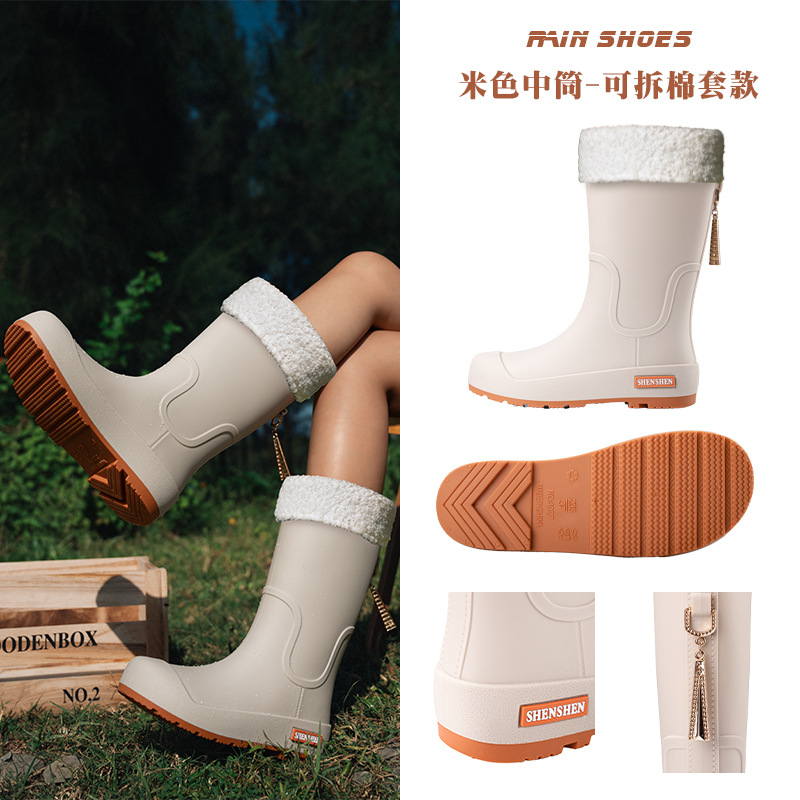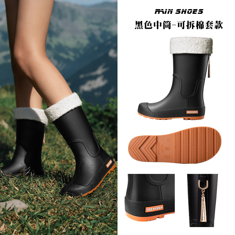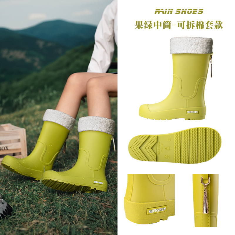日系中筒雨鞋女款时尚外穿雨靴防滑防水耐磨一体胶鞋厨房软底水鞋