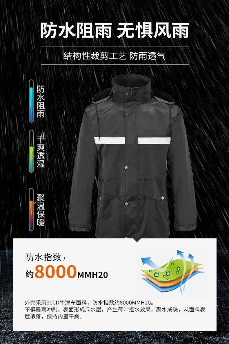 新式管理雨衣雨裤套装户外防水加厚分体保安物业劳保成人反光雨服