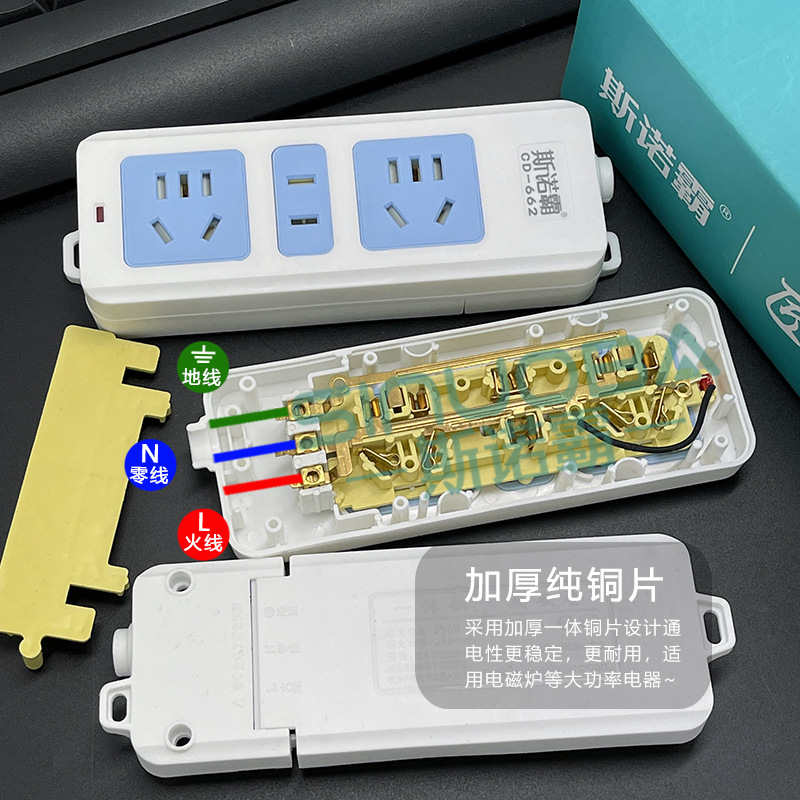 斯诺霸纯铜插座带线排插2500W大功率电磁炉多功能插板【质保3年】