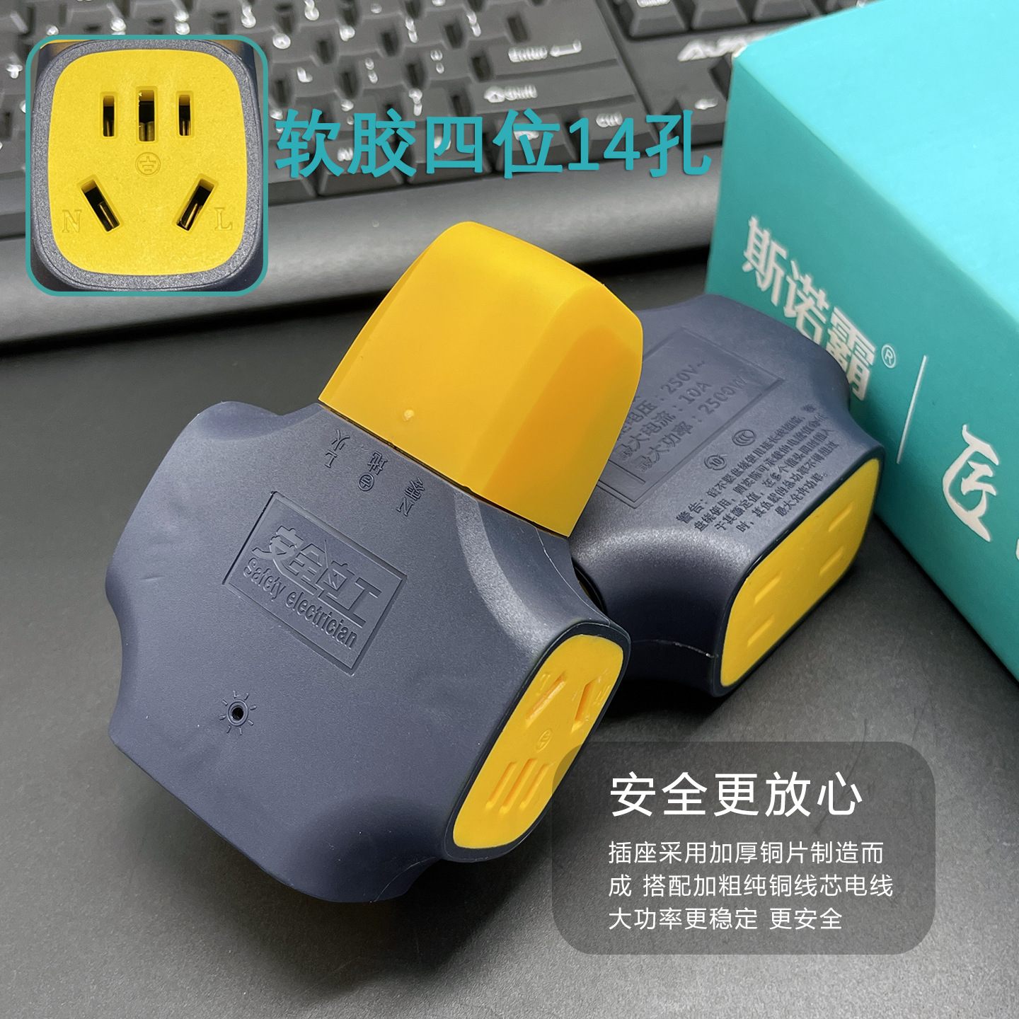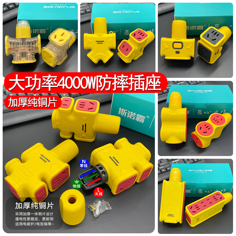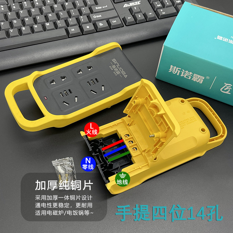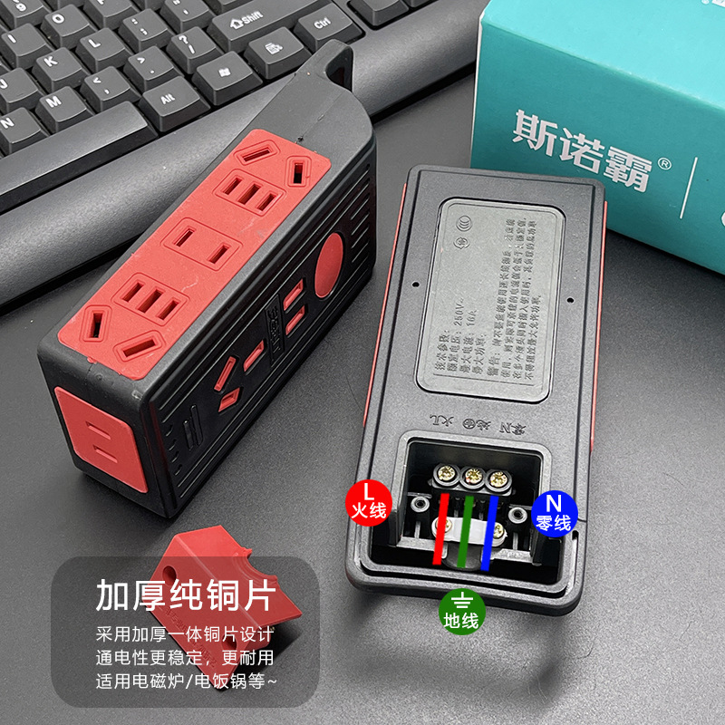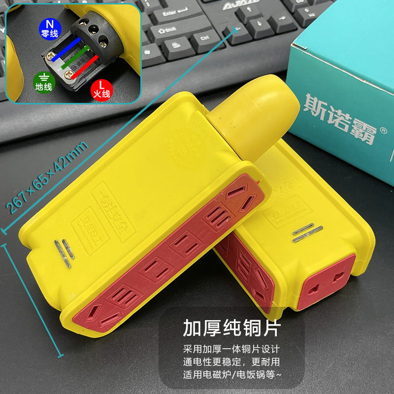 斯诺霸地拖插座 排插厚铜工地抗摔大功率多孔无线插排工程大字插