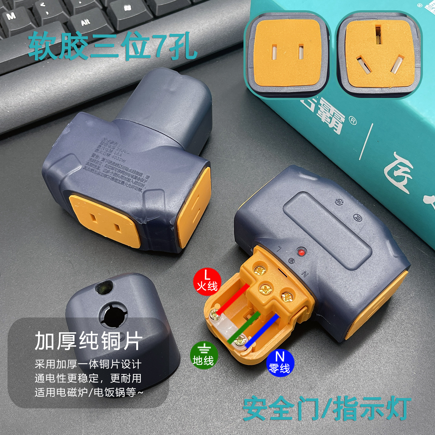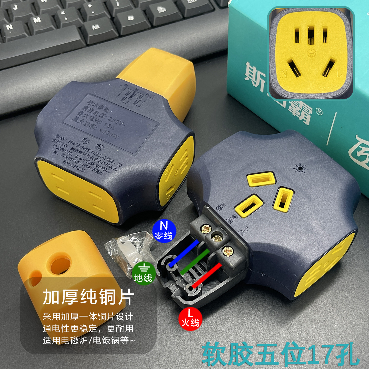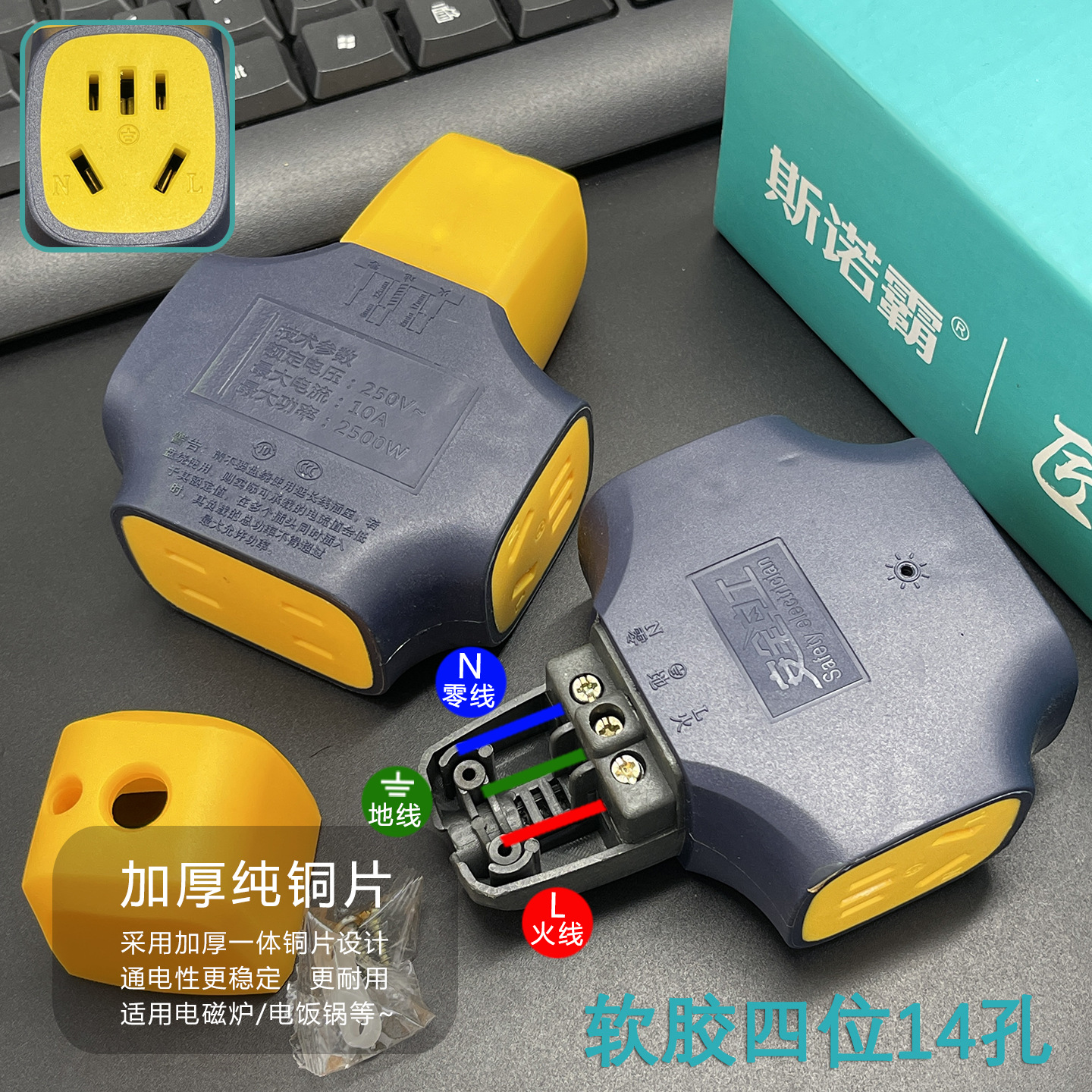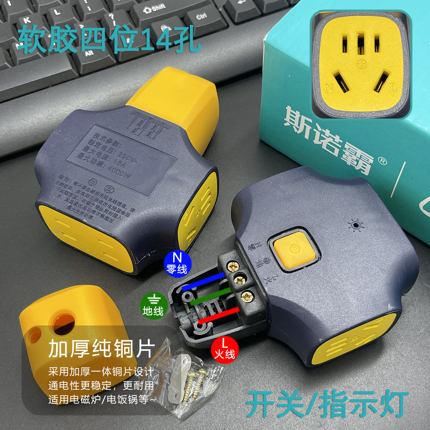 斯诺霸地拖插座 排插厚铜工地抗摔大功率多孔无线插排工程大字插
