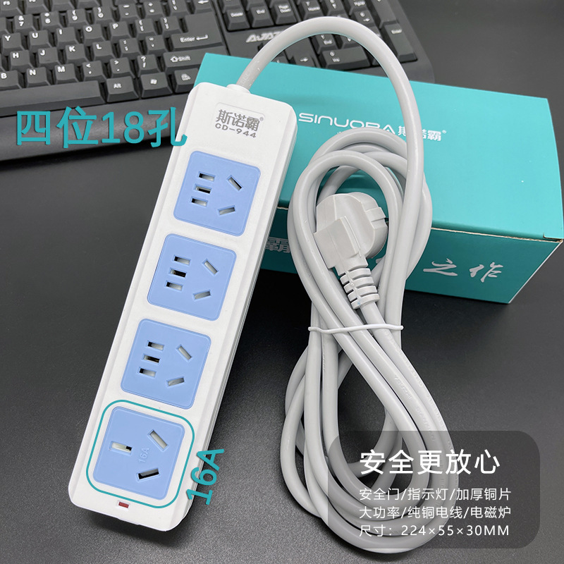 斯诺霸纯铜插座带线排插16安4000W大功率空调插座 纯铜线芯2-10米