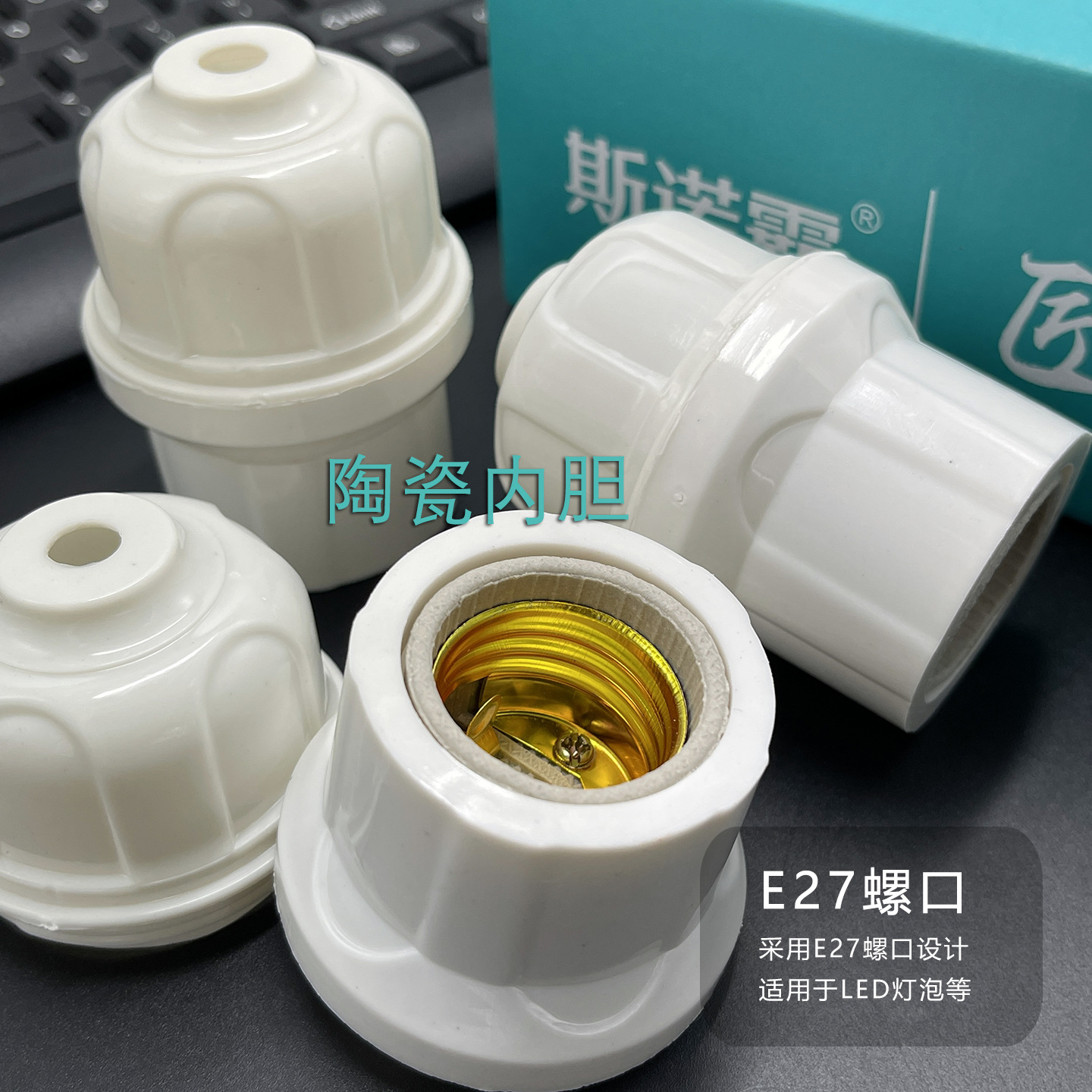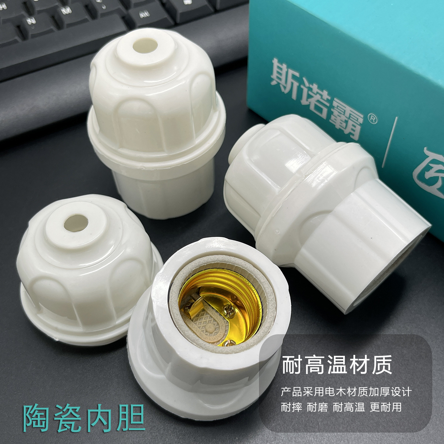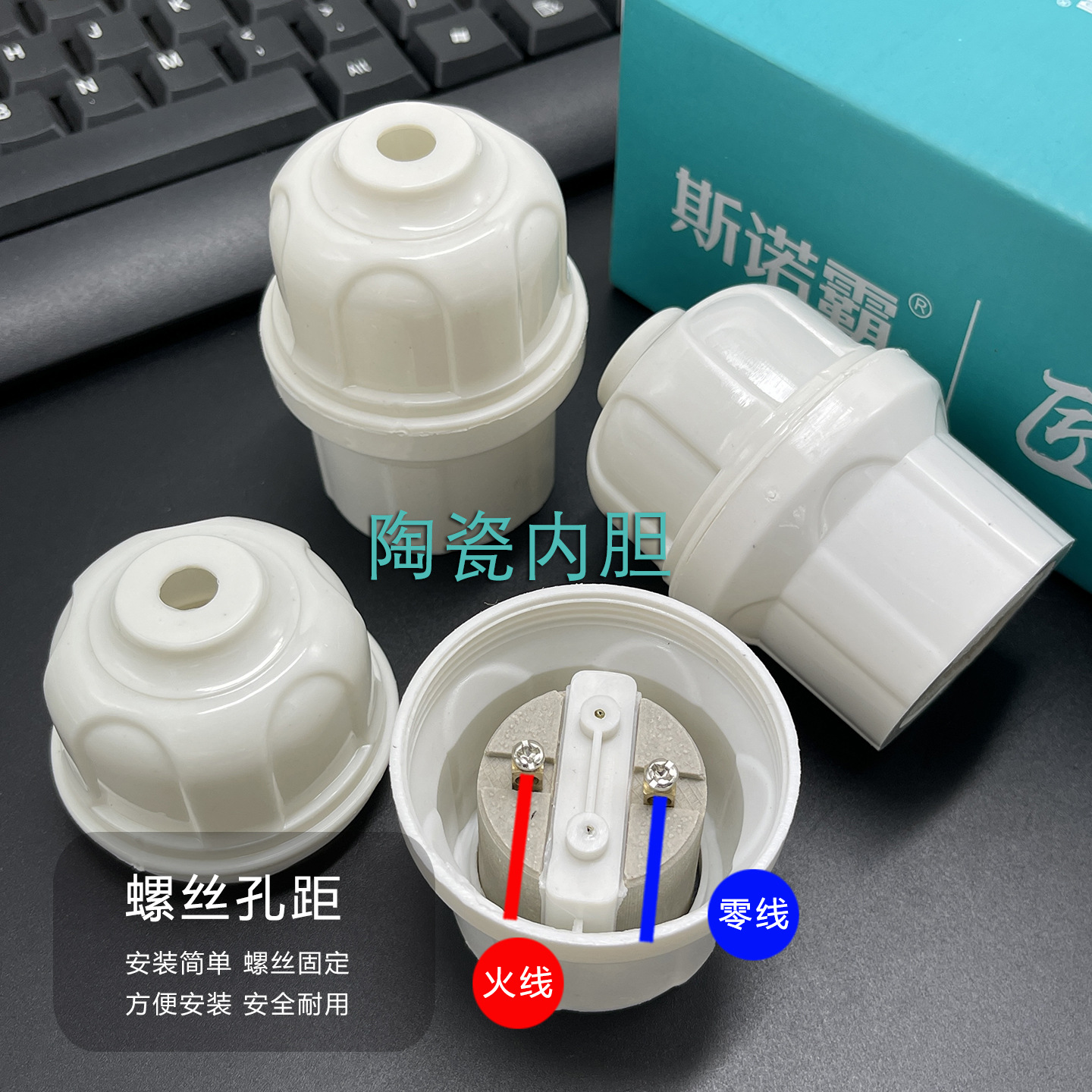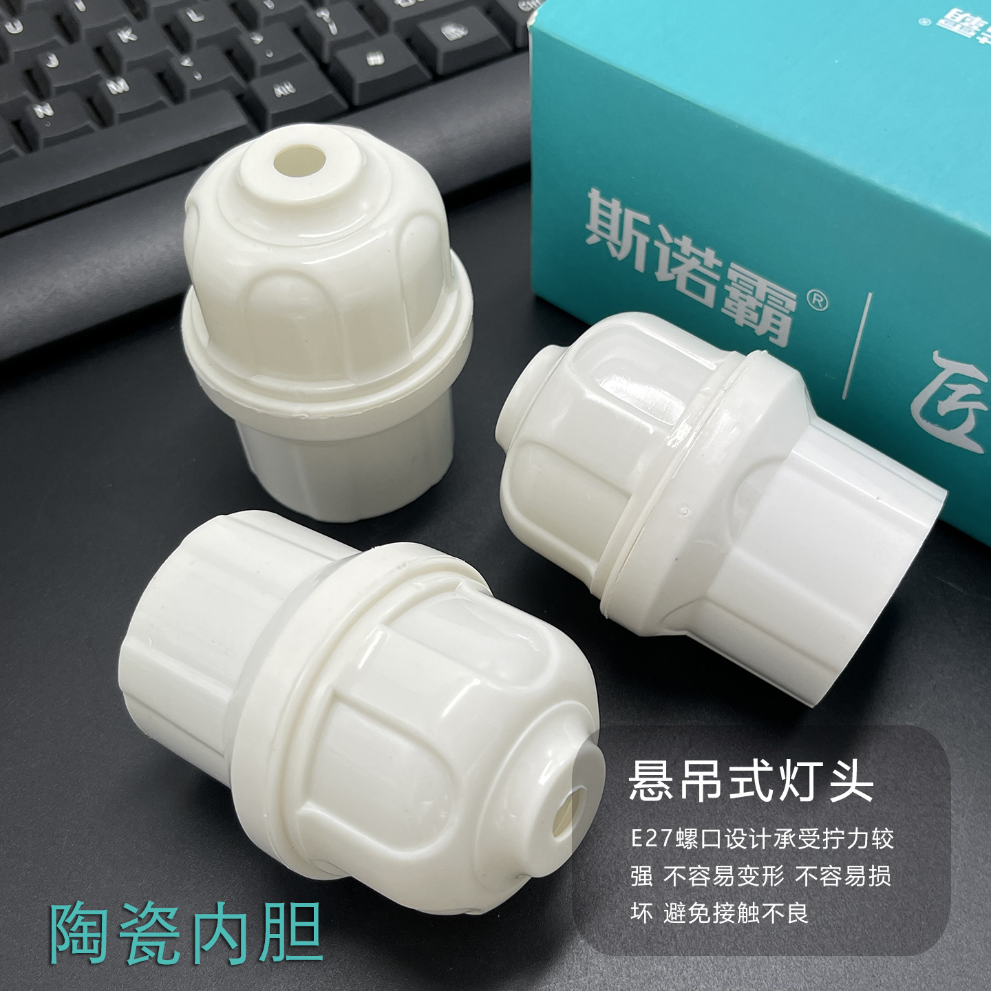 悬吊式螺口灯头带瓷灯座 耐高温阻燃 E27螺旋口灯泡底座工地户外