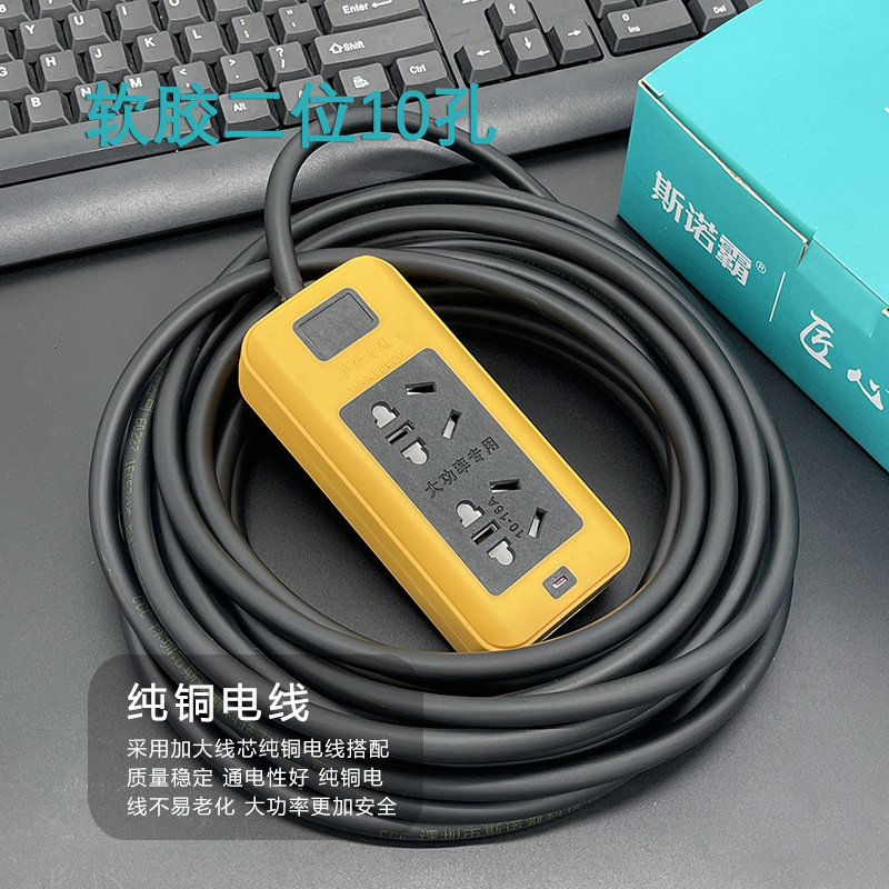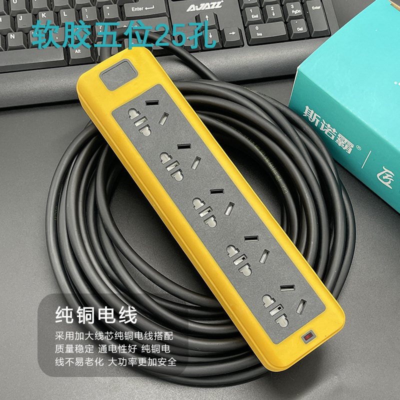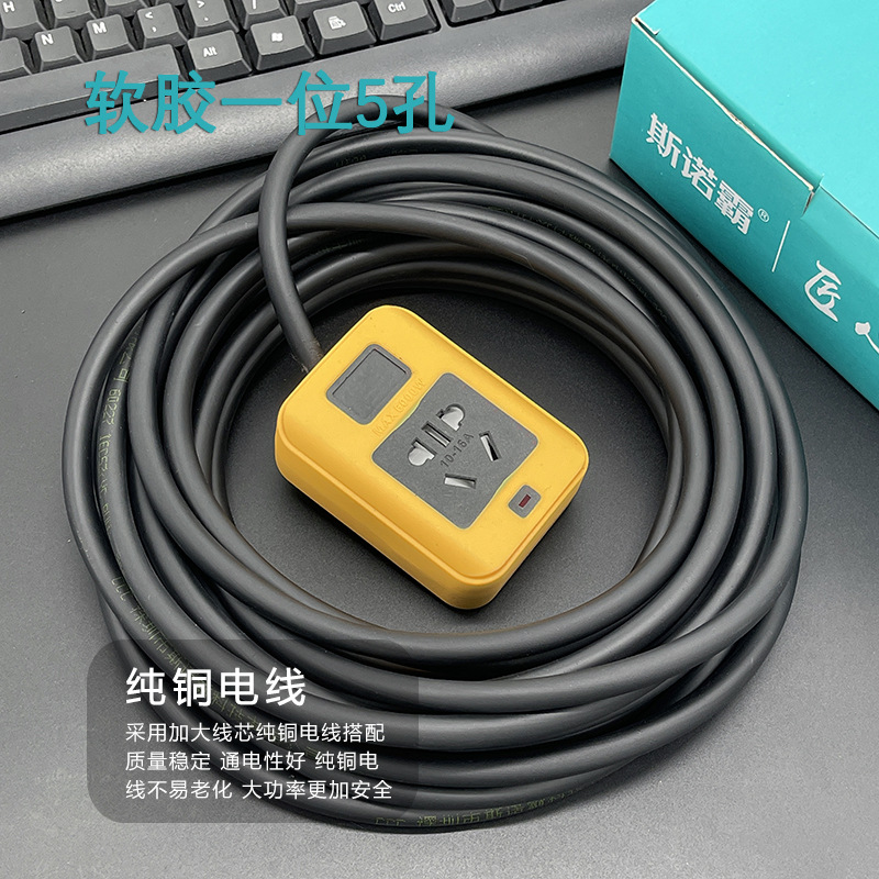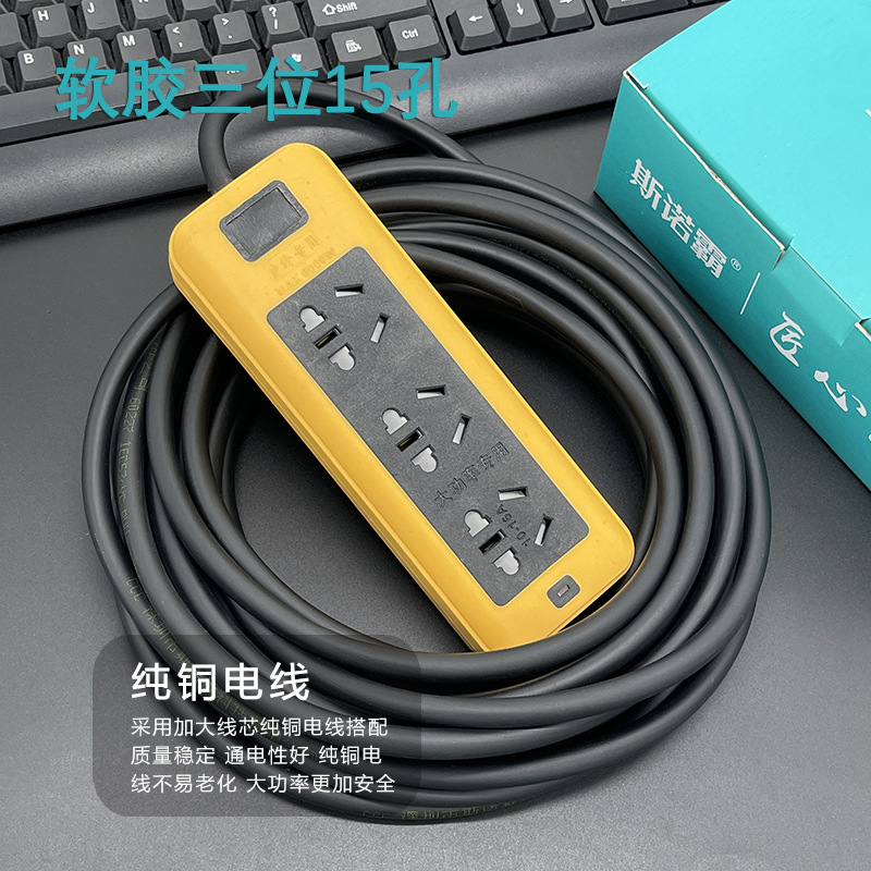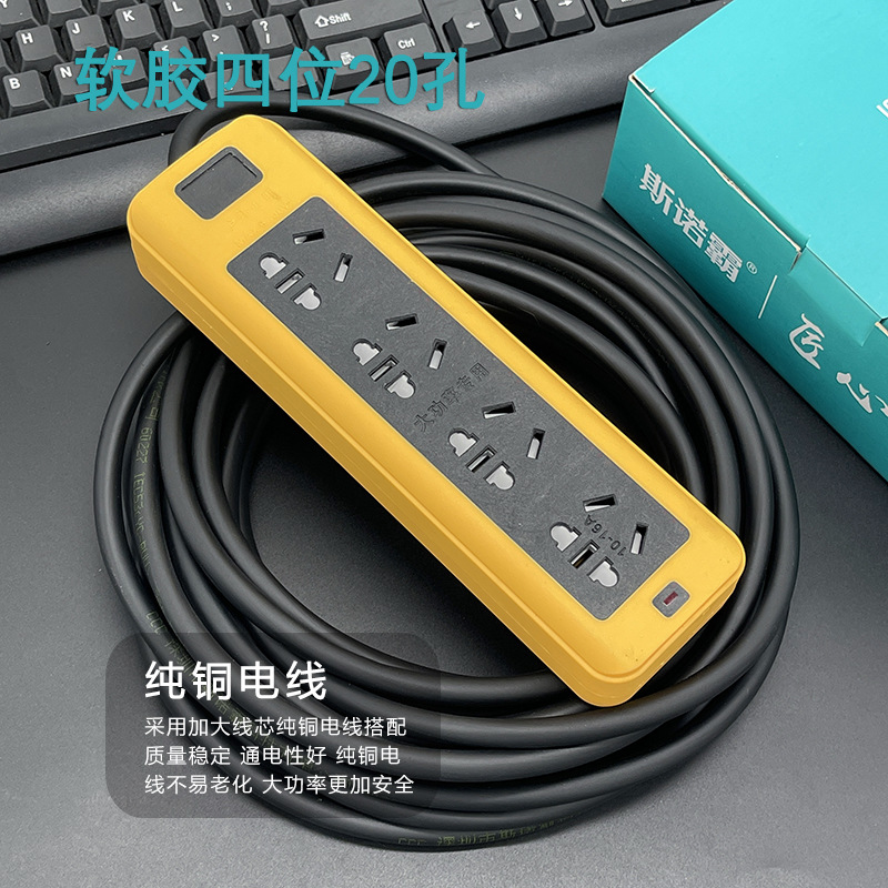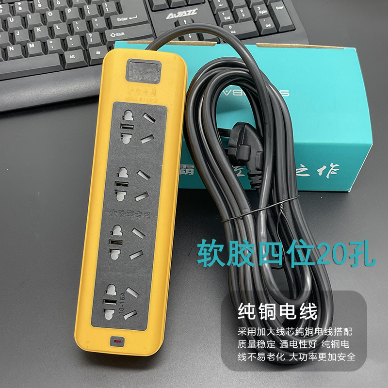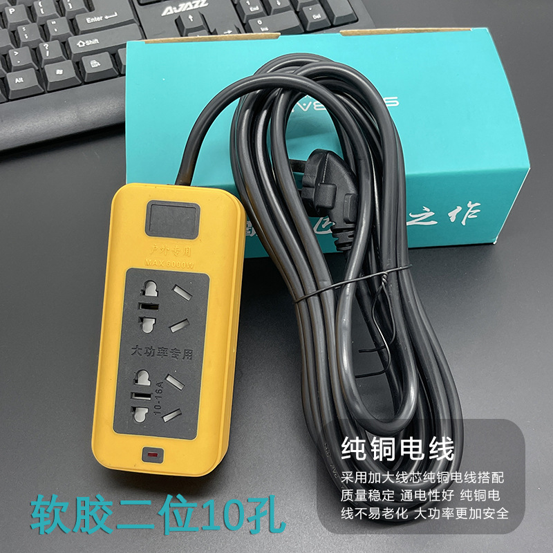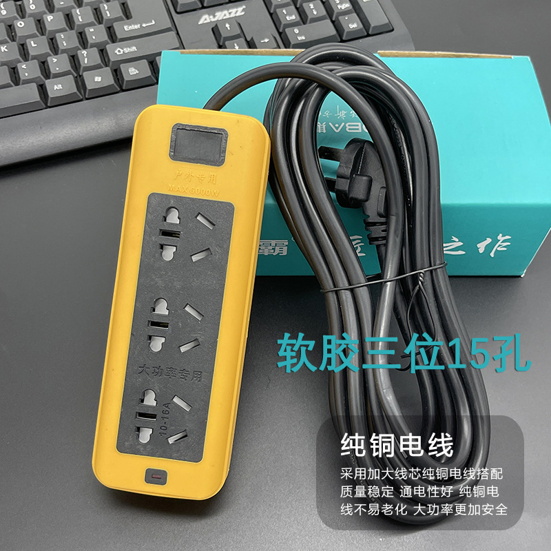 防摔地拖插座带线排插大功率软胶工地插线板多插孔纯铜线芯2-30米