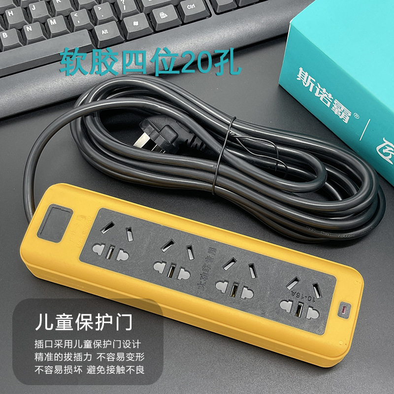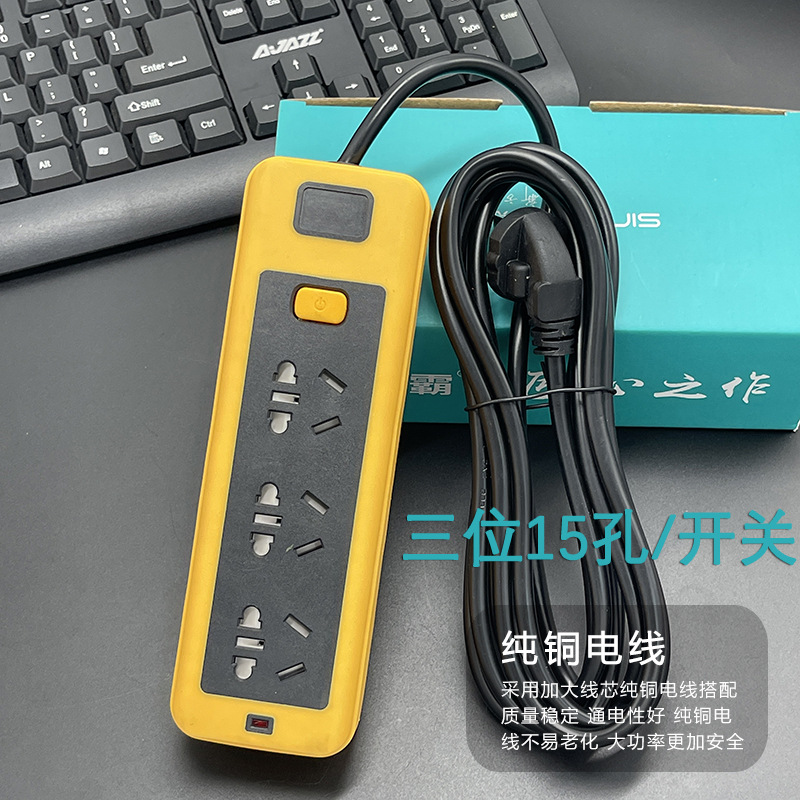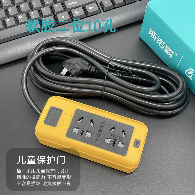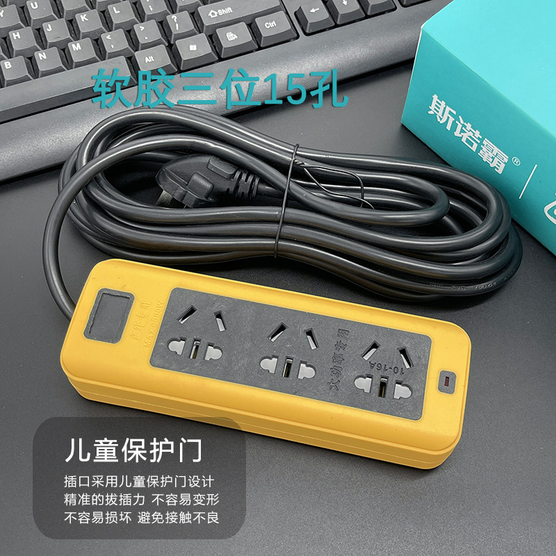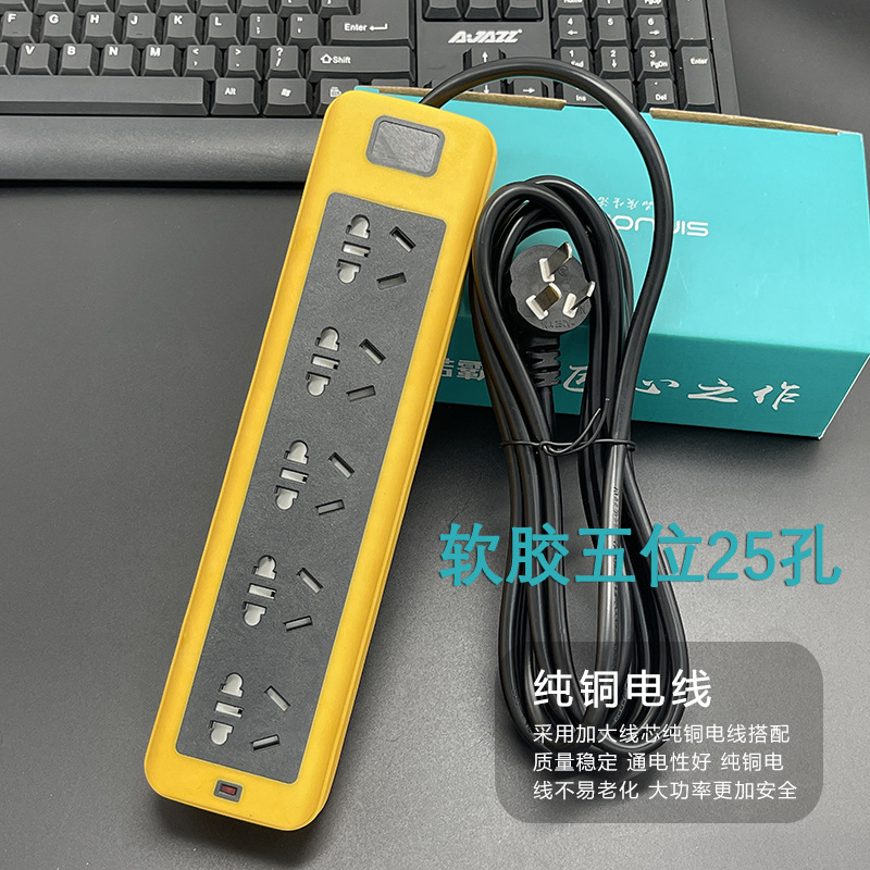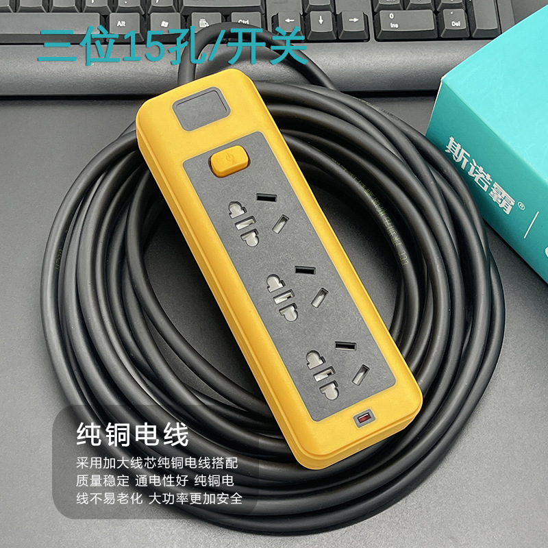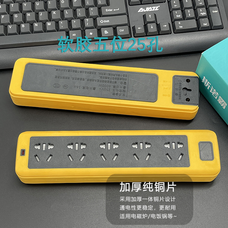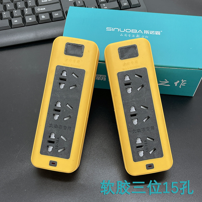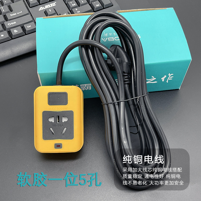 防摔地拖插座带线排插大功率软胶工地插线板多插孔纯铜线芯2-30米