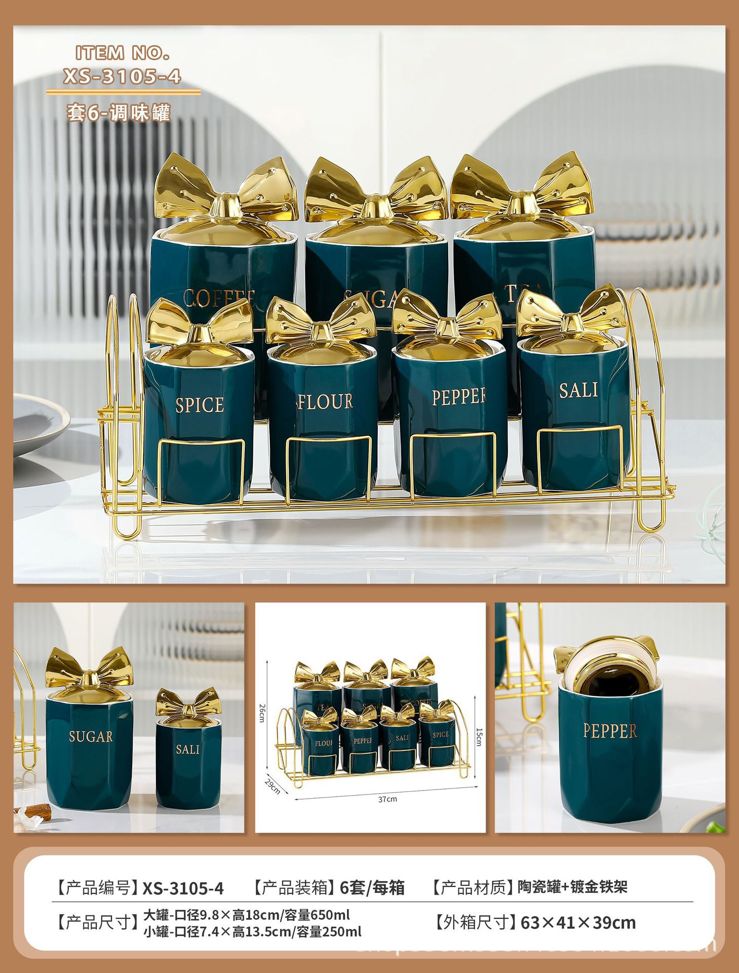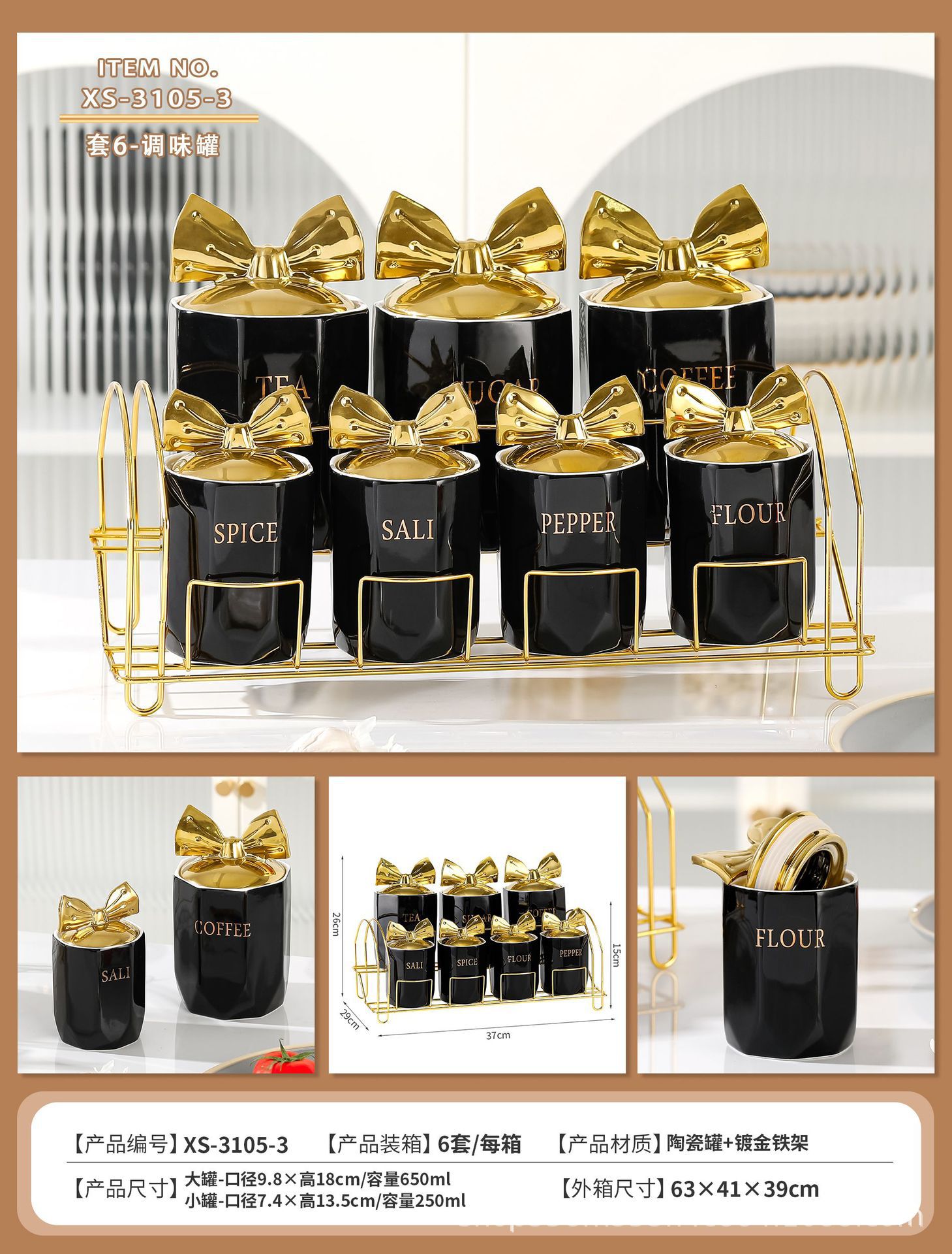 创意轻奢北欧高档厨房调味罐家居家用大容量密封罐咖啡豆茶糖罐子