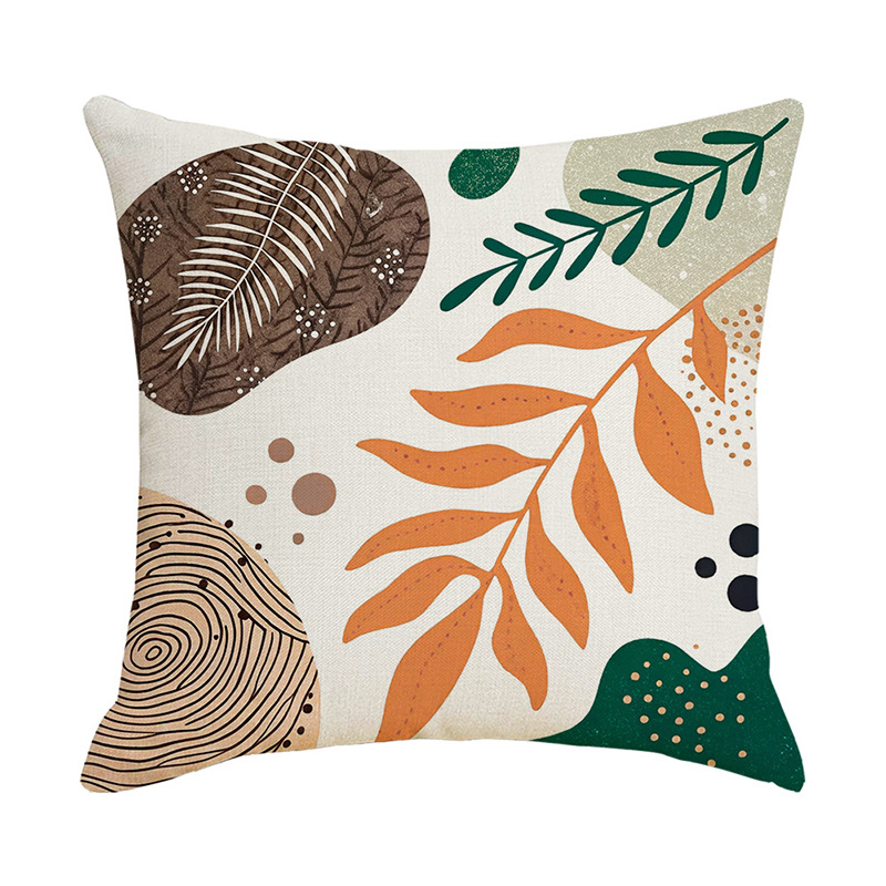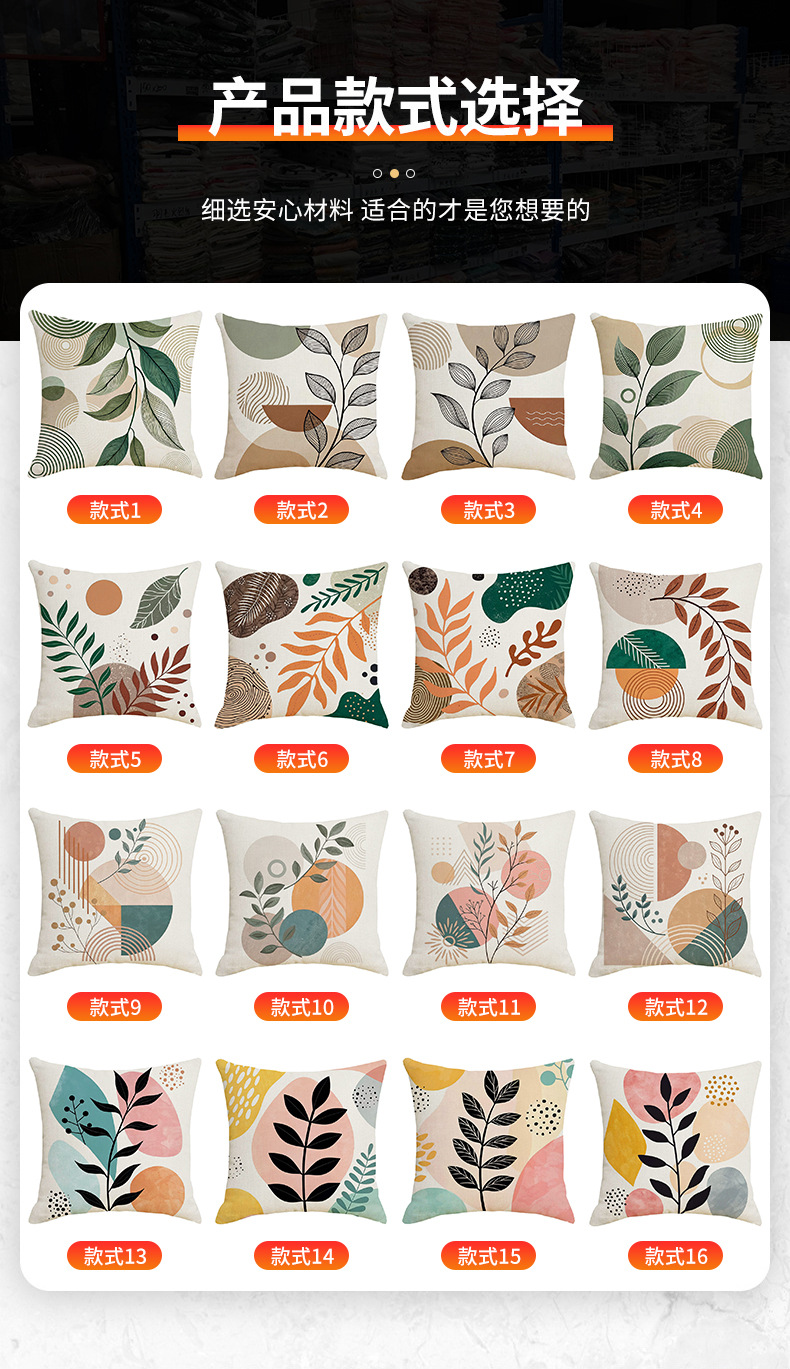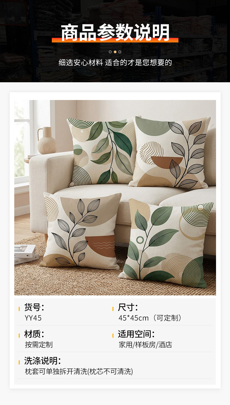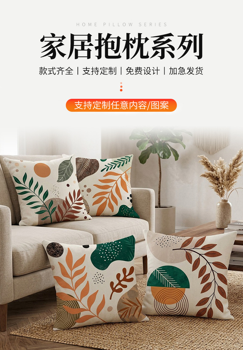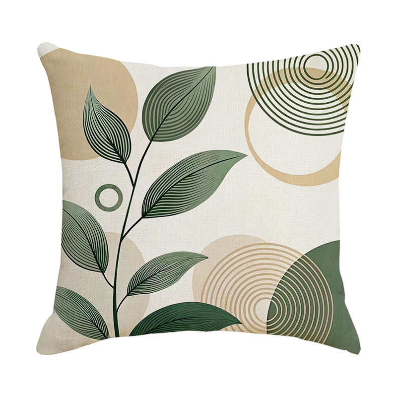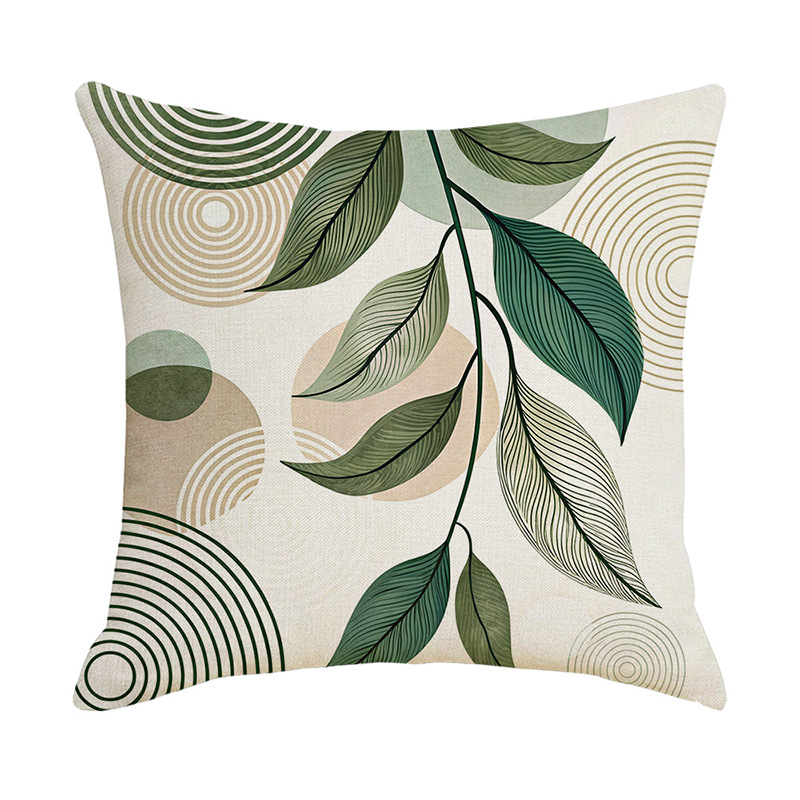 夏季北欧植物抱枕套跨境抽象几何绿叶印花沙发靠枕套不含芯靠垫套