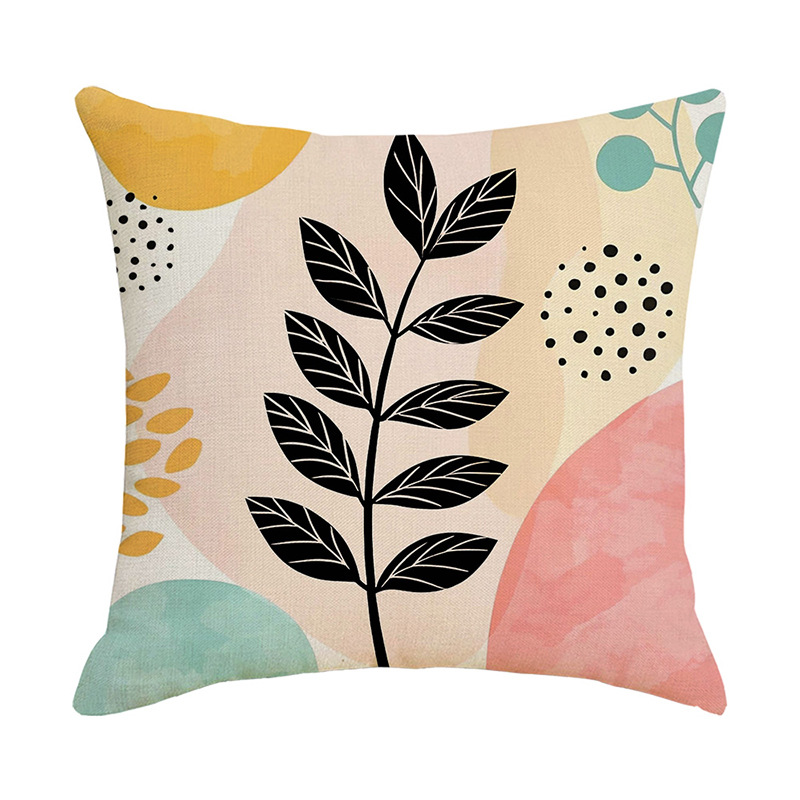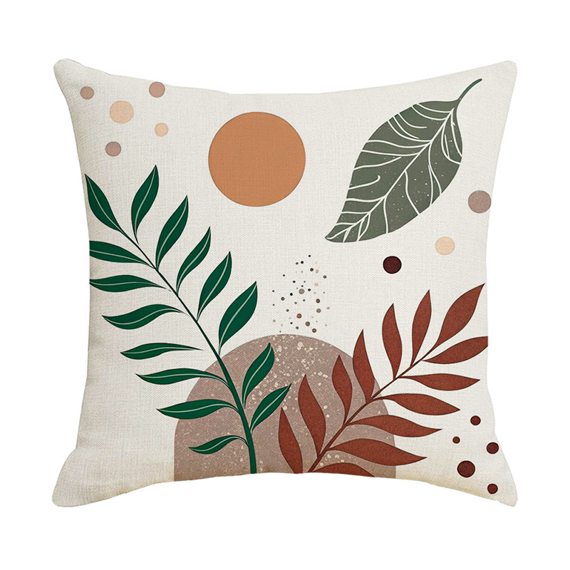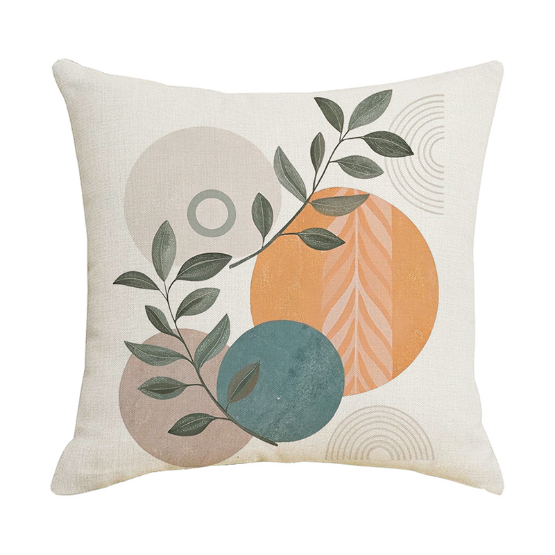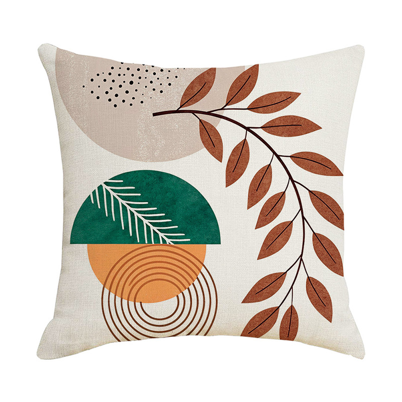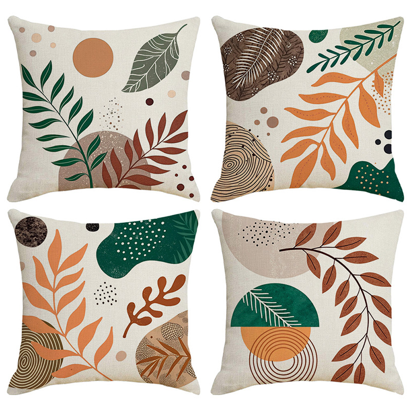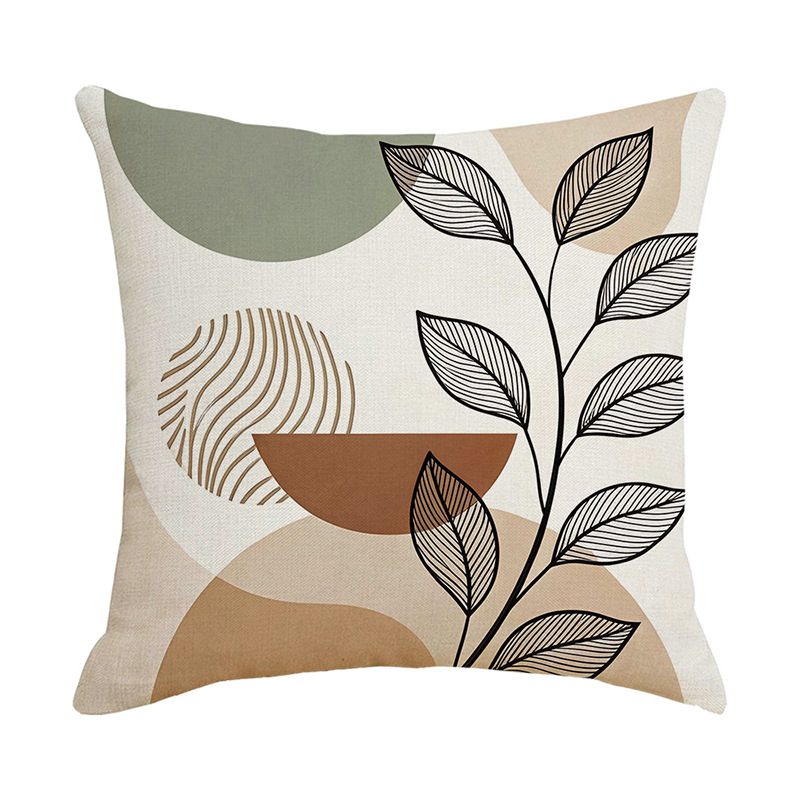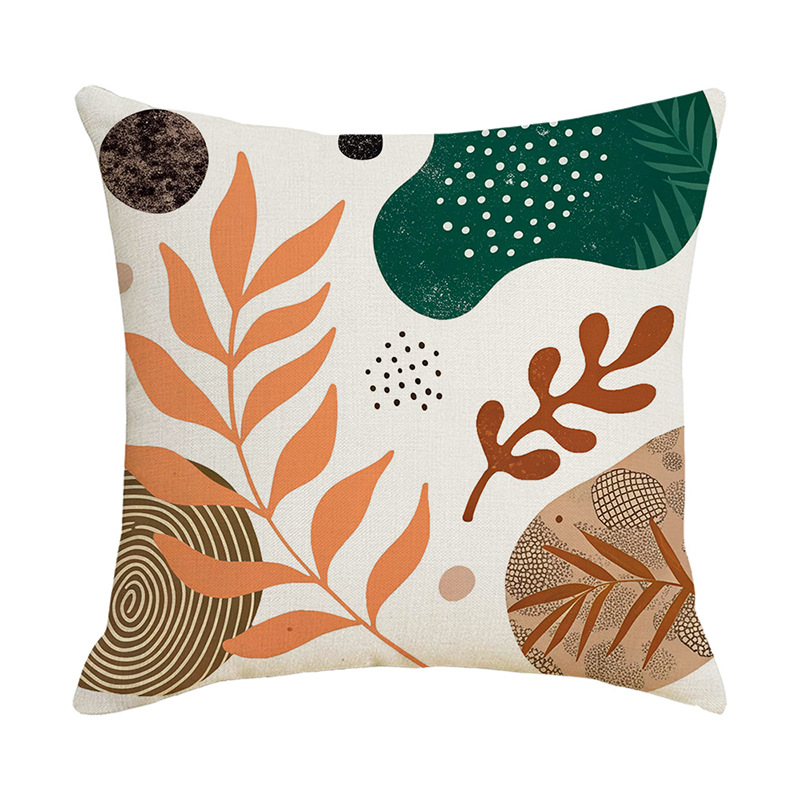 夏季北欧植物抱枕套跨境抽象几何绿叶印花沙发靠枕套不含芯靠垫套