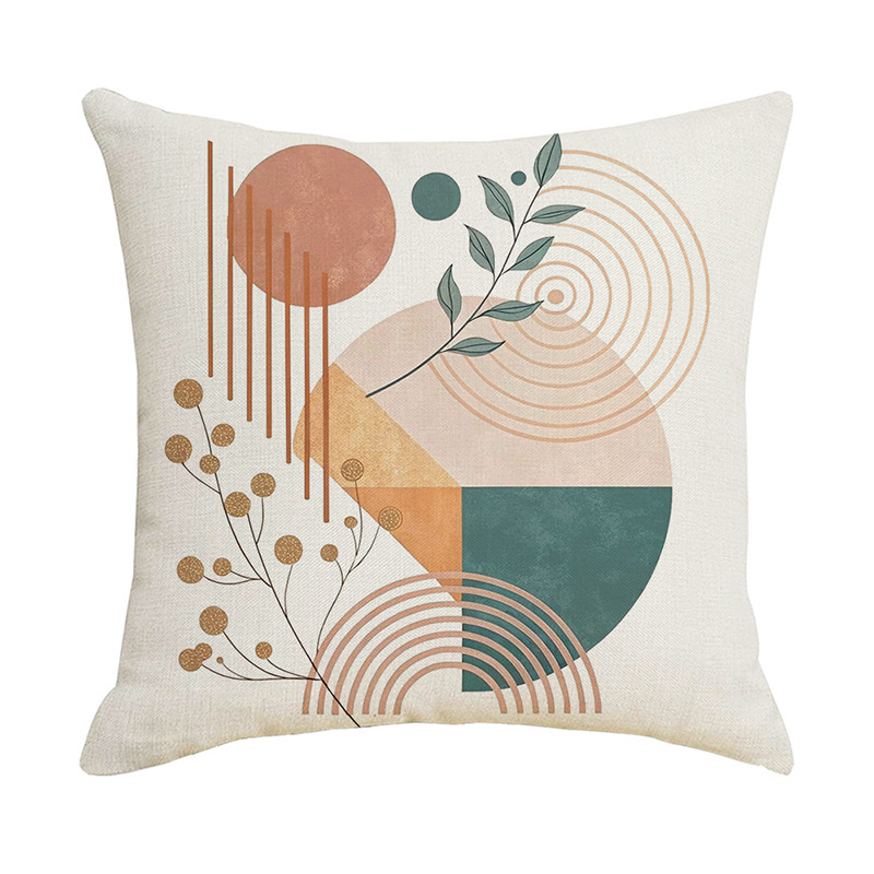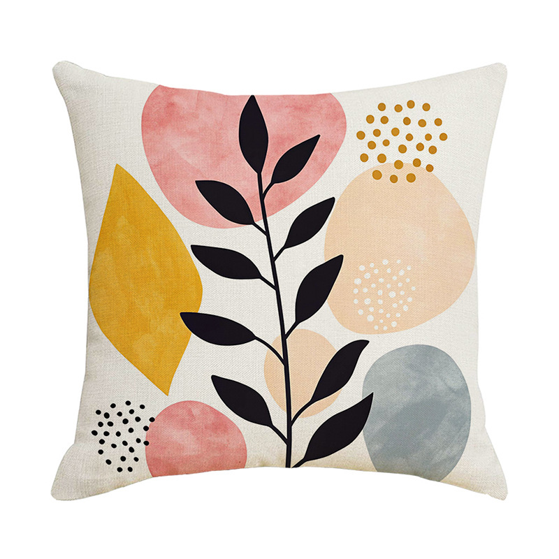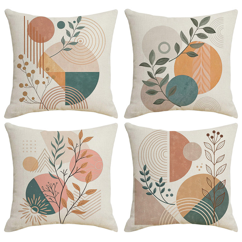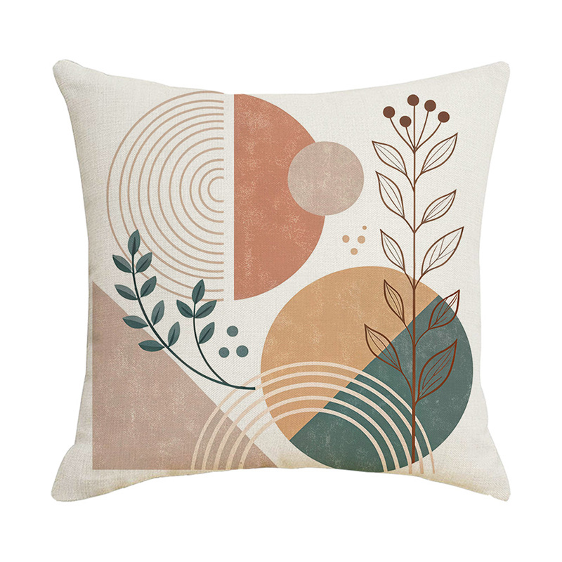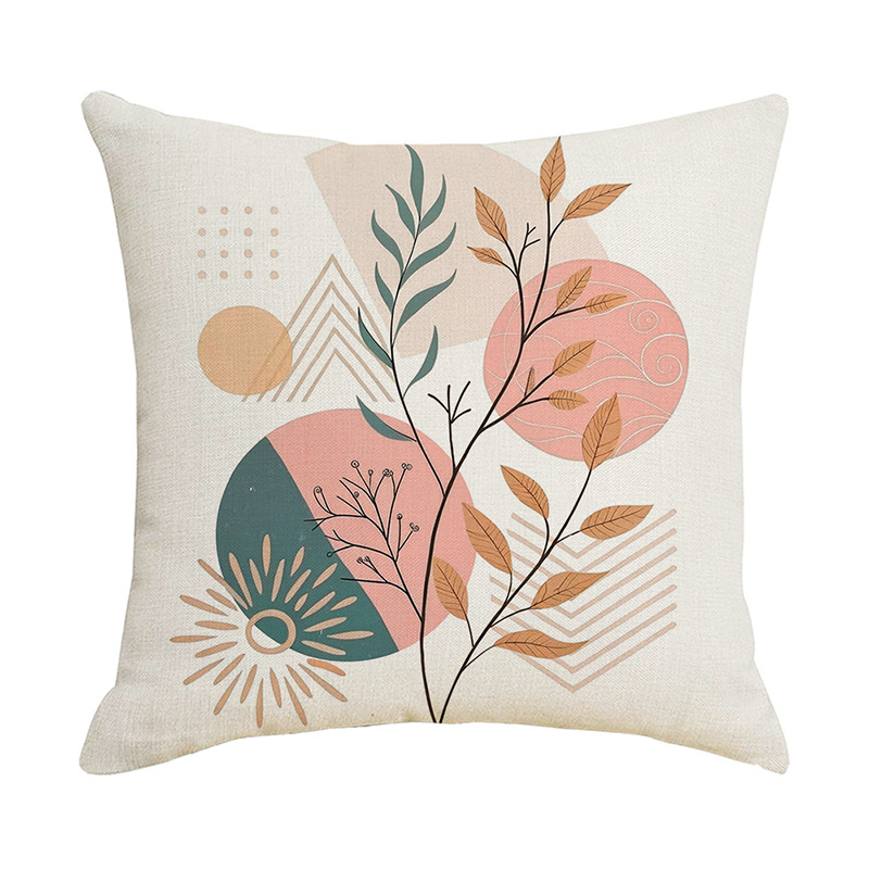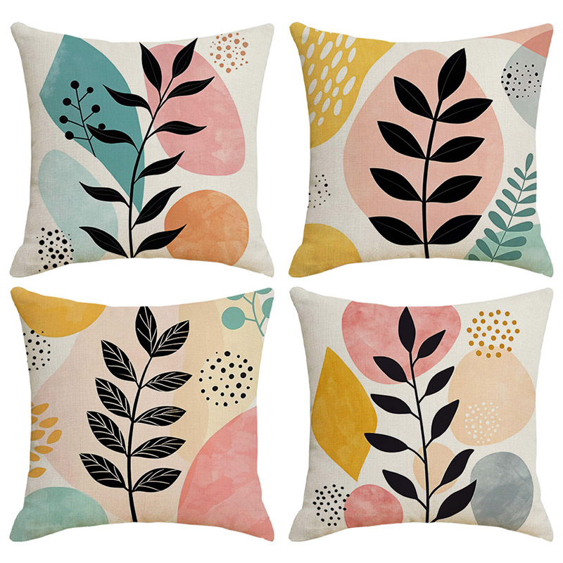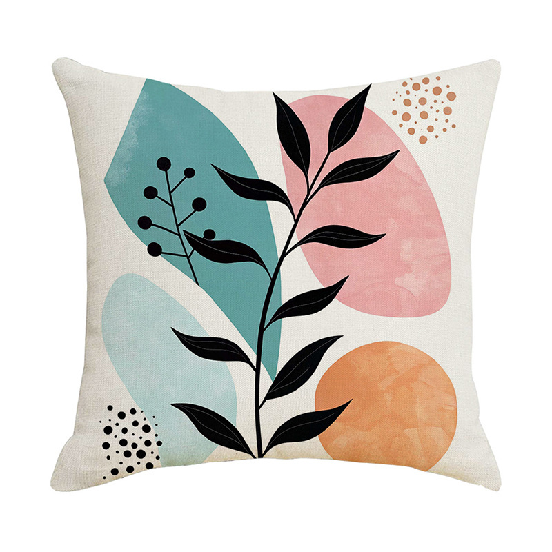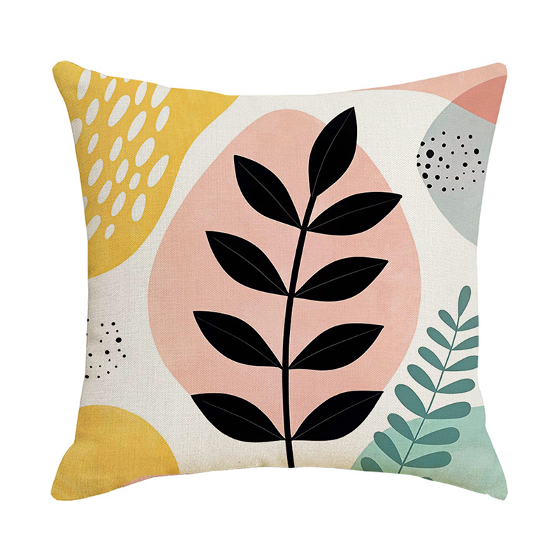 夏季北欧植物抱枕套跨境抽象几何绿叶印花沙发靠枕套不含芯靠垫套
