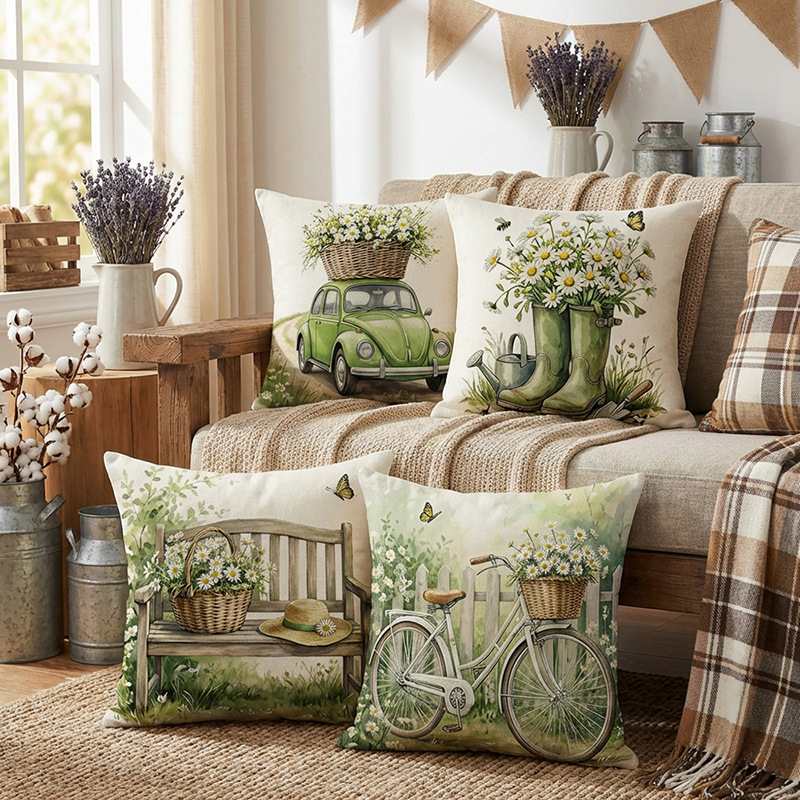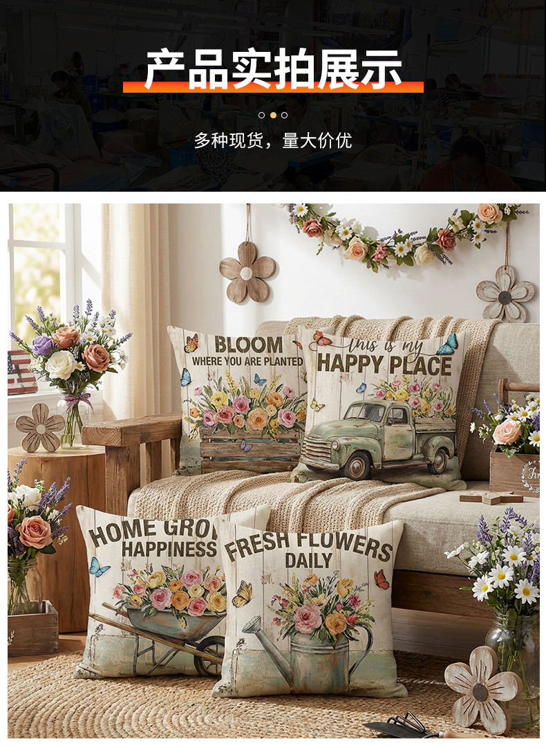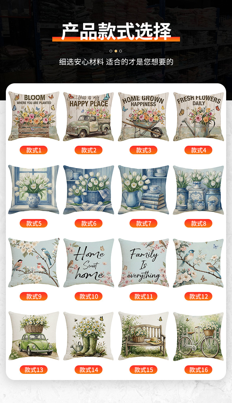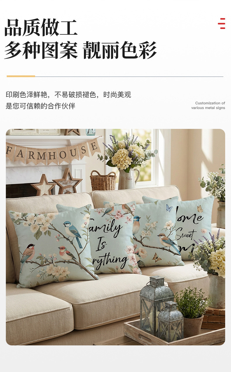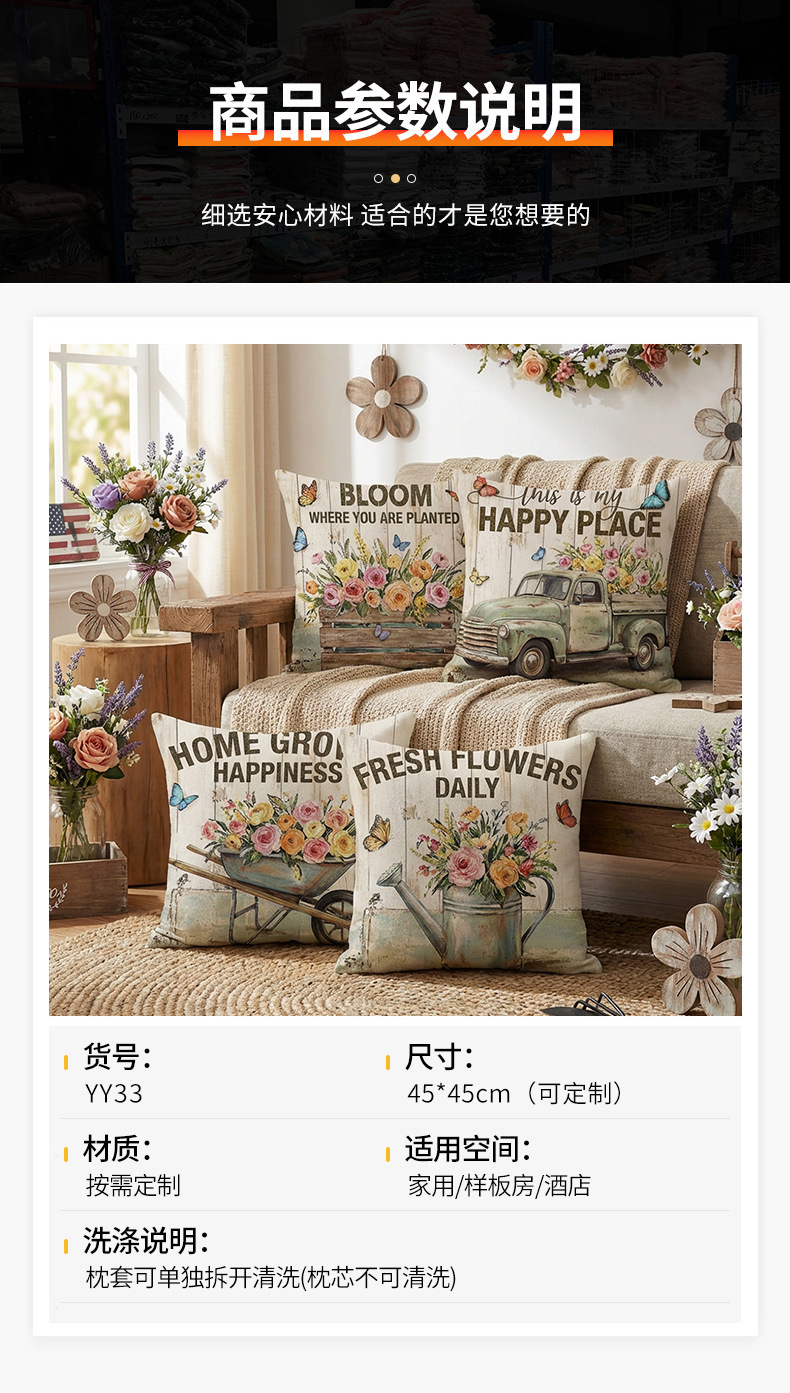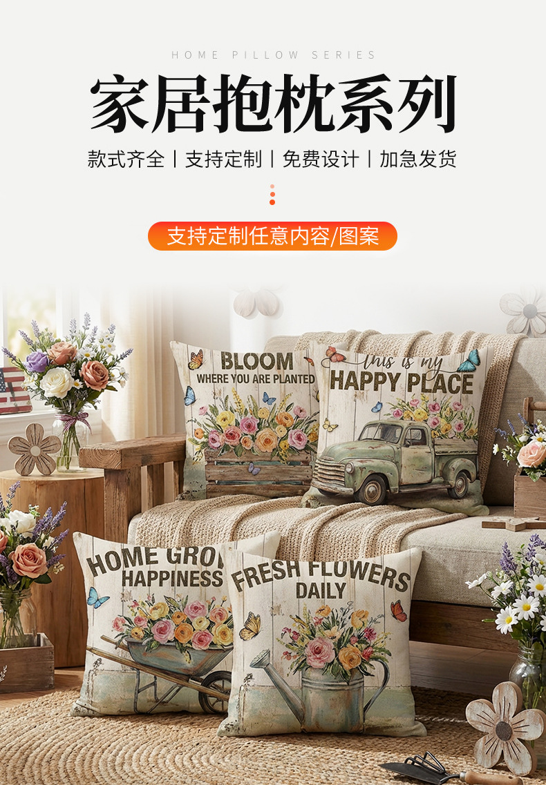 跨境亚马逊印花抱枕套美式乡村风沙发抱枕床头靠枕靠垫卧室抱枕套