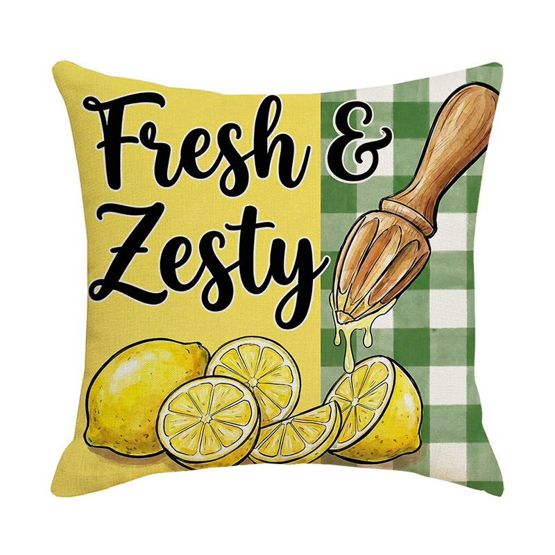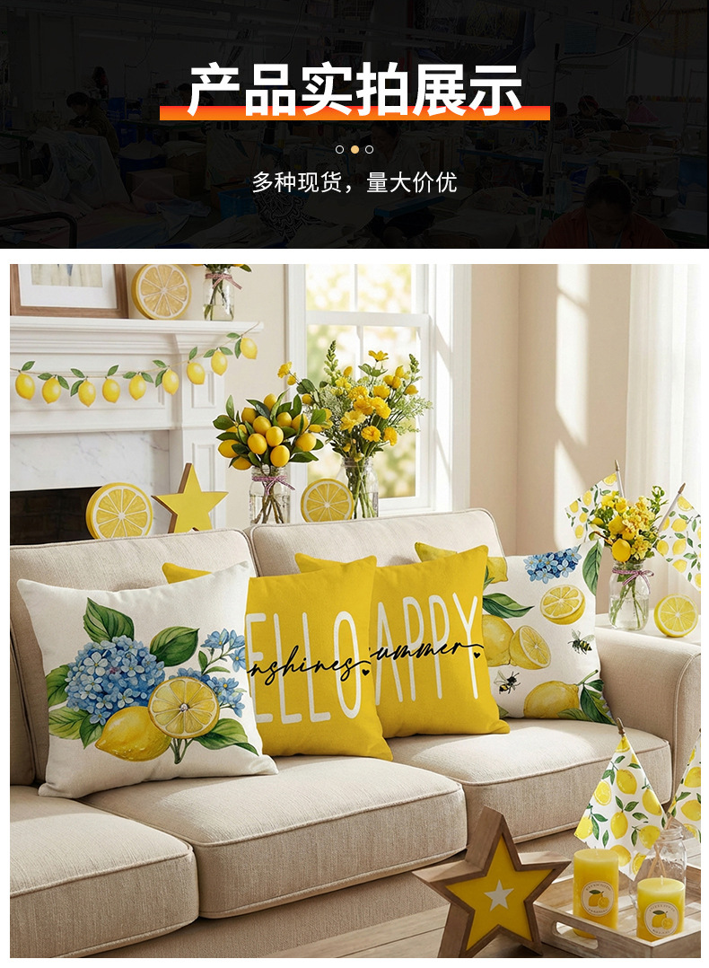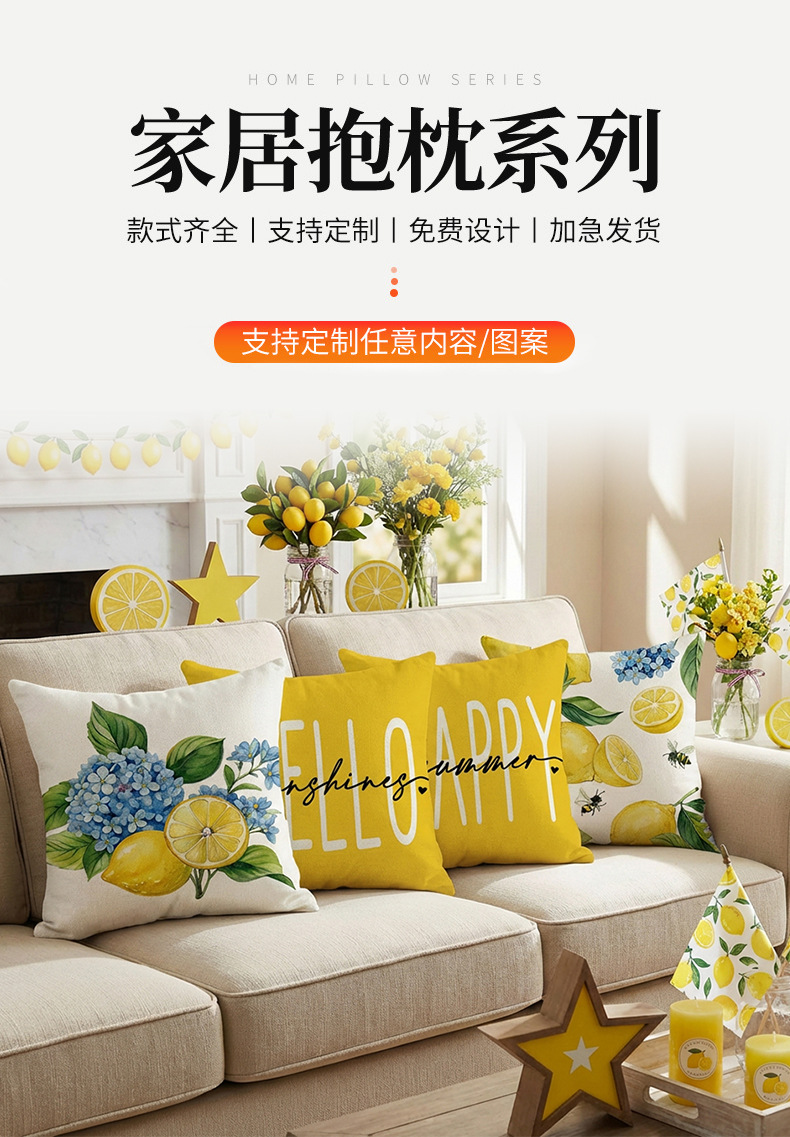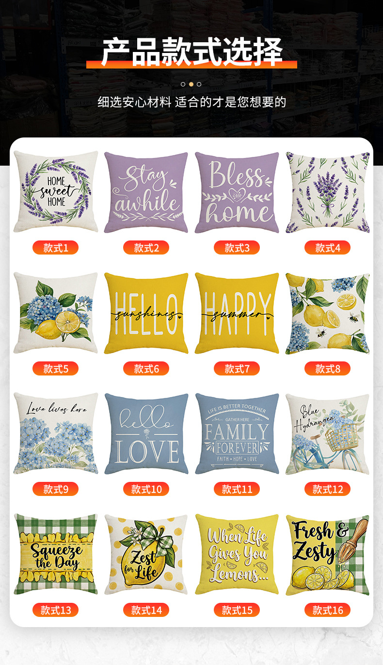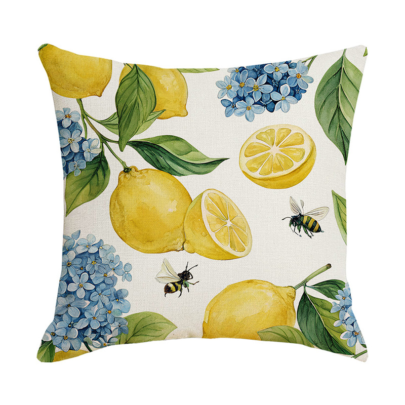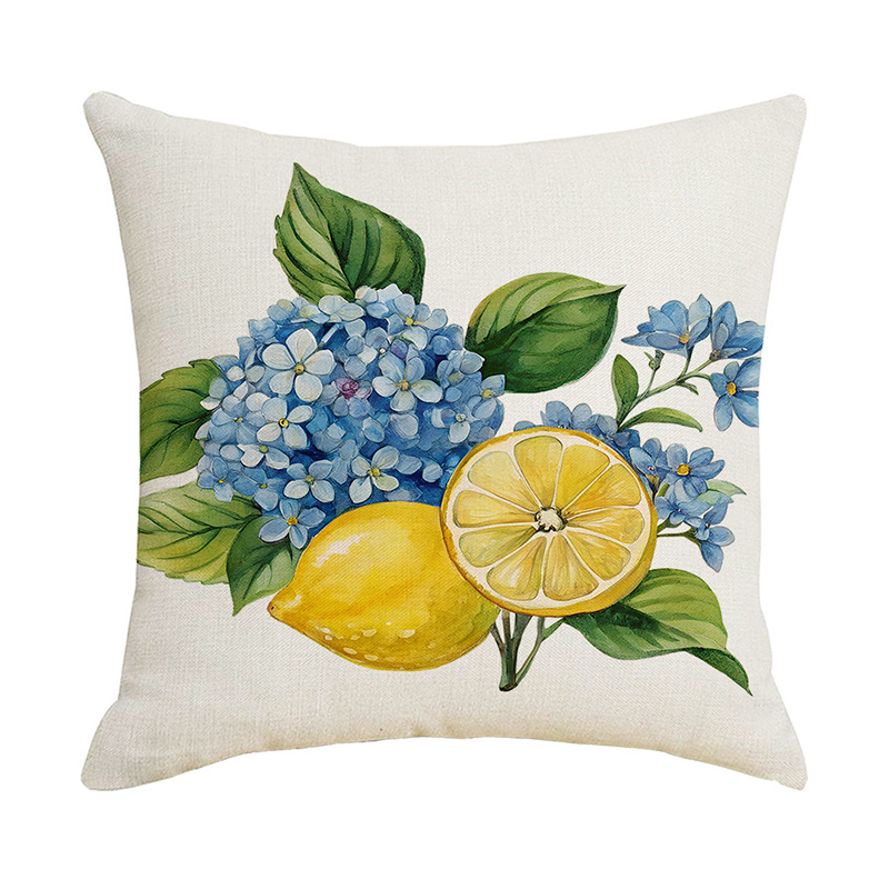 跨境清新水果派对抱枕套薰衣草花环沙发抱枕套柠檬花卉客厅靠枕套