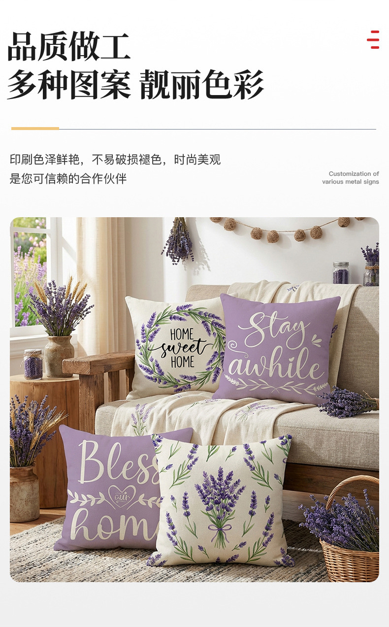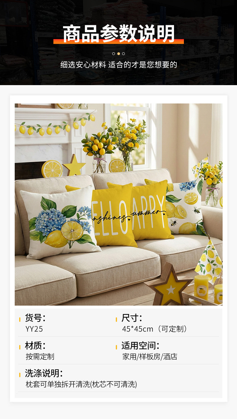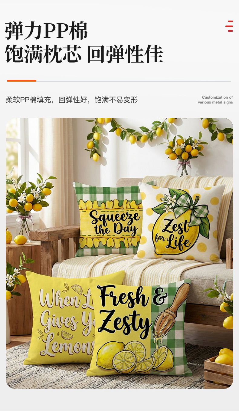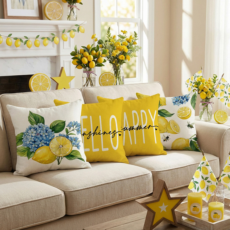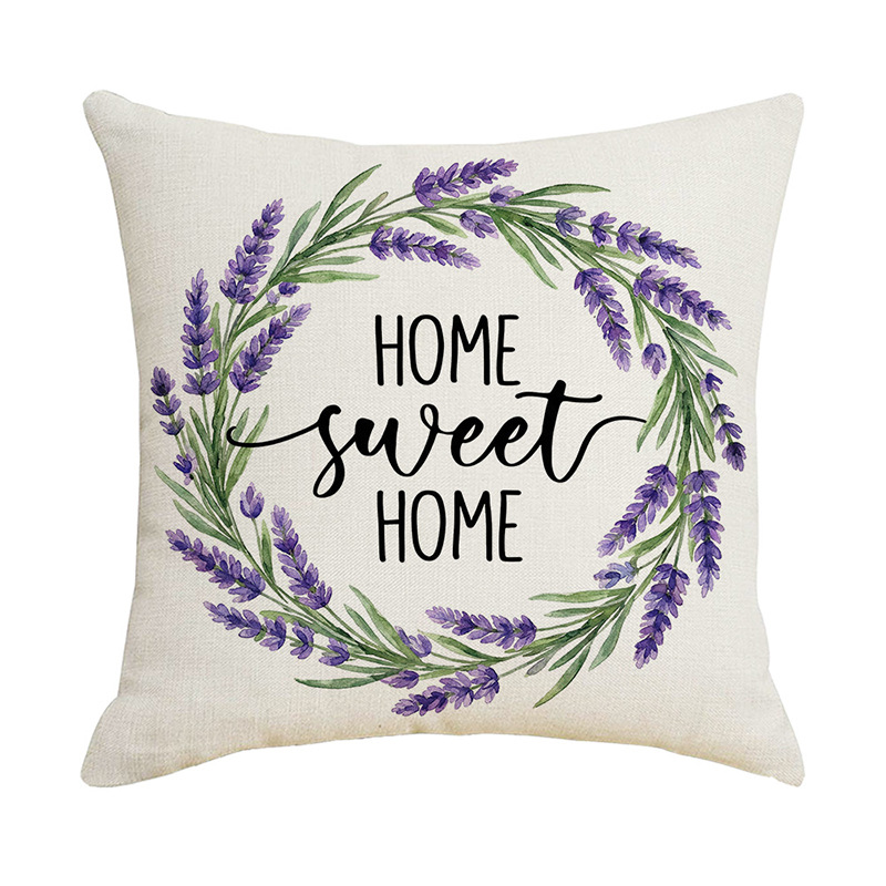 跨境清新水果派对抱枕套薰衣草花环沙发抱枕套柠檬花卉客厅靠枕套