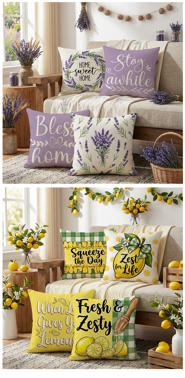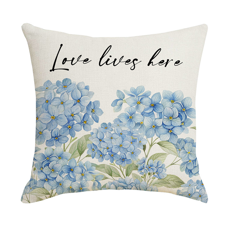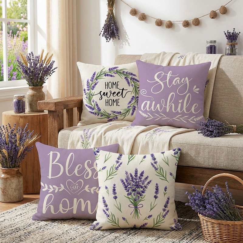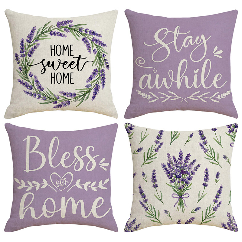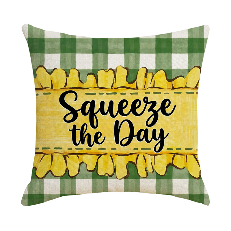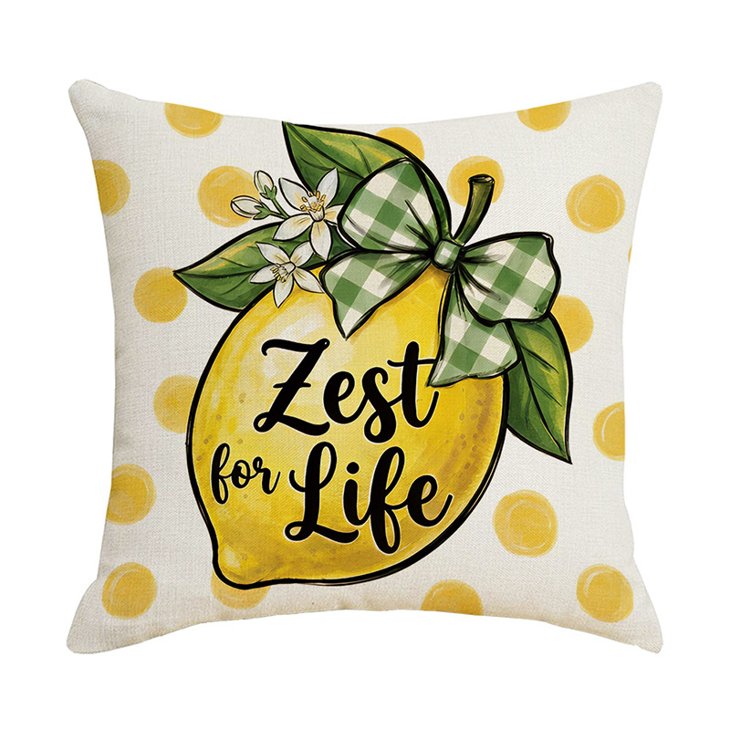 跨境清新水果派对抱枕套薰衣草花环沙发抱枕套柠檬花卉客厅靠枕套