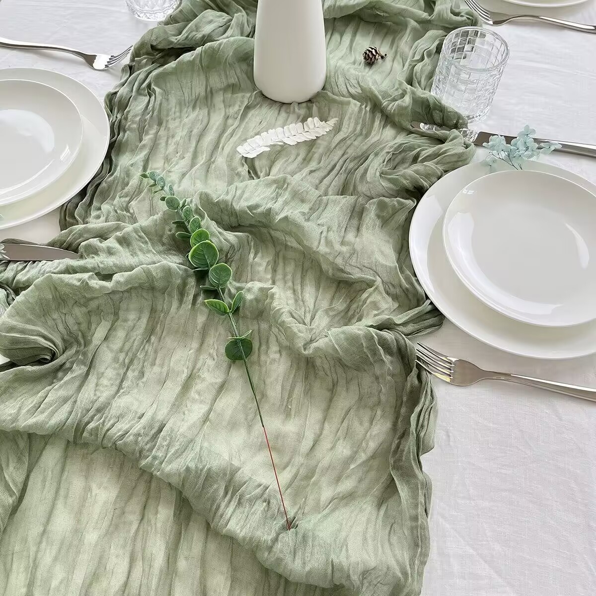 北欧风巴厘纱褶皱桌旗邹布跨境婚礼派对拍照桌布麻花褶皱餐巾口布