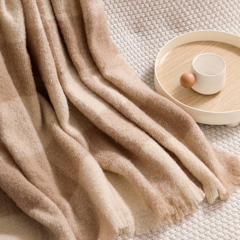 纯色北欧风针织盖毯毛毯装饰毯圈圈纱毯一件代发沙发休闲盖毯搭巾