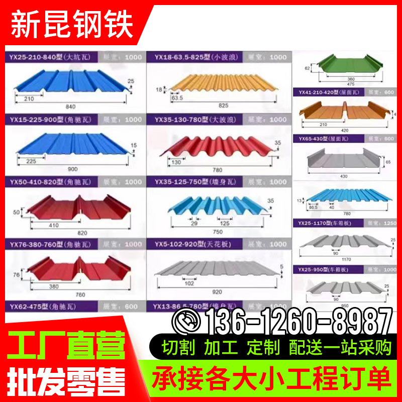 现货彩钢瓦厂房屋顶墙面波浪瓦工地围挡铁皮隔墙板抗压可切割抗震