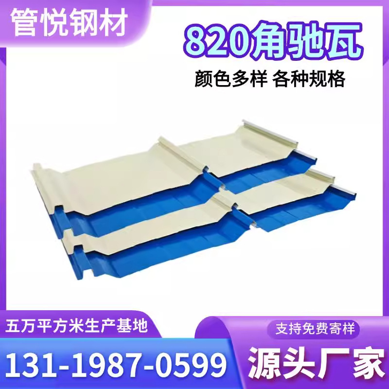 彩钢瓦广东批发厂房钢结构屋顶瓦压型铁皮瓦820型光伏角驰彩钢瓦