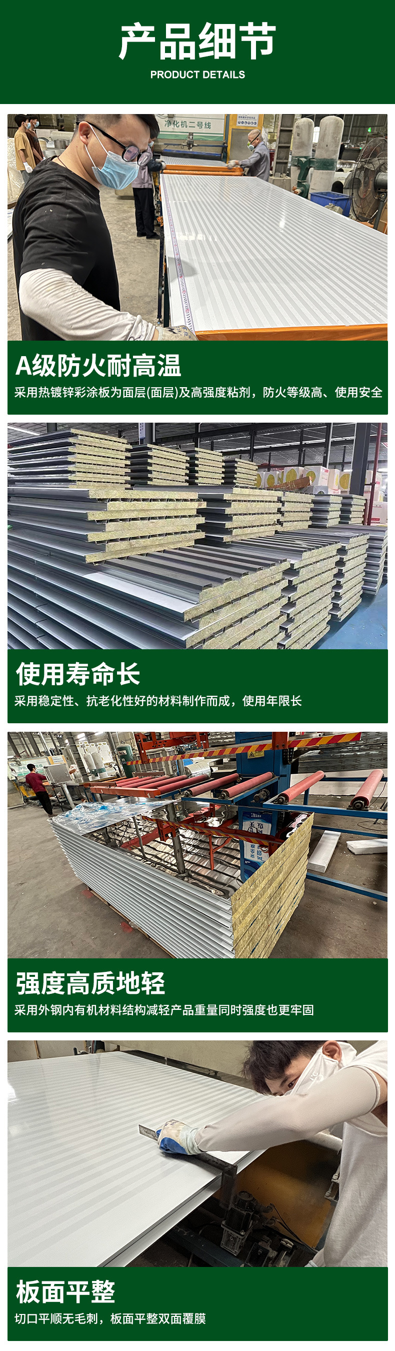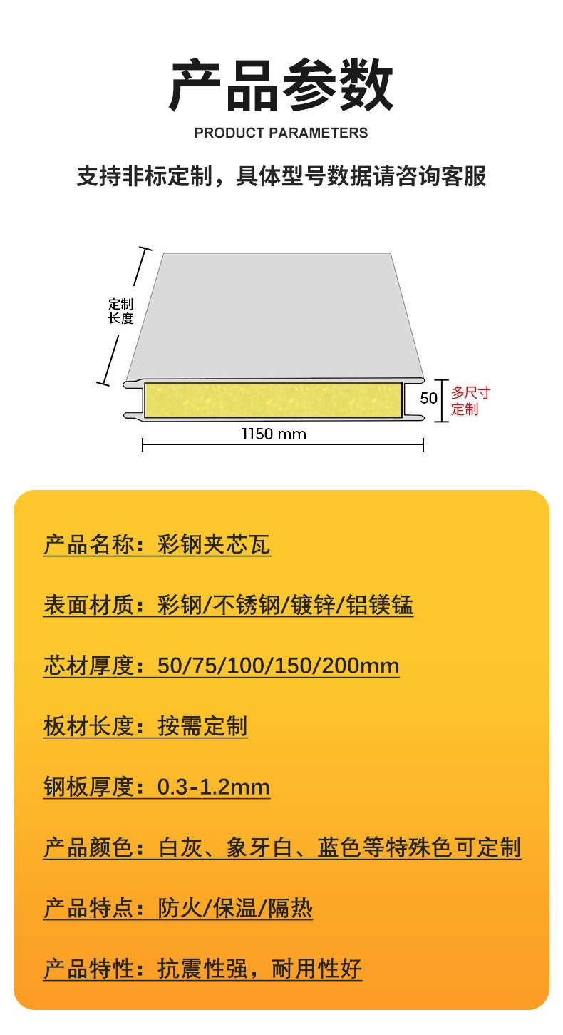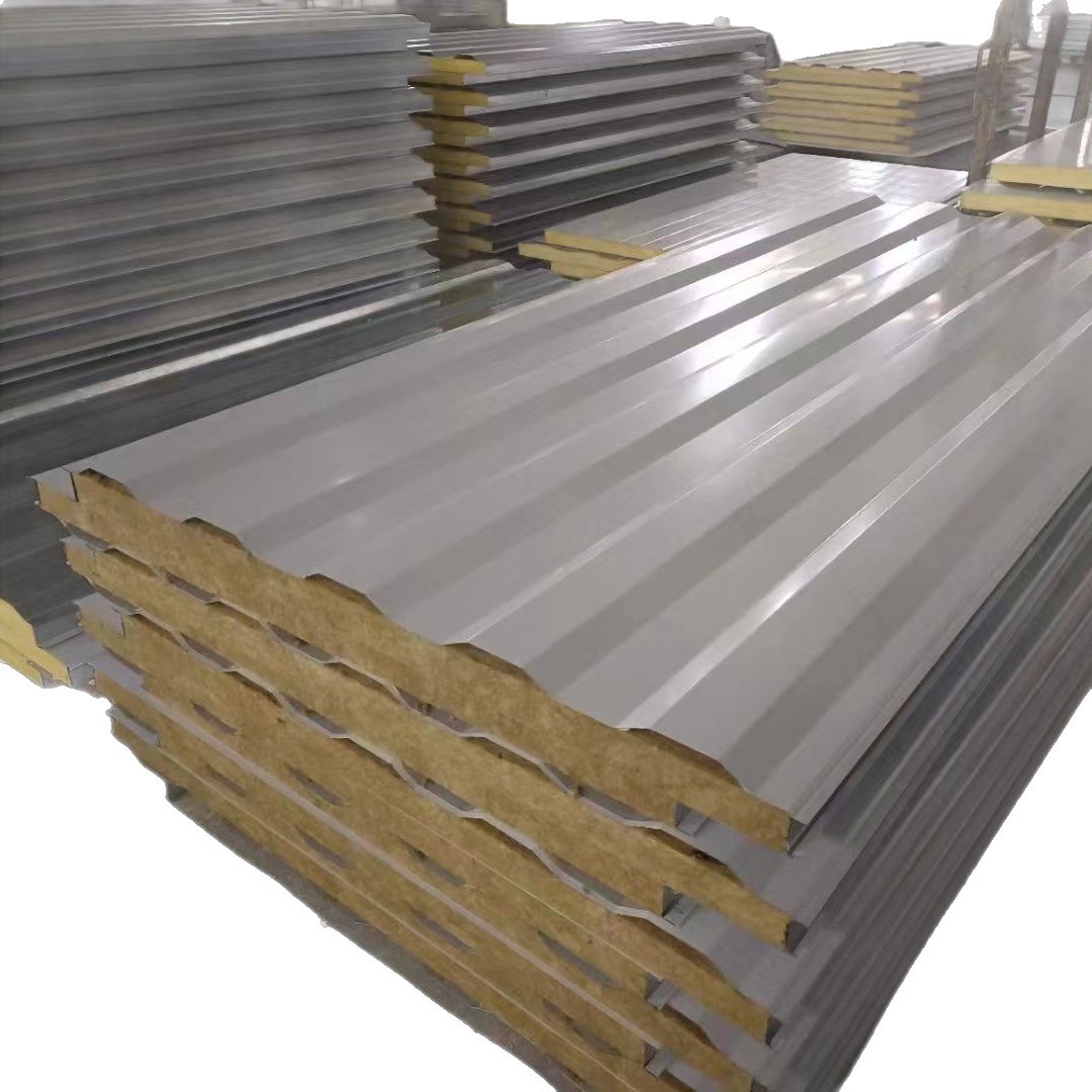 屋面彩钢岩棉夹心瓦防火双层隔热100mm屋顶板室外专用复合瓦楞板