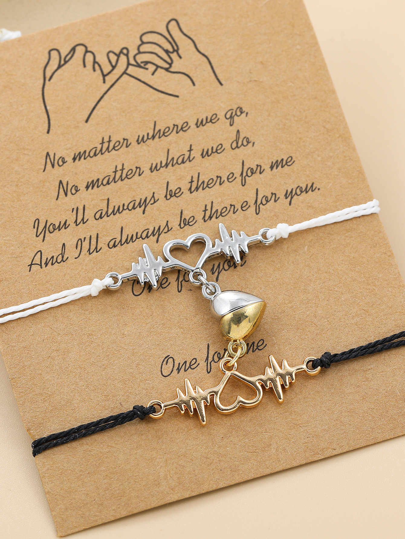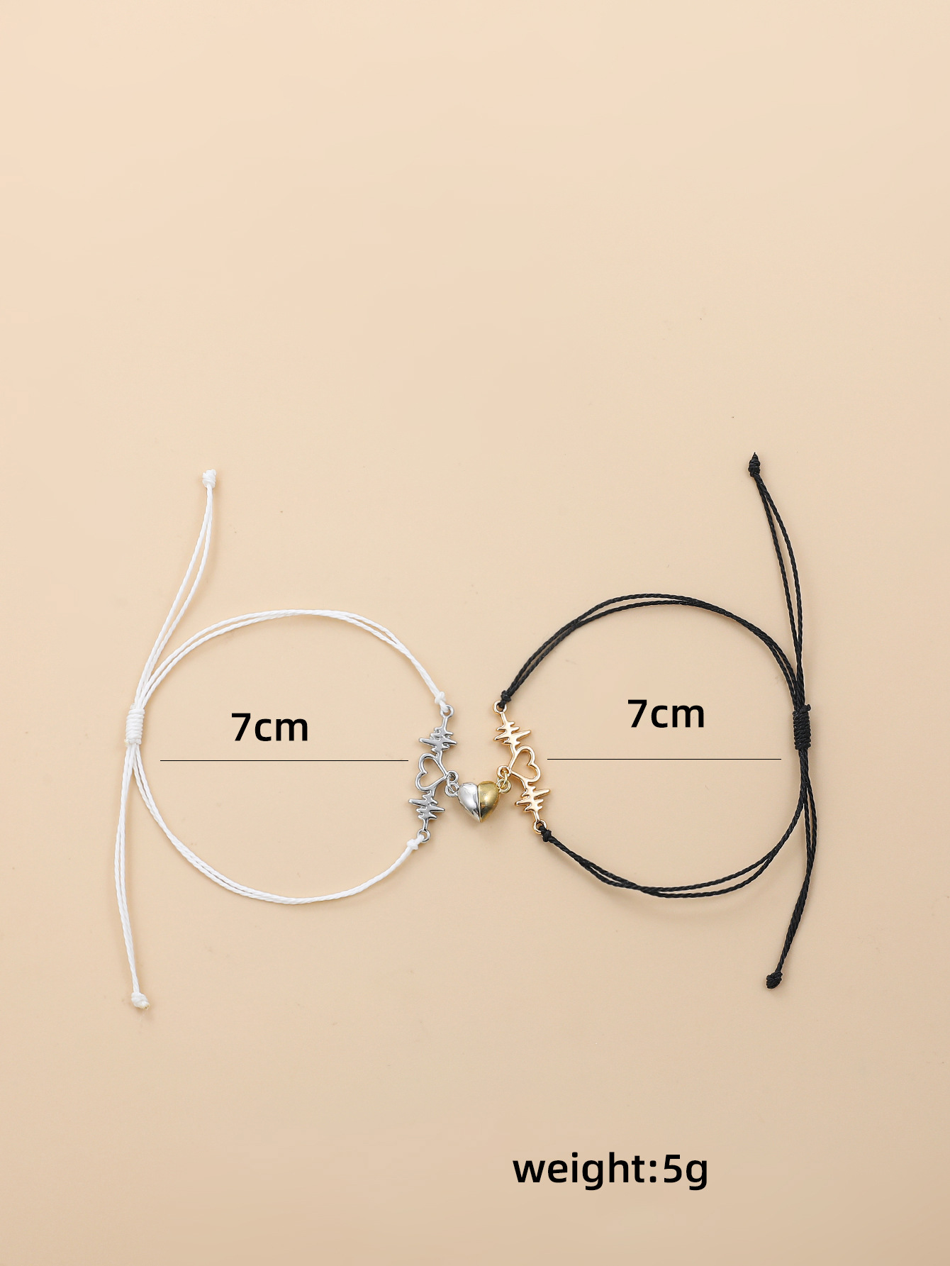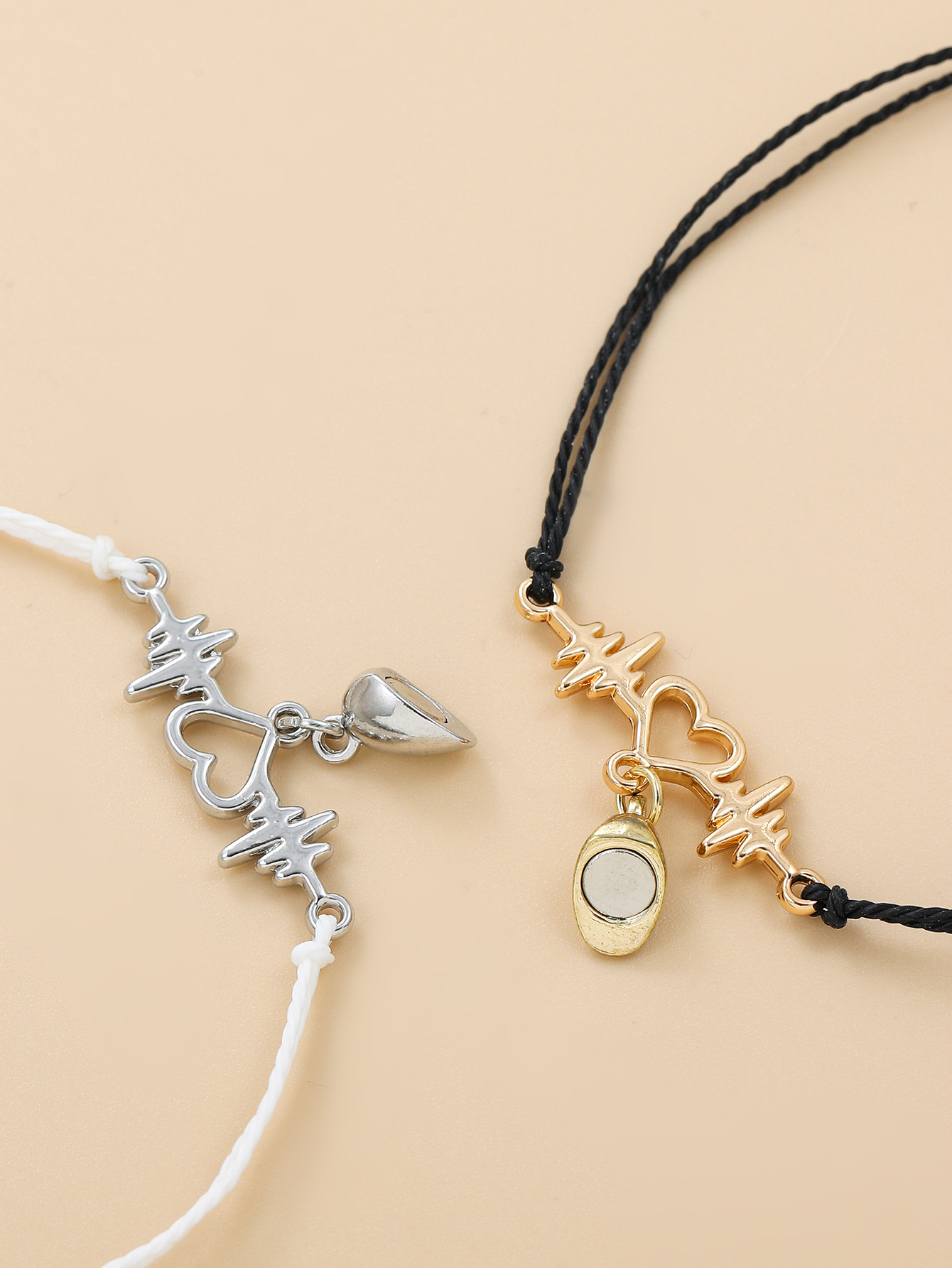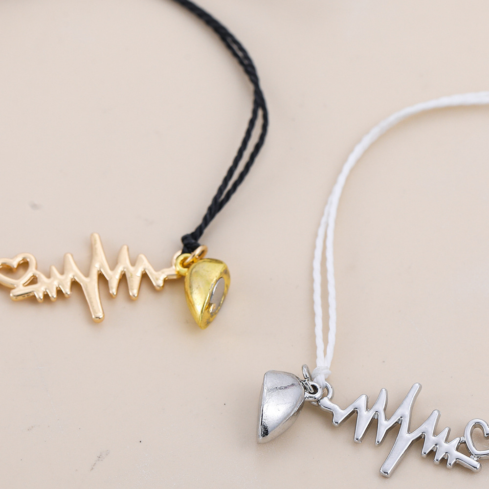 欧美跨境磁铁心电图情侣闺蜜手链套装黑白编织爱心磁石吸铁石手绳