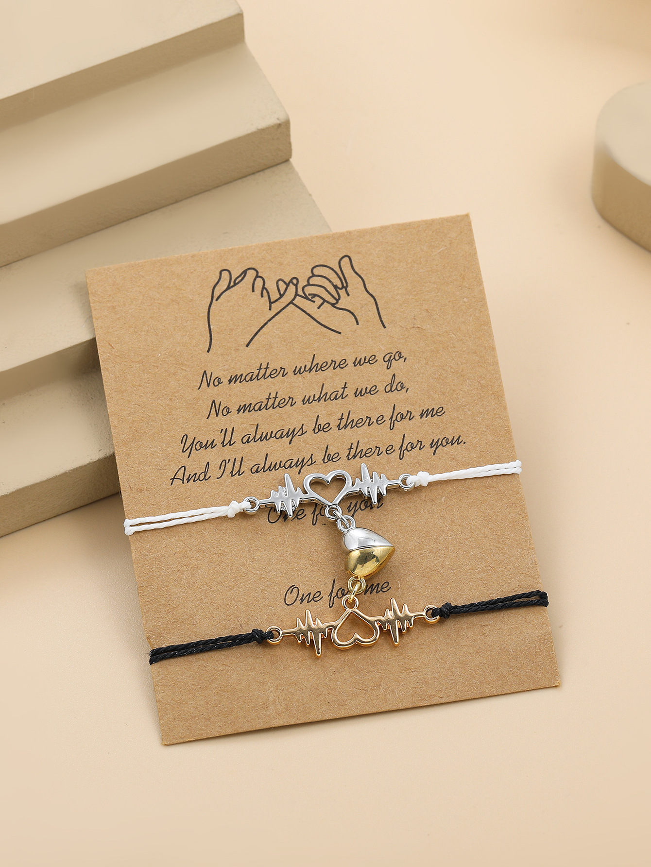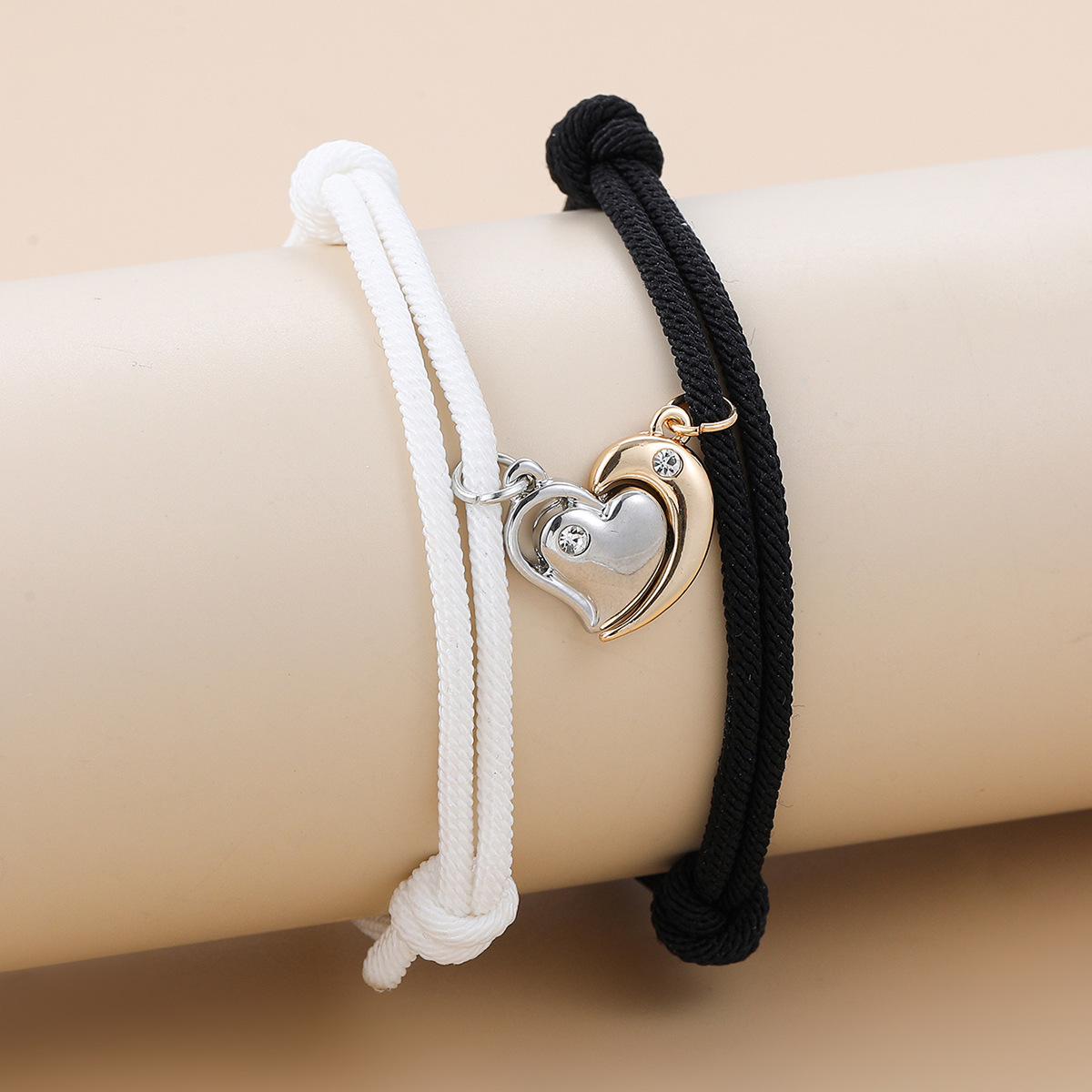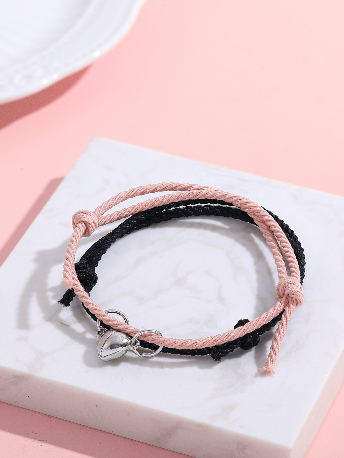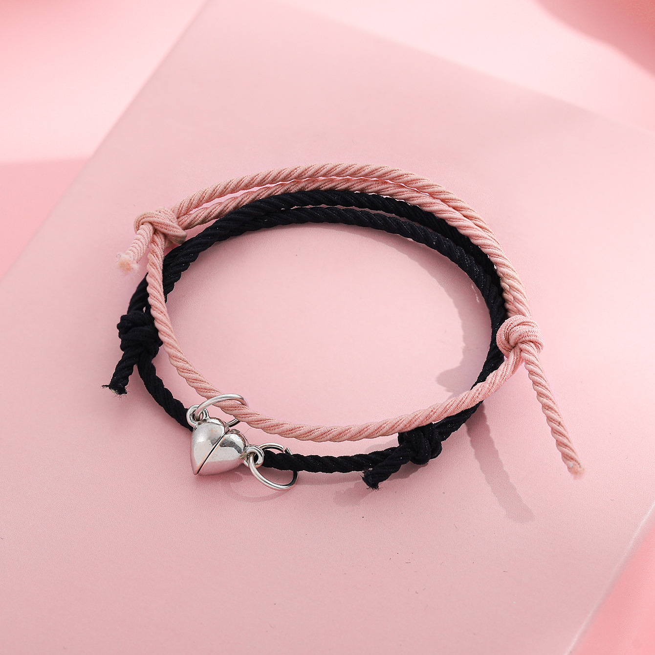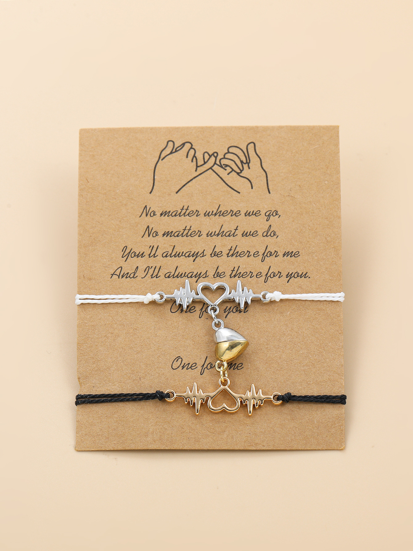 欧美跨境磁铁心电图情侣闺蜜手链套装黑白编织爱心磁石吸铁石手绳