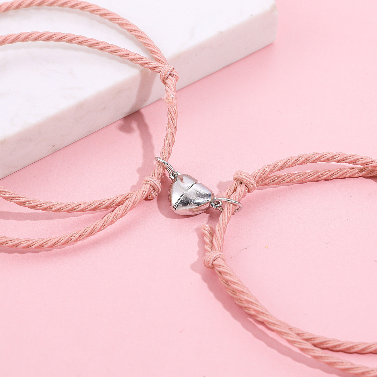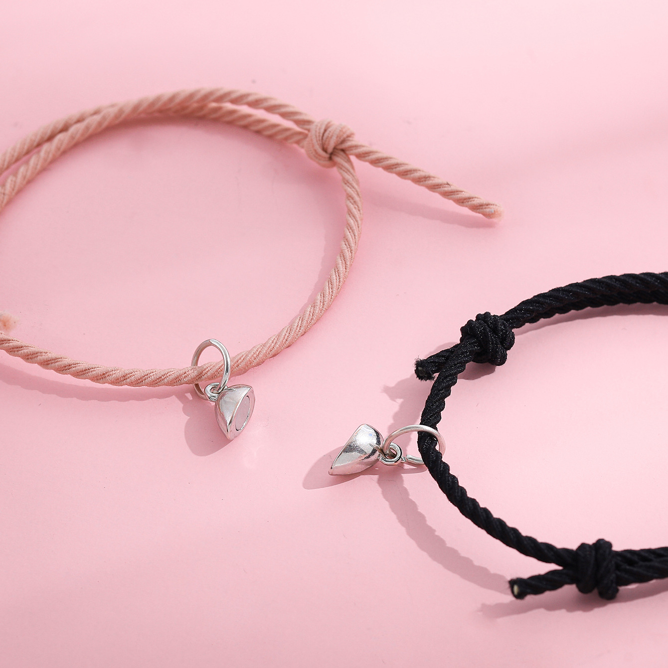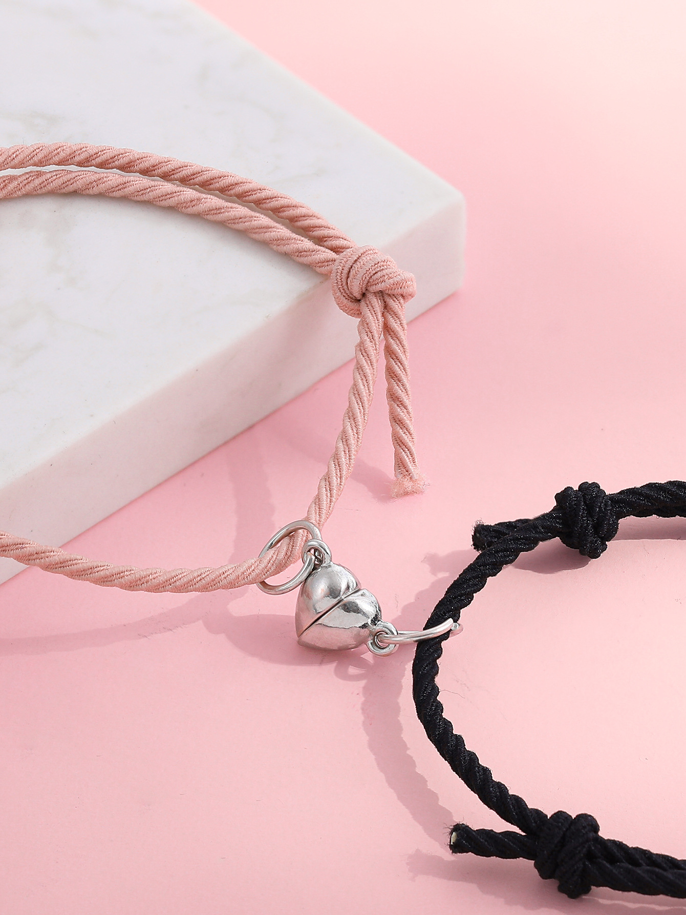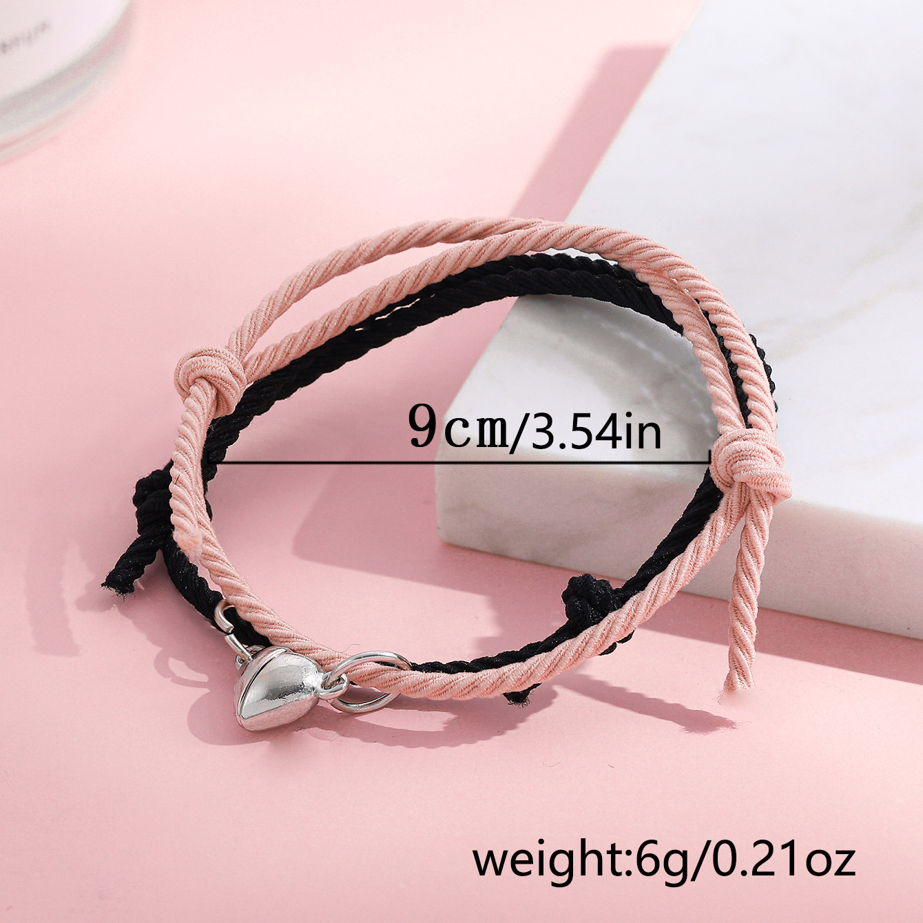 欧美跨境磁铁心电图情侣闺蜜手链套装黑白编织爱心磁石吸铁石手绳