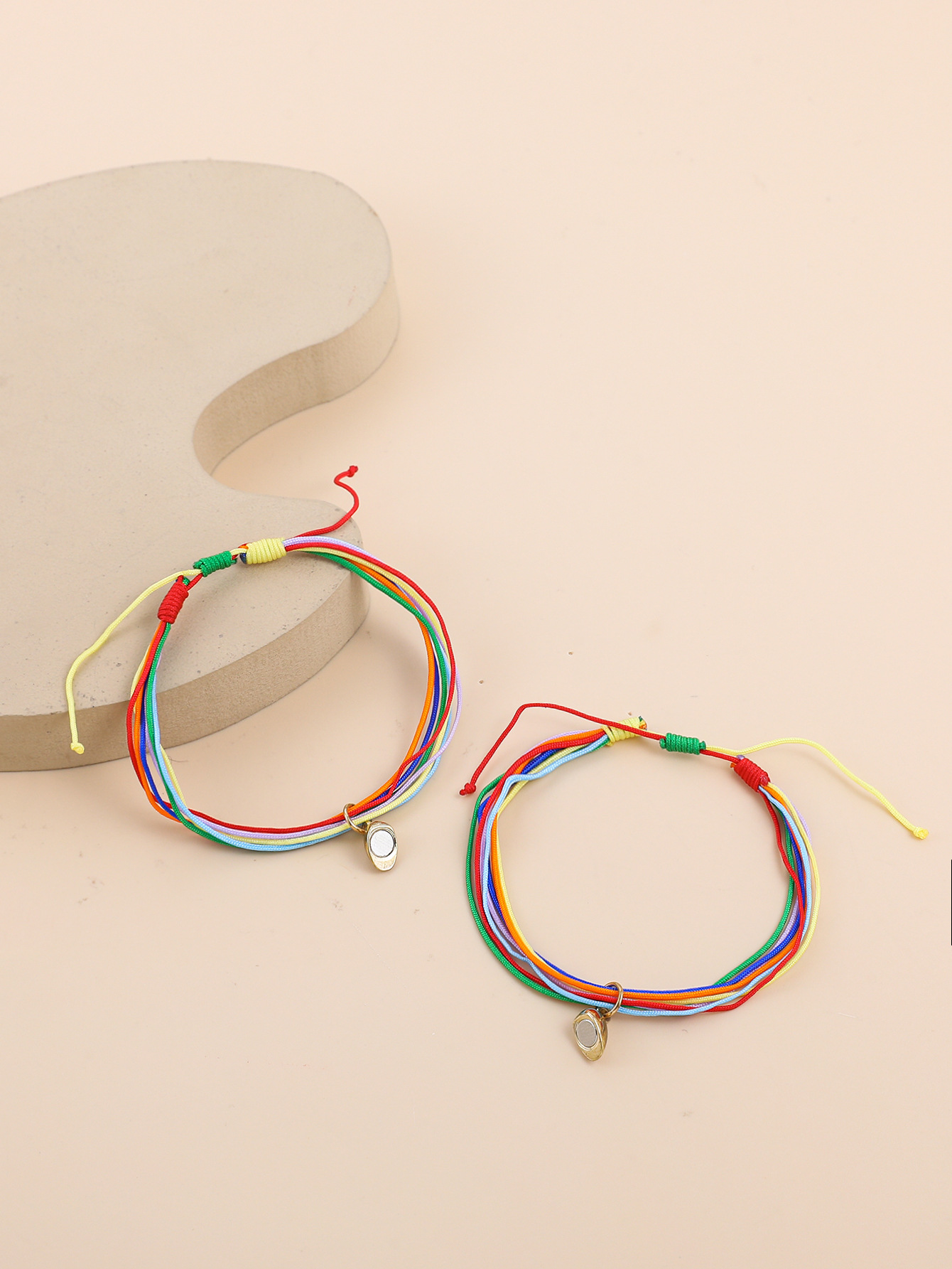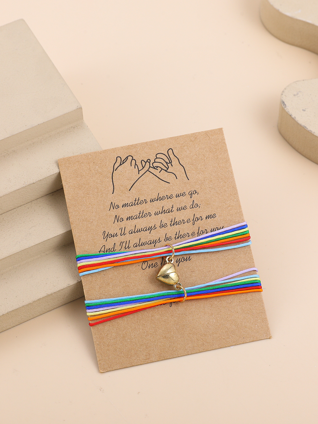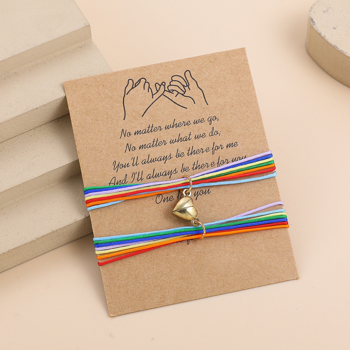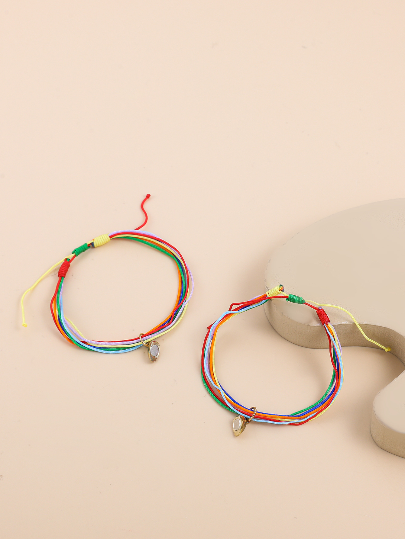 欧美跨境磁铁心电图情侣闺蜜手链套装黑白编织爱心磁石吸铁石手绳
