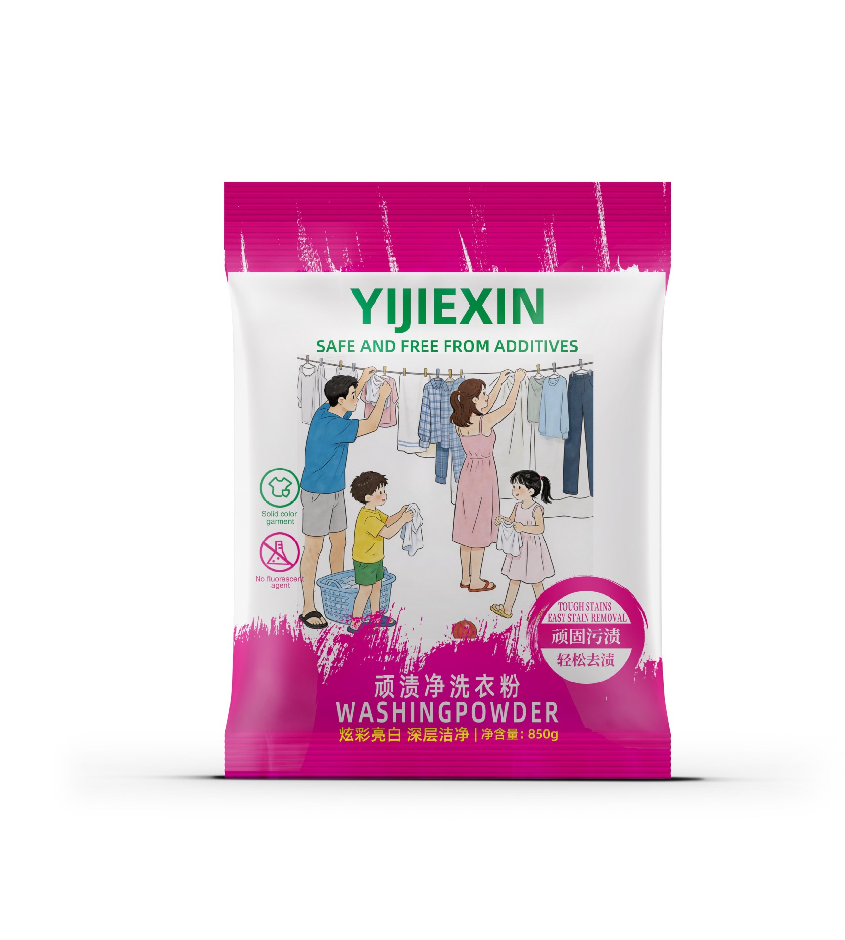 公仔顽渍净洗衣粉免手搓去污渍除螨3倍洁净去渍家用去黄批发