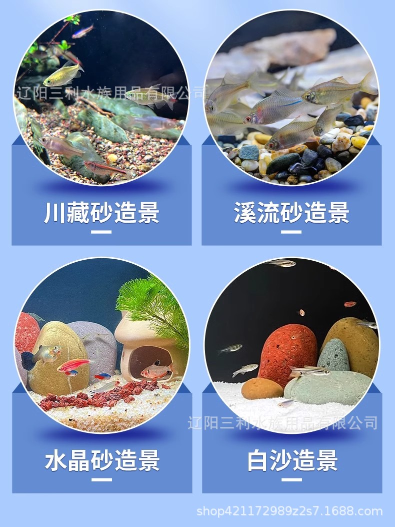 鱼缸造景底部砂石装饰摆件火山溪流石头水晶沙子白色白沙蓝乌龟沙