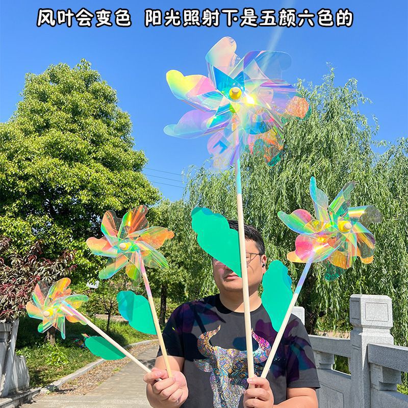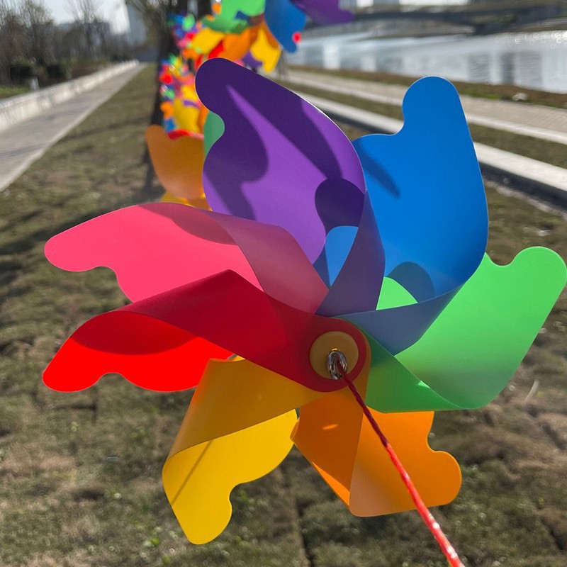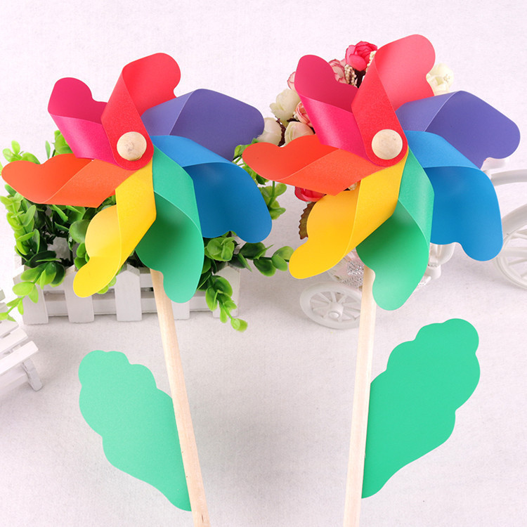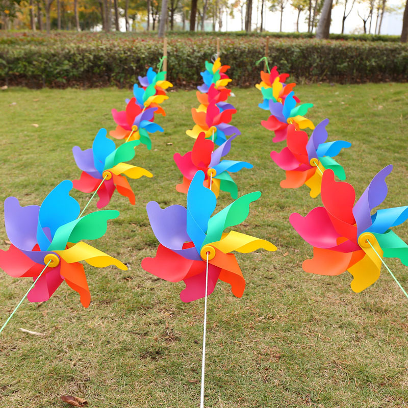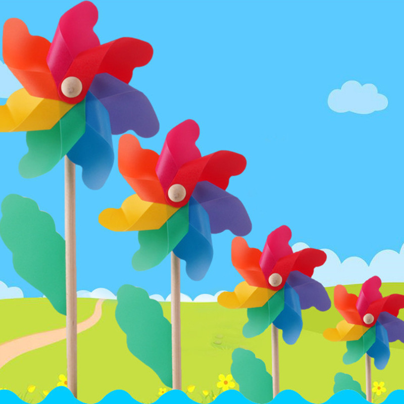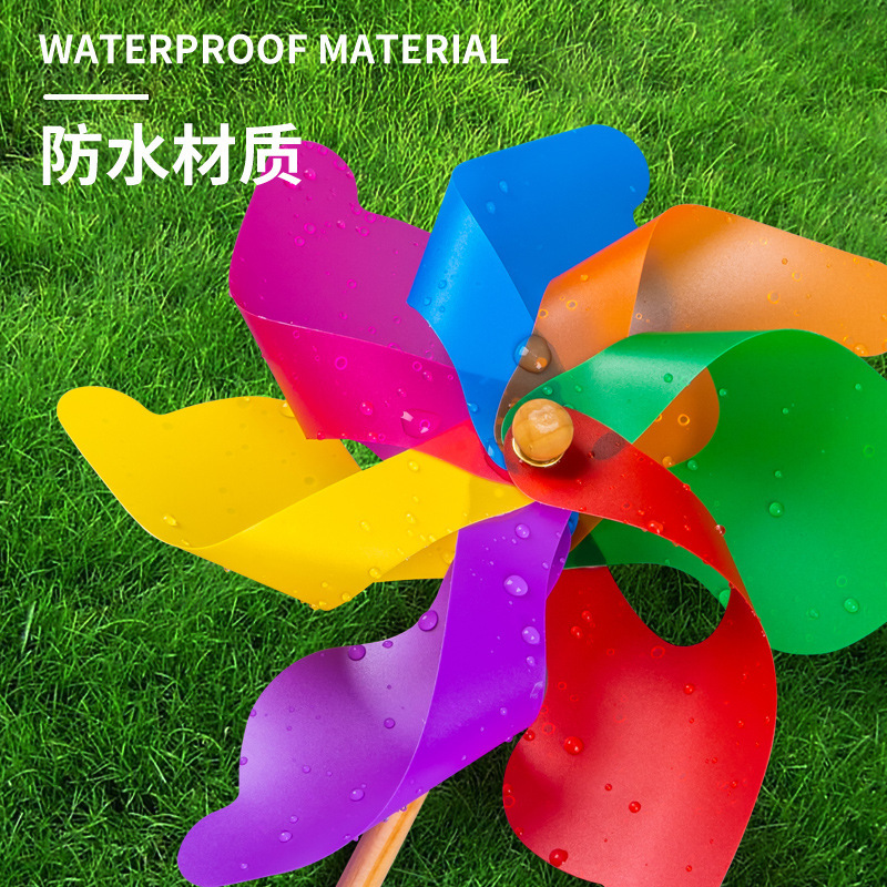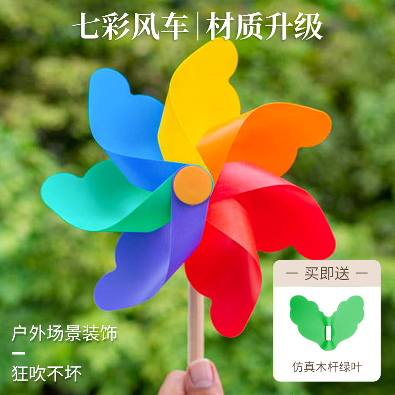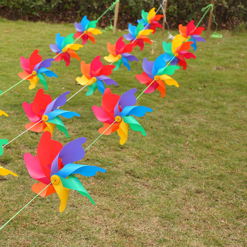 七彩风车装饰木杆旋转户外野餐场景布置幼儿园儿童玩具拍照道具