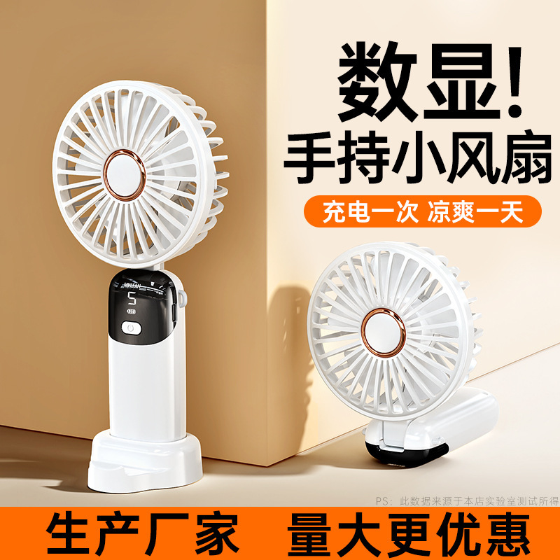 手持风扇迷你便携式折叠小风扇数显usb充电桌面小电风扇批发