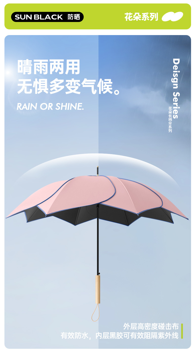 创意花朵雨伞长柄伞高颜值晴雨两用伞文艺防晒遮阳太阳伞直杆伞
