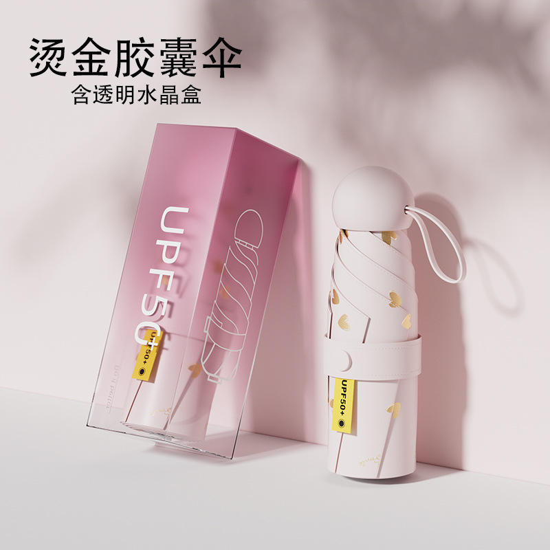 新款烫金胶囊伞太阳伞防晒防紫外线遮阳雨伞女晴雨两用可批发定制