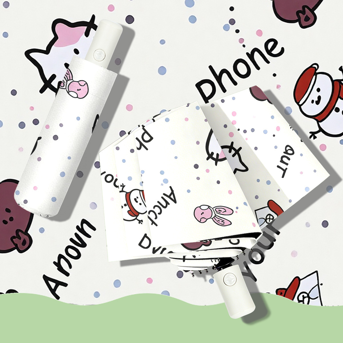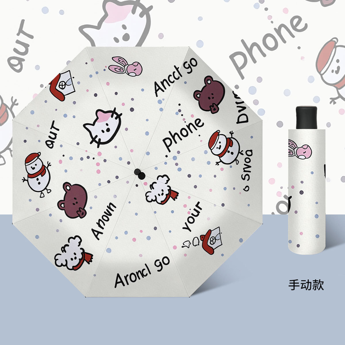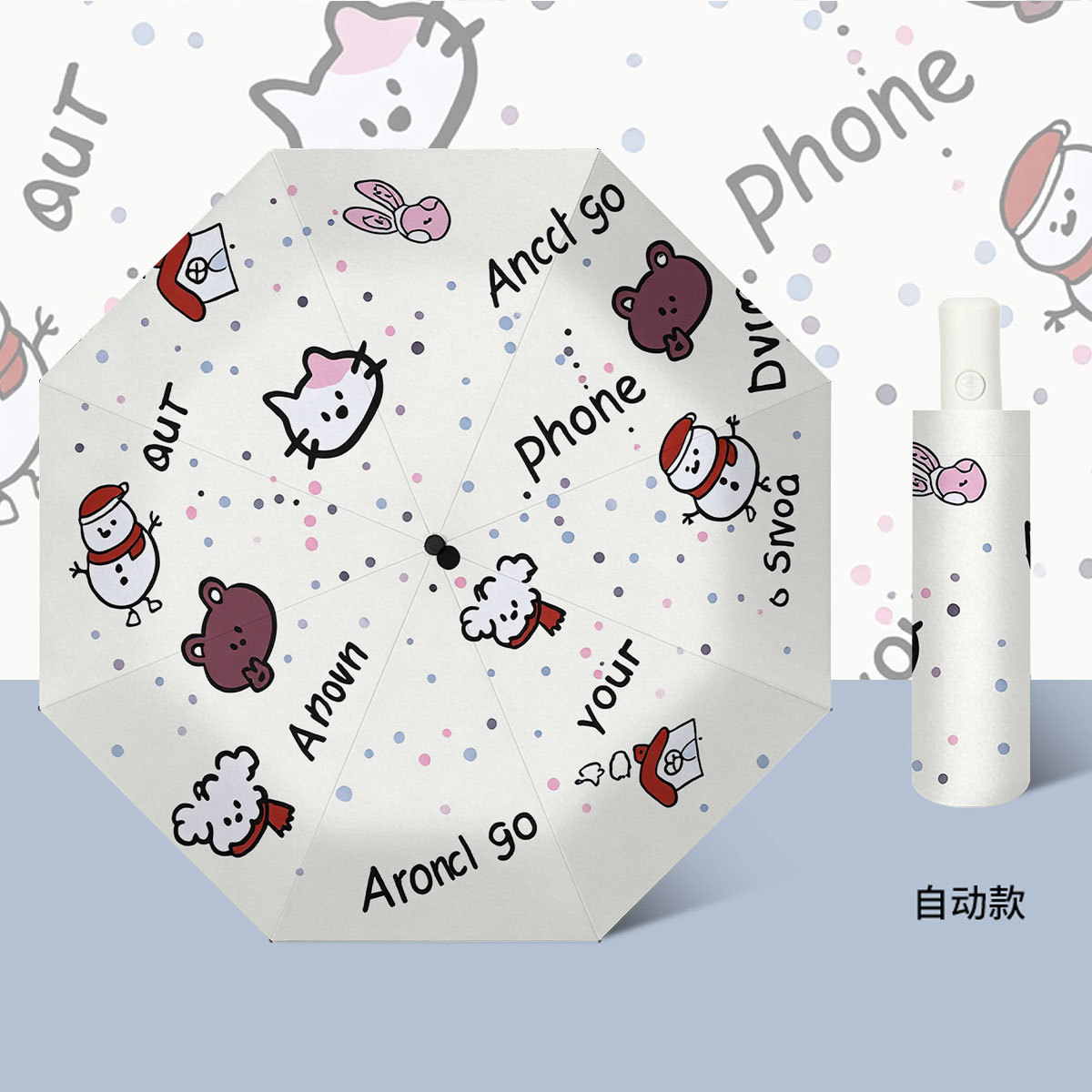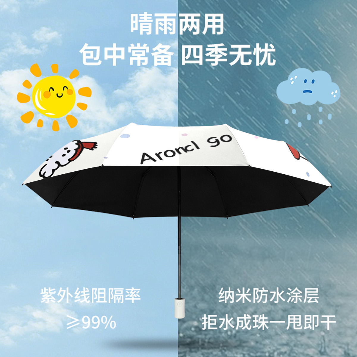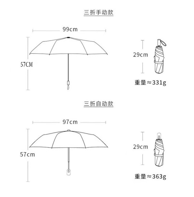 批发三折自动晴雨伞卡通数码折叠伞黑胶防紫外线防晒遮阳太阳伞