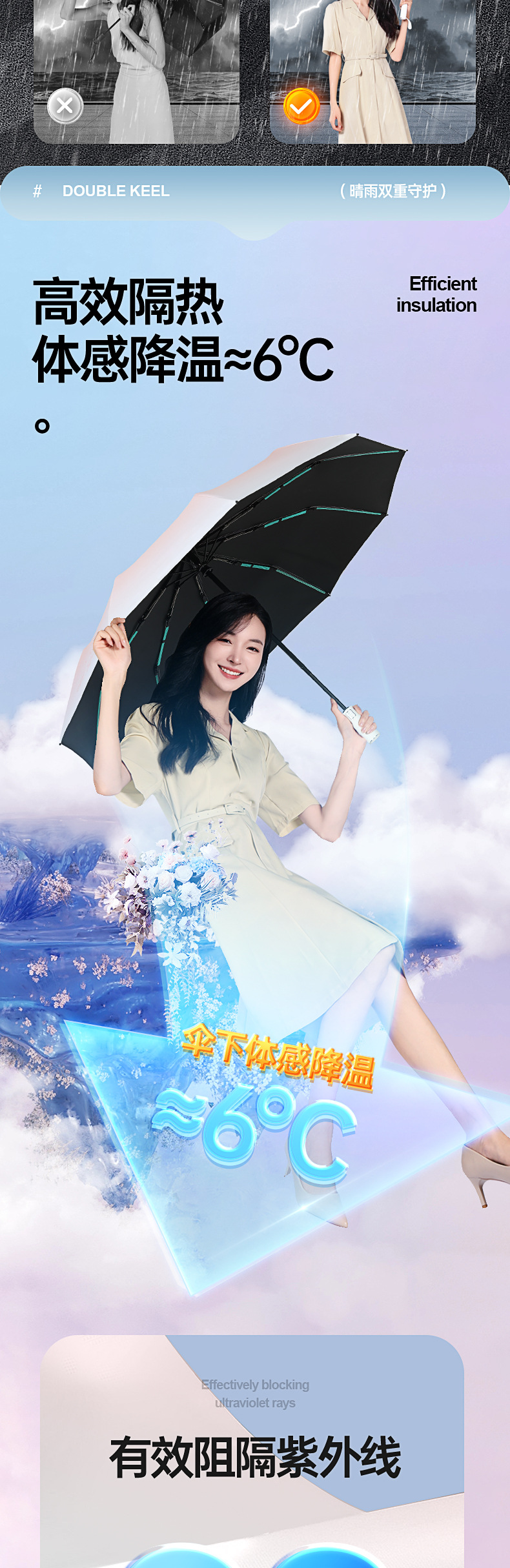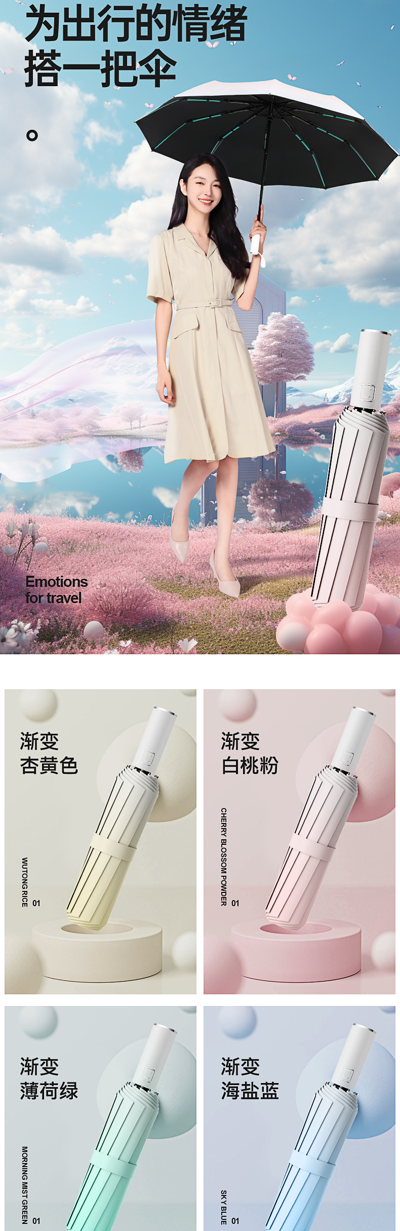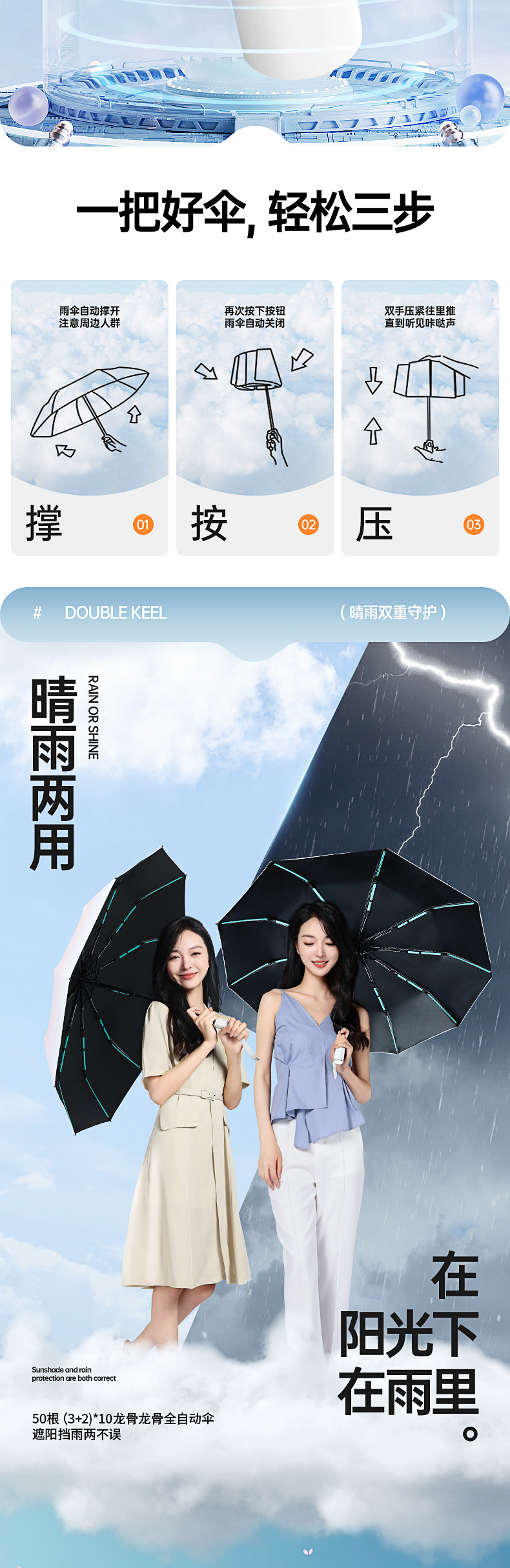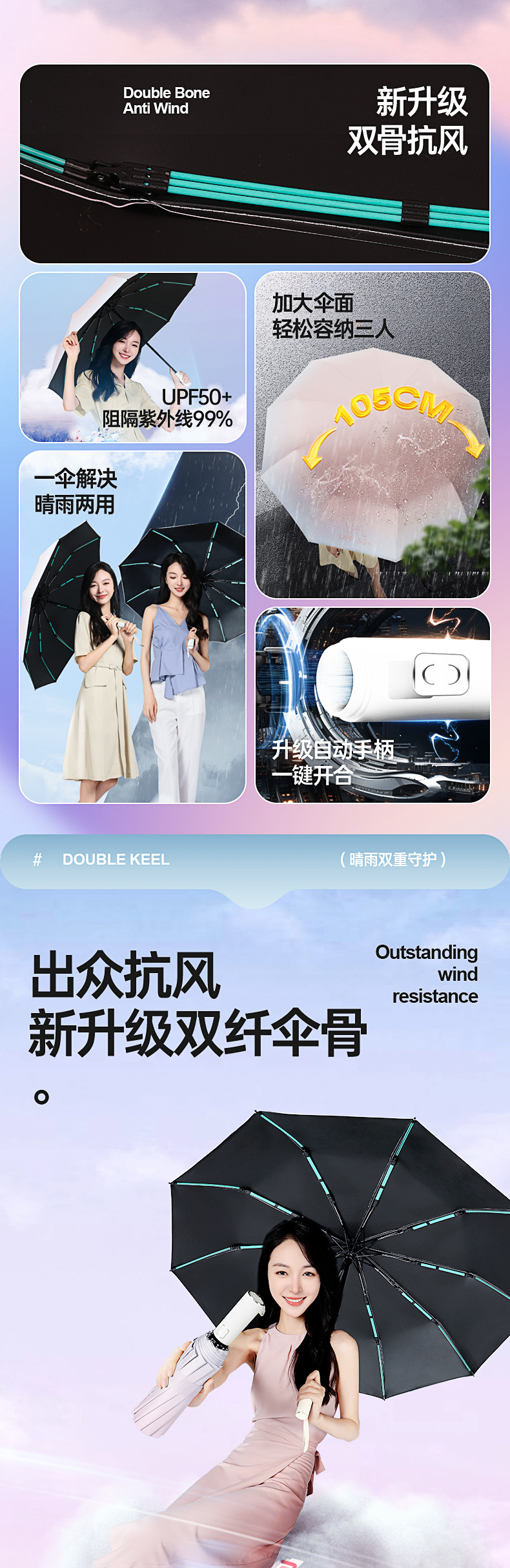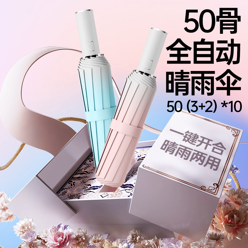 全自动加大折叠雨伞渐变晴雨两用伞男女防晒遮阳太阳logo定制雨伞