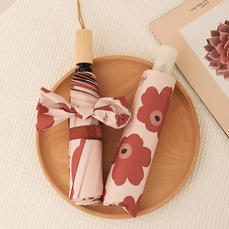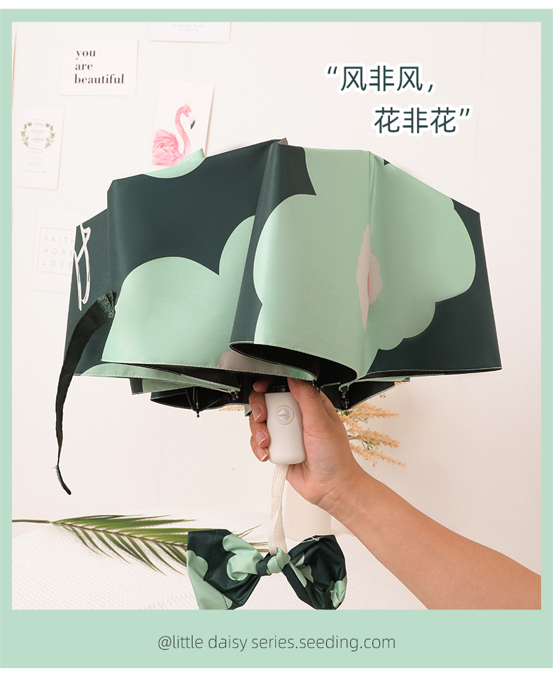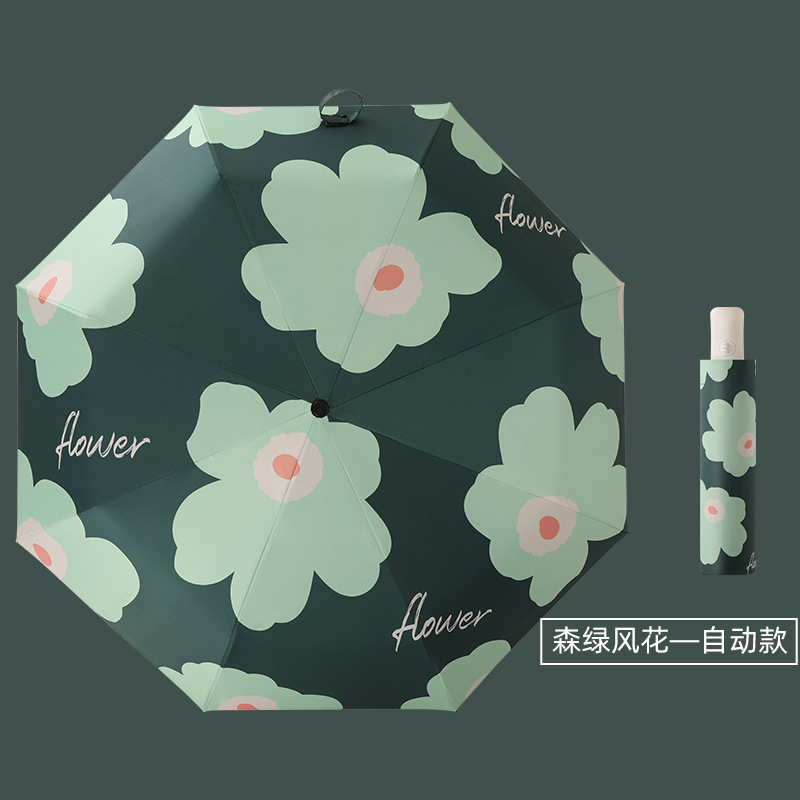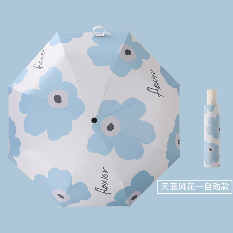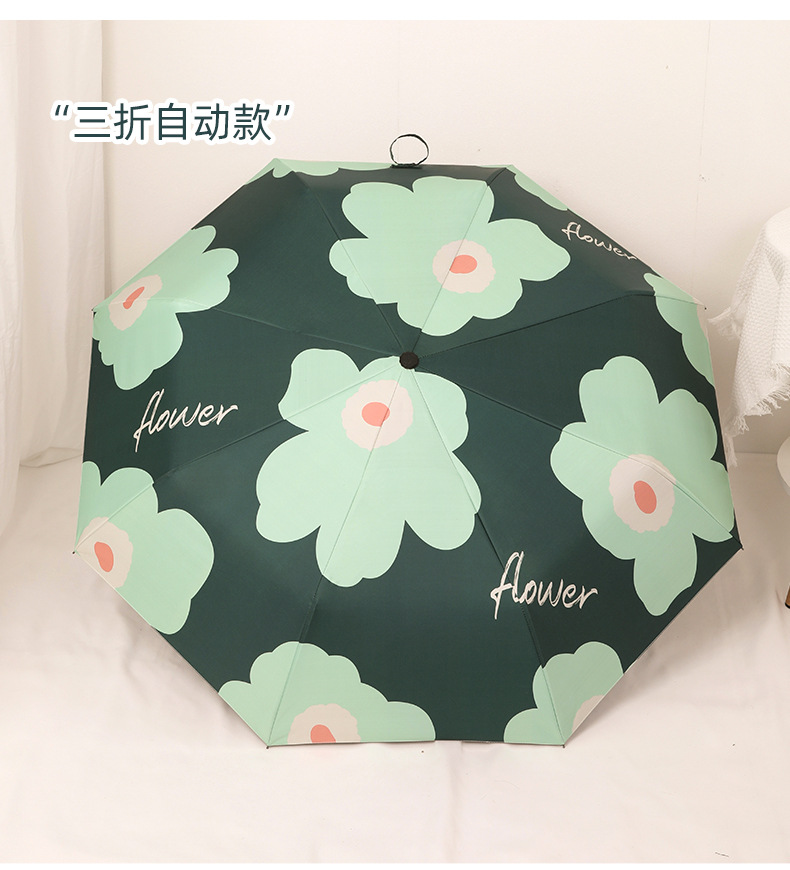 自动雨伞防紫外线太阳伞遮阳伞折叠伞小清新黑胶晴雨两用伞