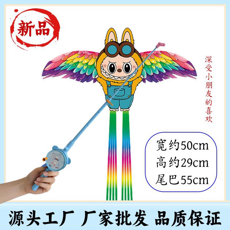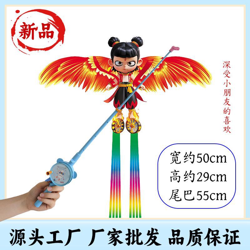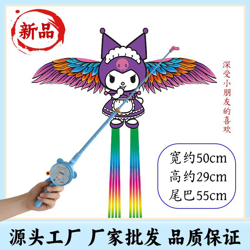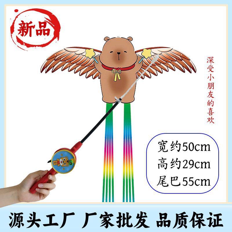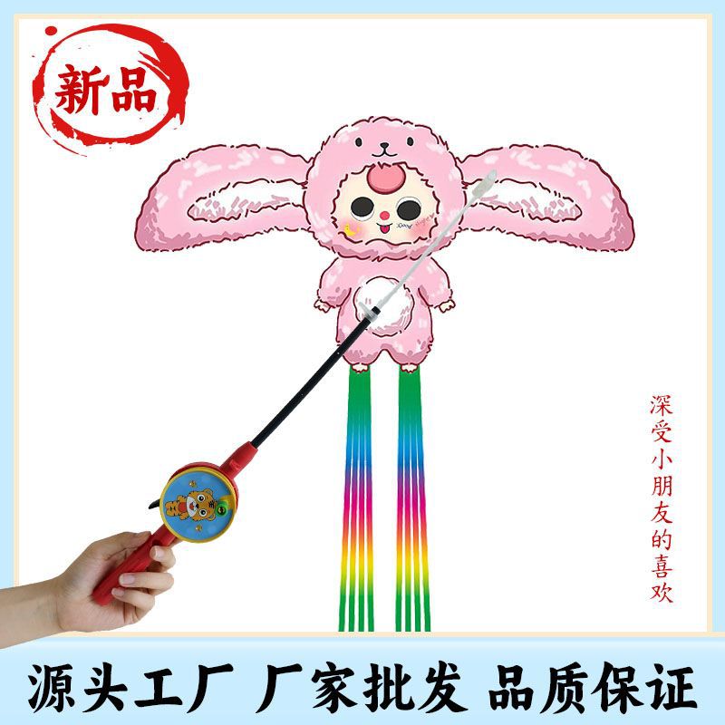 鱼竿风筝批发 新款儿童手持鱼竿动态风筝卡通仿真钓鱼竿地摊摆摊