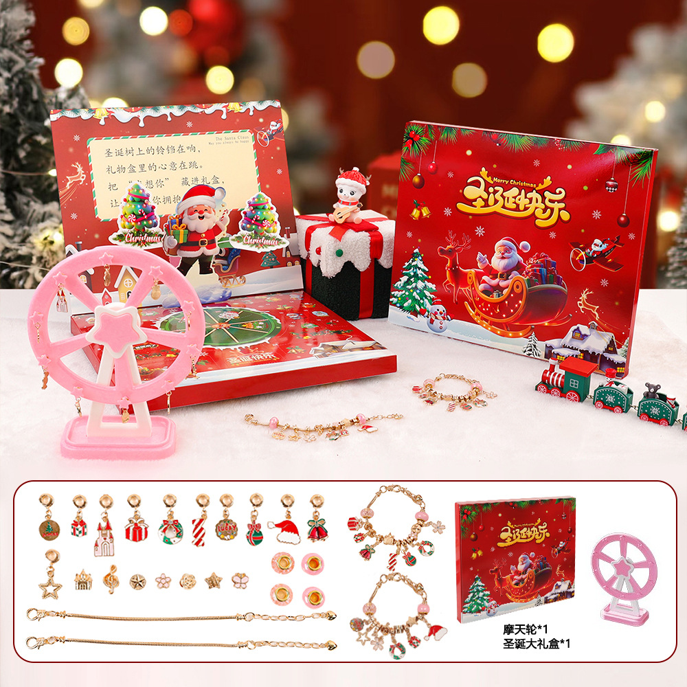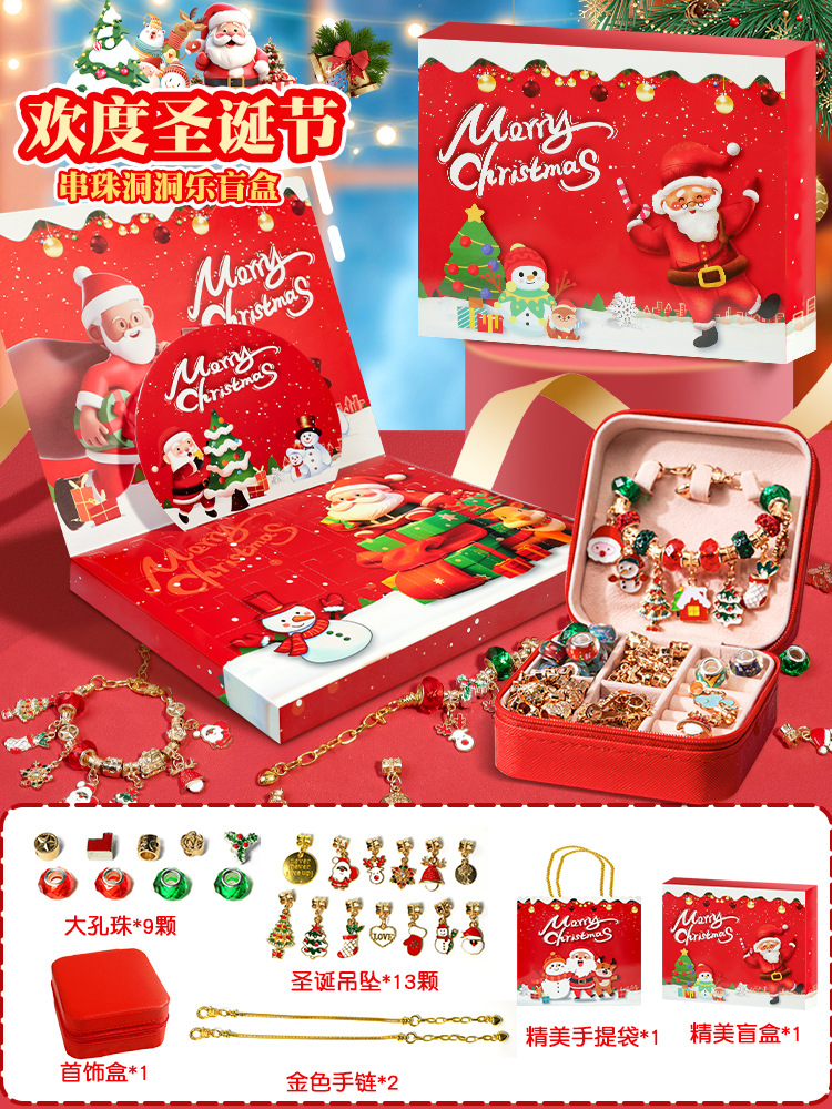 圣诞手链diy串珠盲盒合金饰品戳戳乐饰品儿童手链节日礼物批发