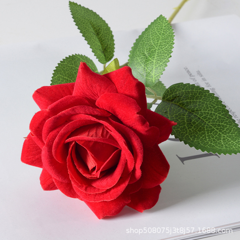 仿真花绒布玫瑰假花装饰婚庆用品人造花摆件情人节礼物厂家批
