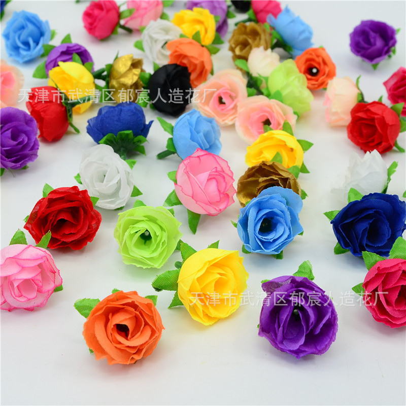 仿真玫瑰花苞批发喜糖盒伴手礼装饰小玫瑰花蕾胸花头饰花绢布假花