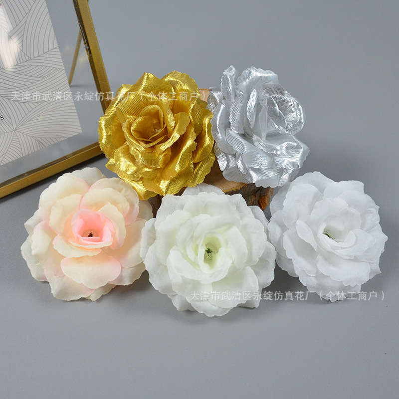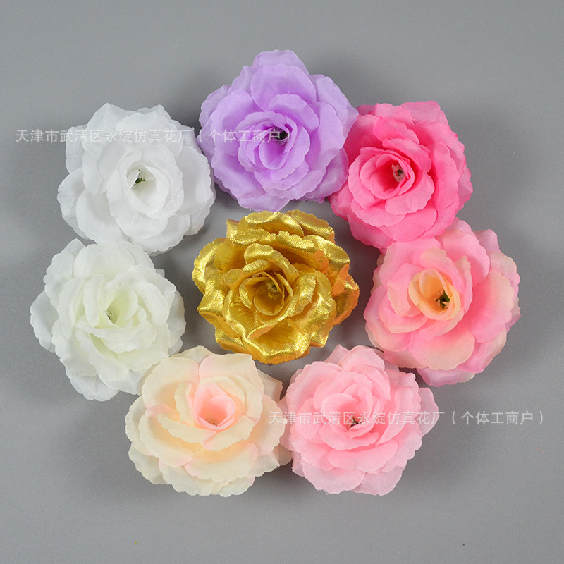 仿真花8CM玫瑰花朵婚礼花墙插花装饰假花簪花头饰布景装饰玫瑰花