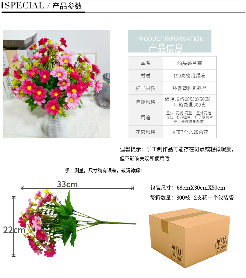 仿真花假花28头跳兰菊小雏菊装饰花绢花塑料花布花户外工程小野菊