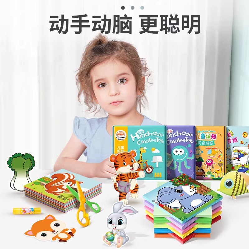 跨境批发剪纸儿童手工幼儿园立体折纸3岁diy制作材料套装趣味剪纸