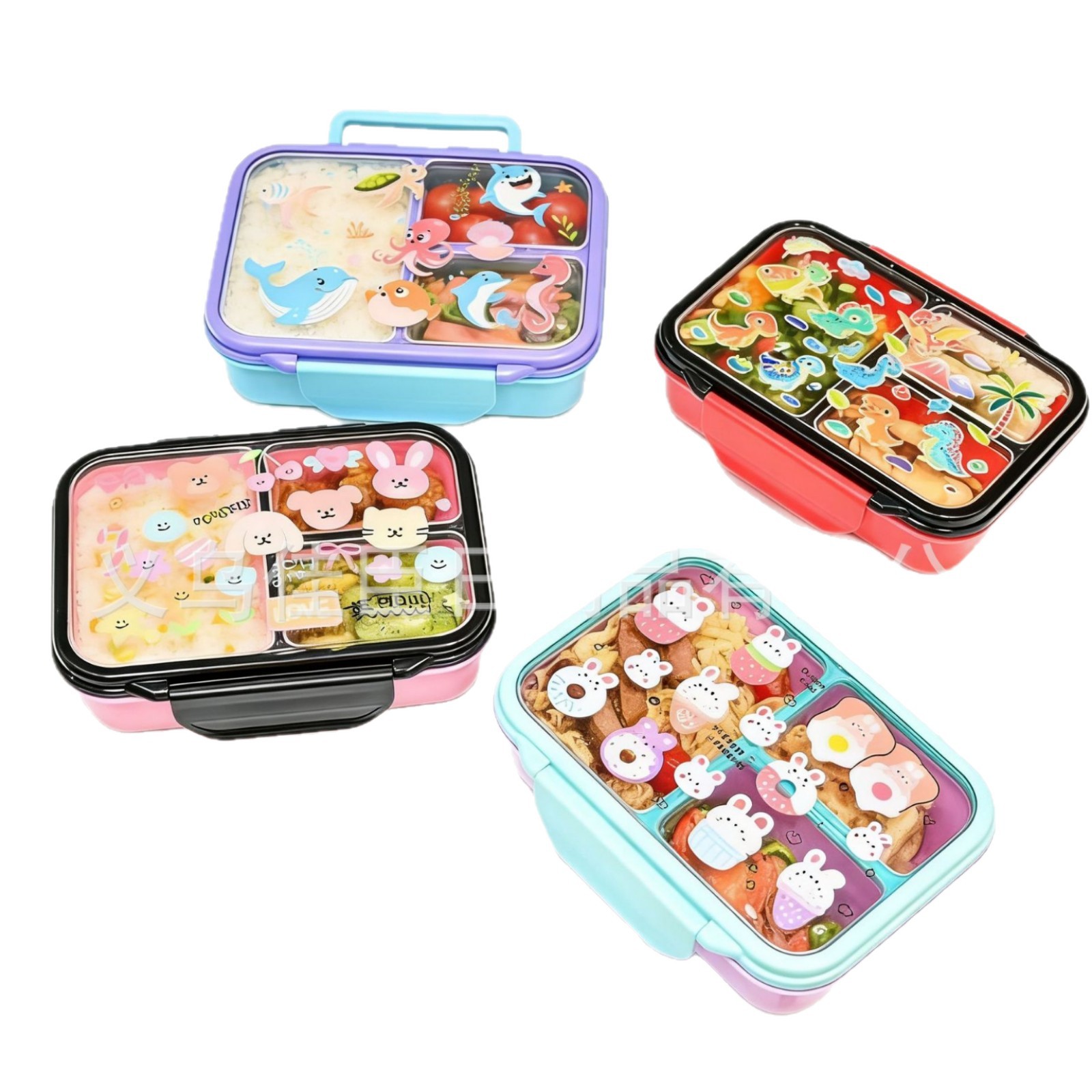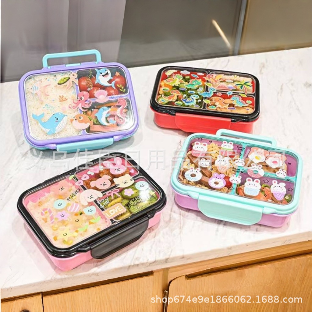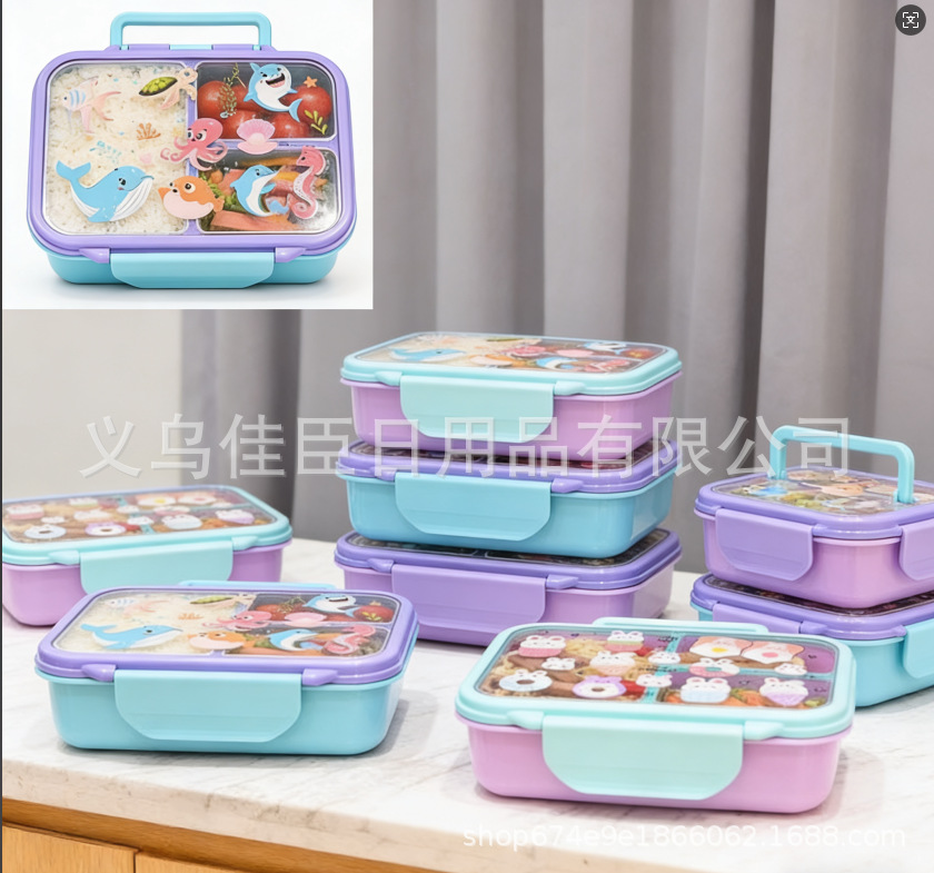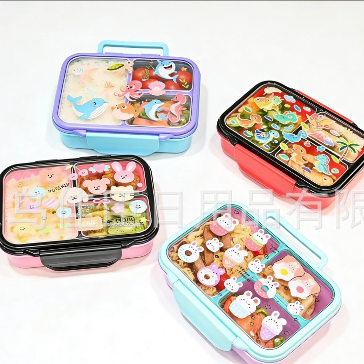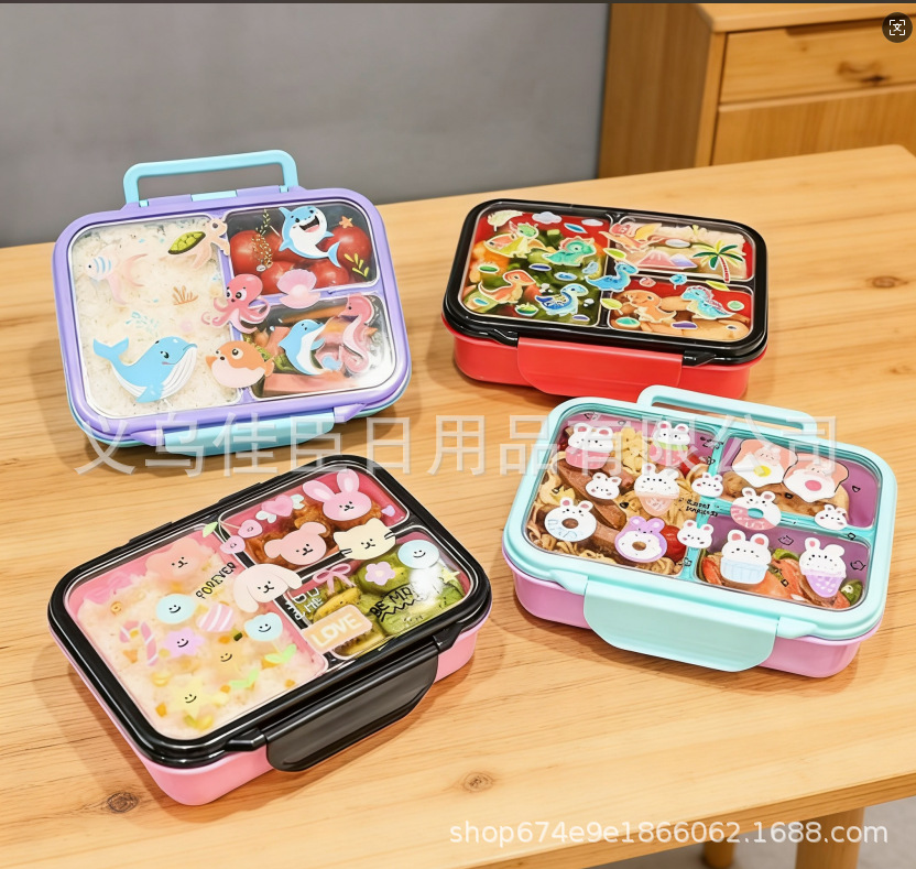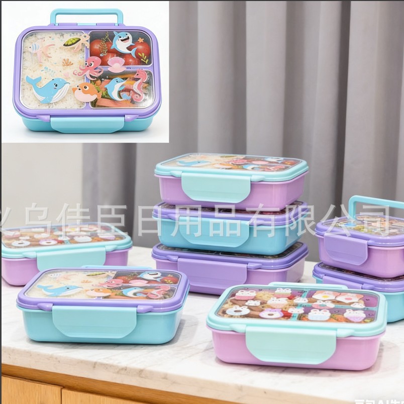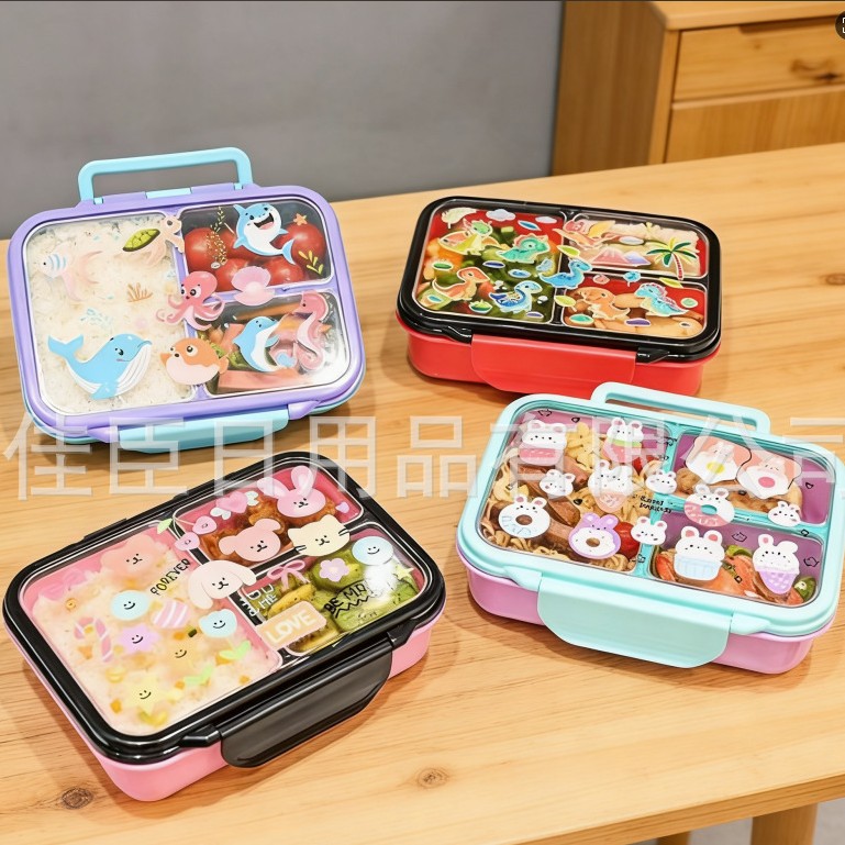 跨境便当卡通饭盒学生上班族带饭保鲜盒分格大容量食品级密封盒